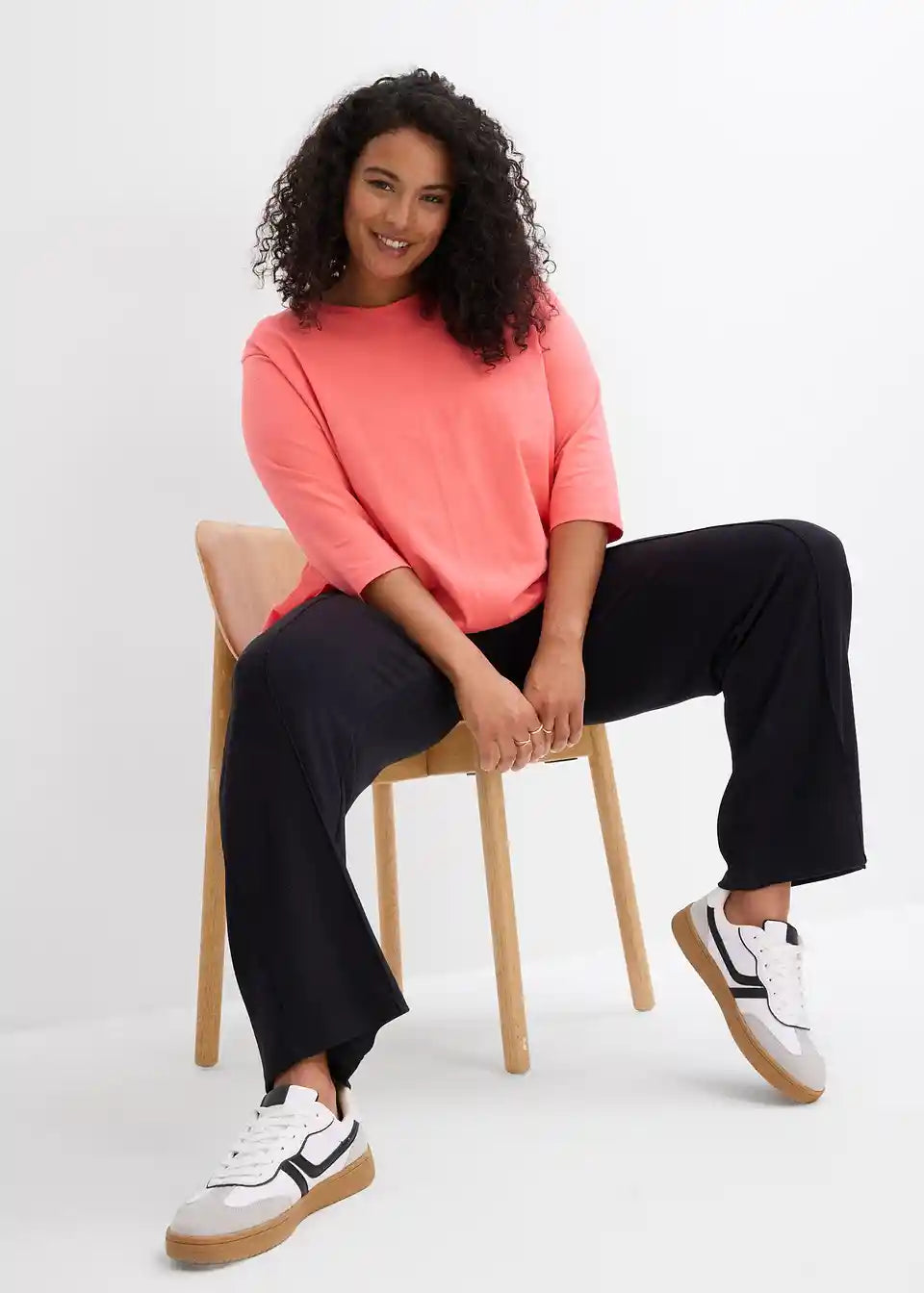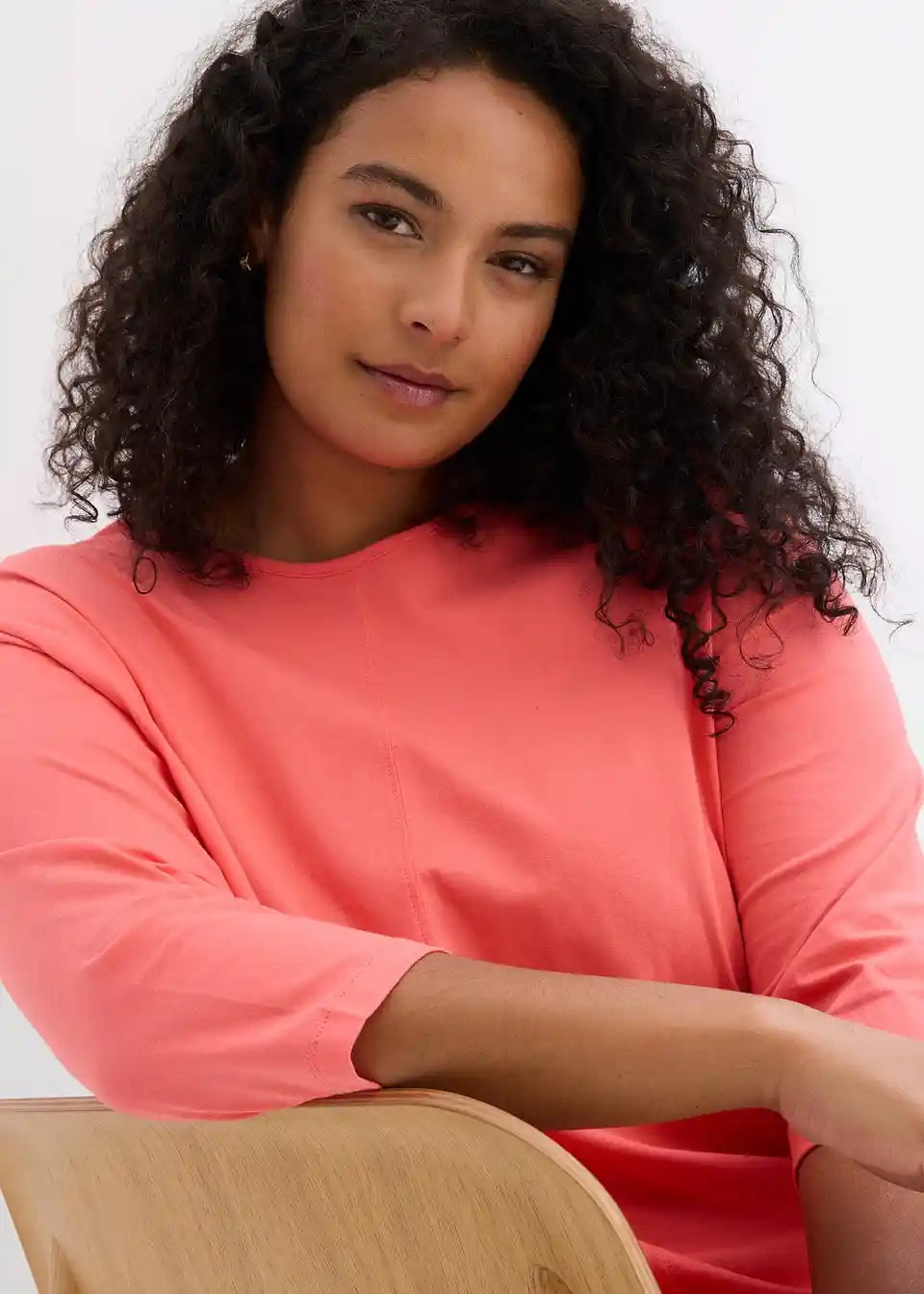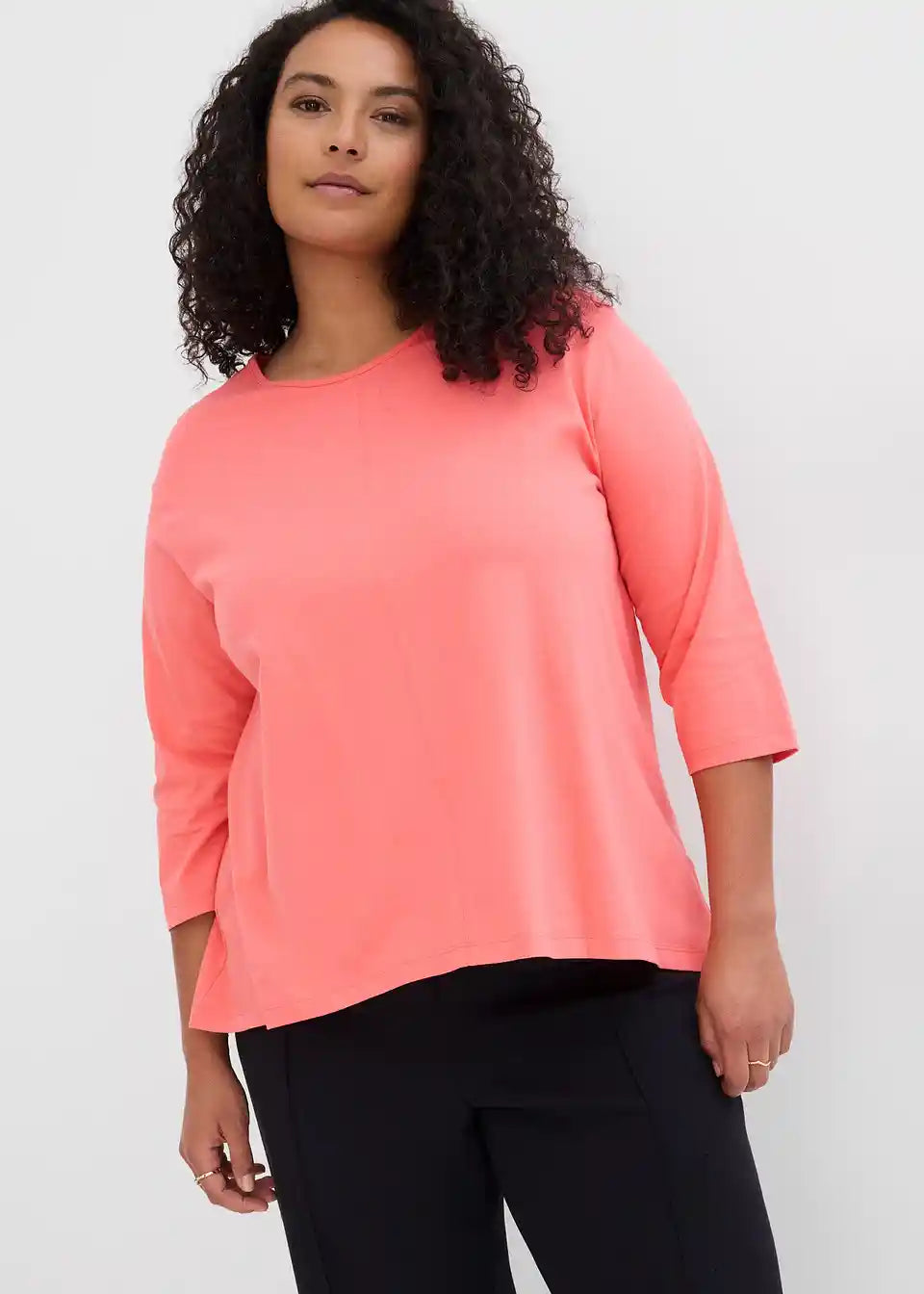 Boxy-Pamučna majica s asimetričnim porubom, ¾ rukavi