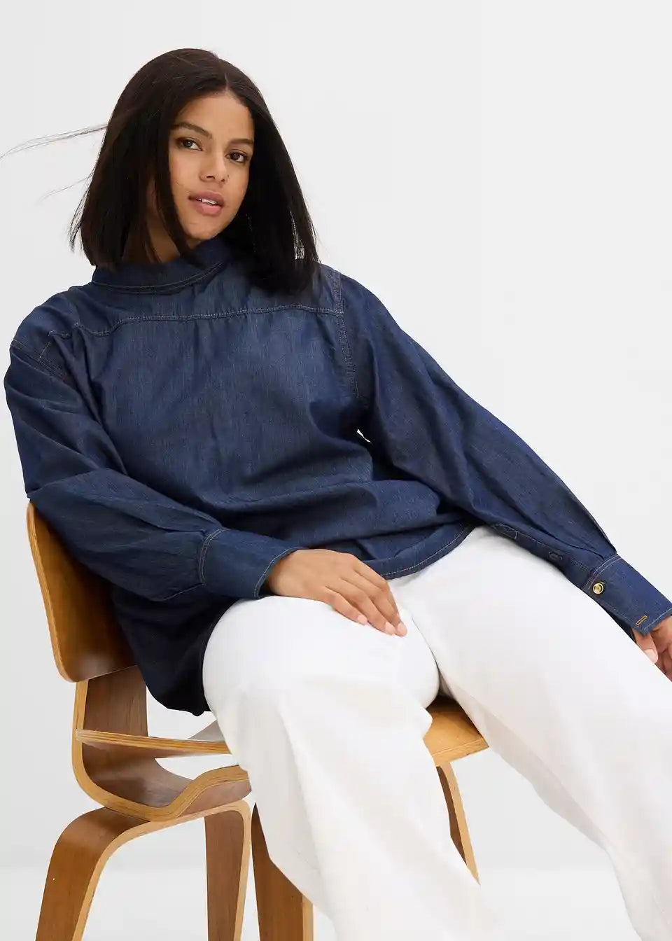 Jeans bluza s visokim manžetama