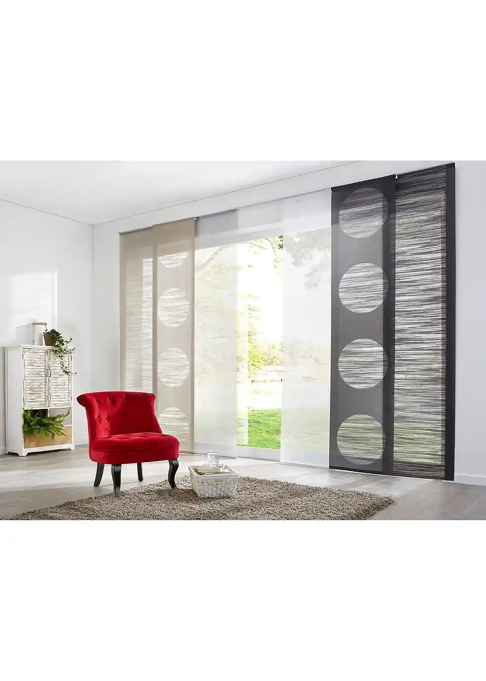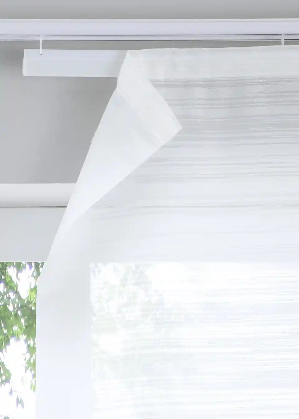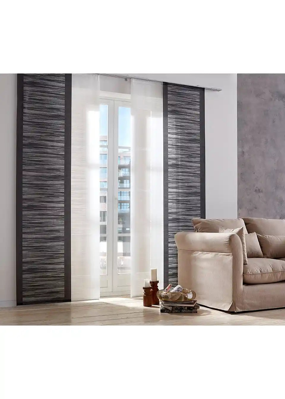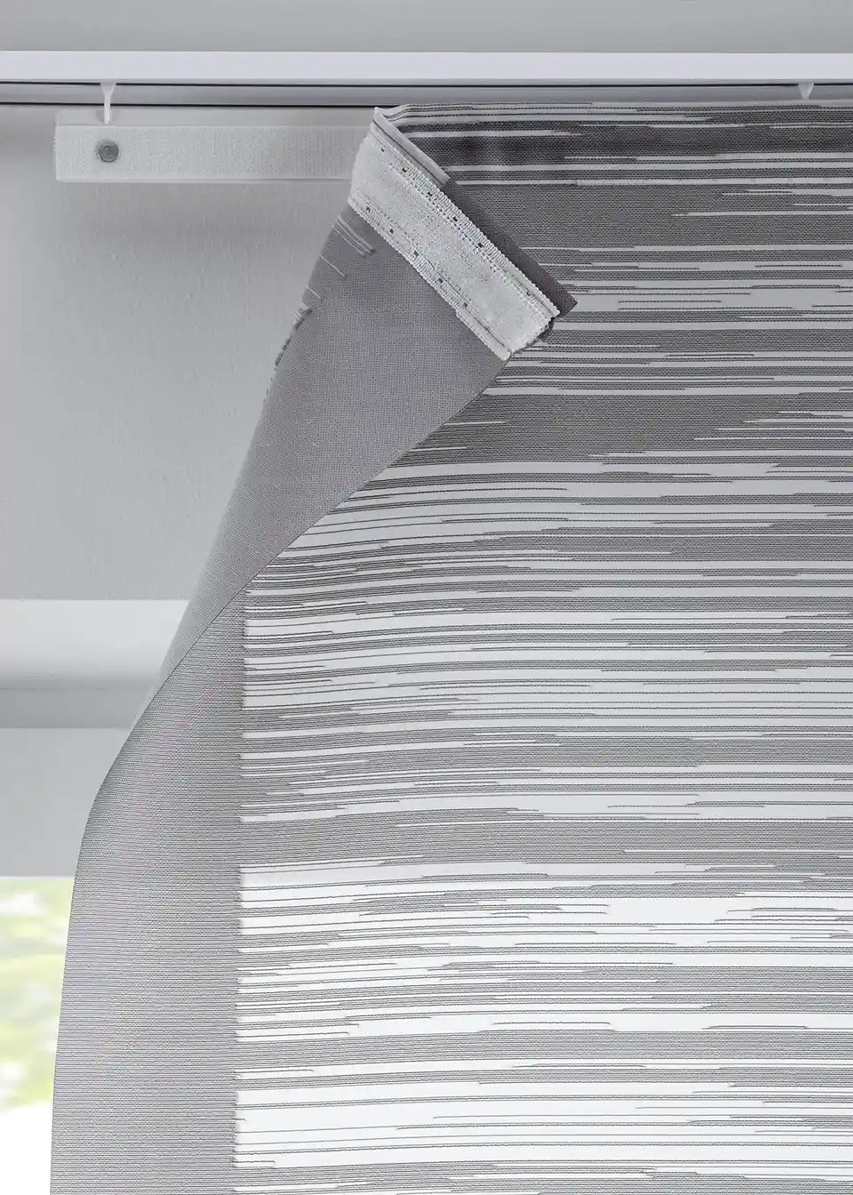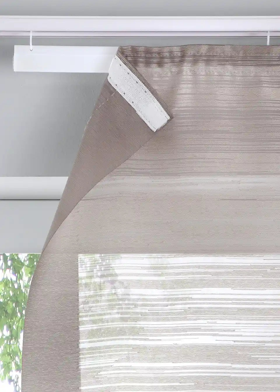 Moderna klizna zavjesa izrađena od poluprozirne tkanine. Suptilan dizajn pruga izrađen je Scherli postupkom i ima trendi resaste rubove. Dostupna u različitim atraktivnim bojama za interijer.