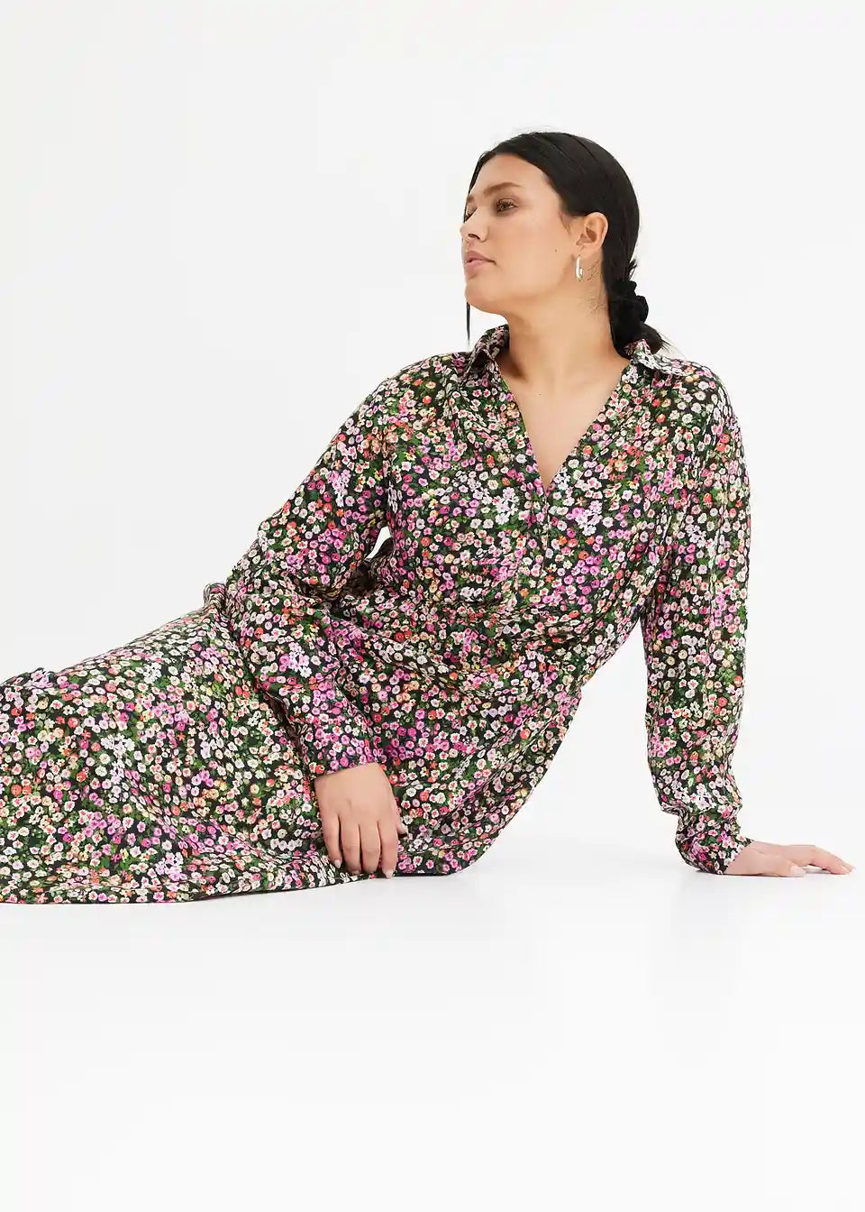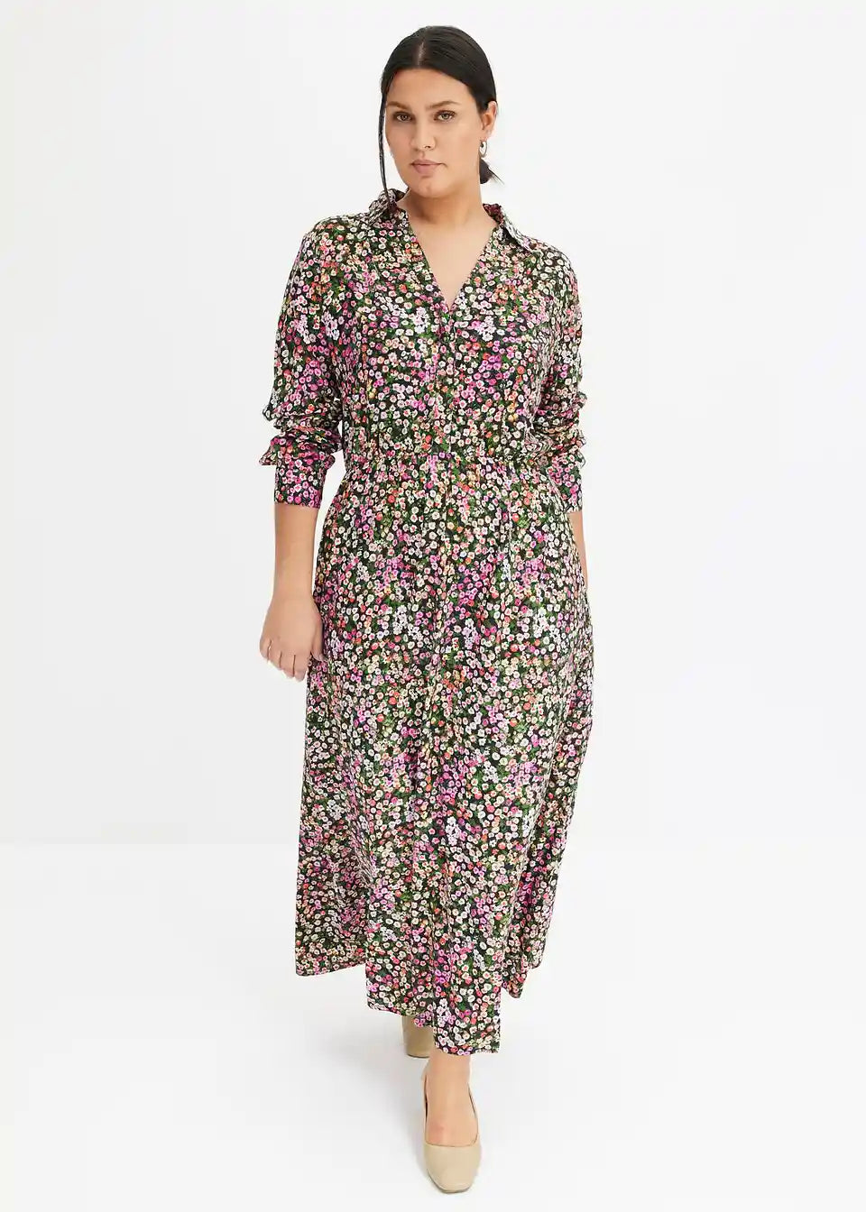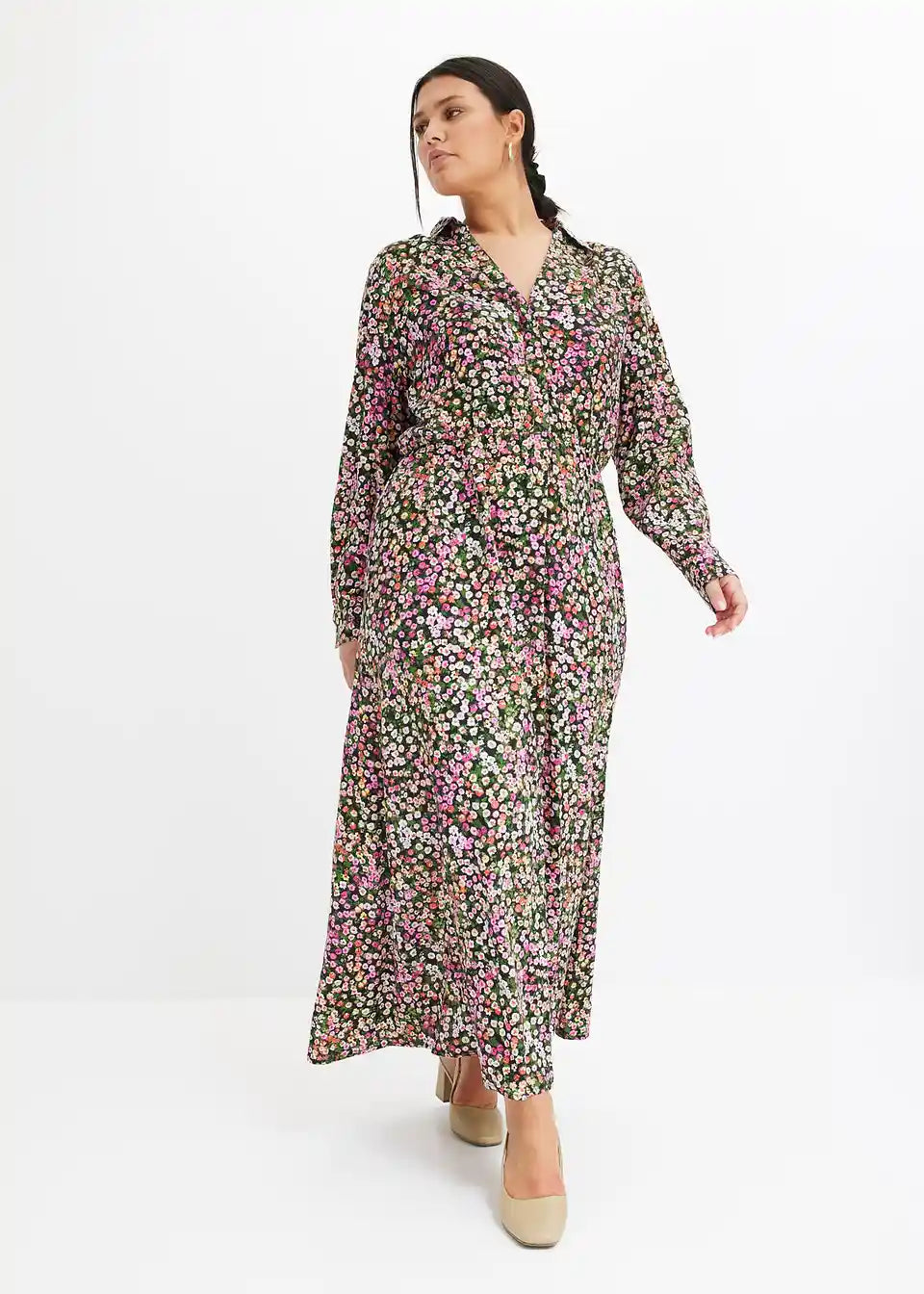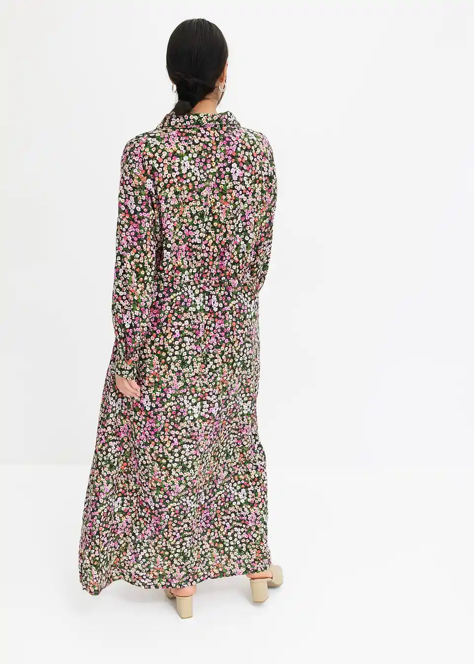 cvjetno printana maksi haljina s gumbima sprijeda.