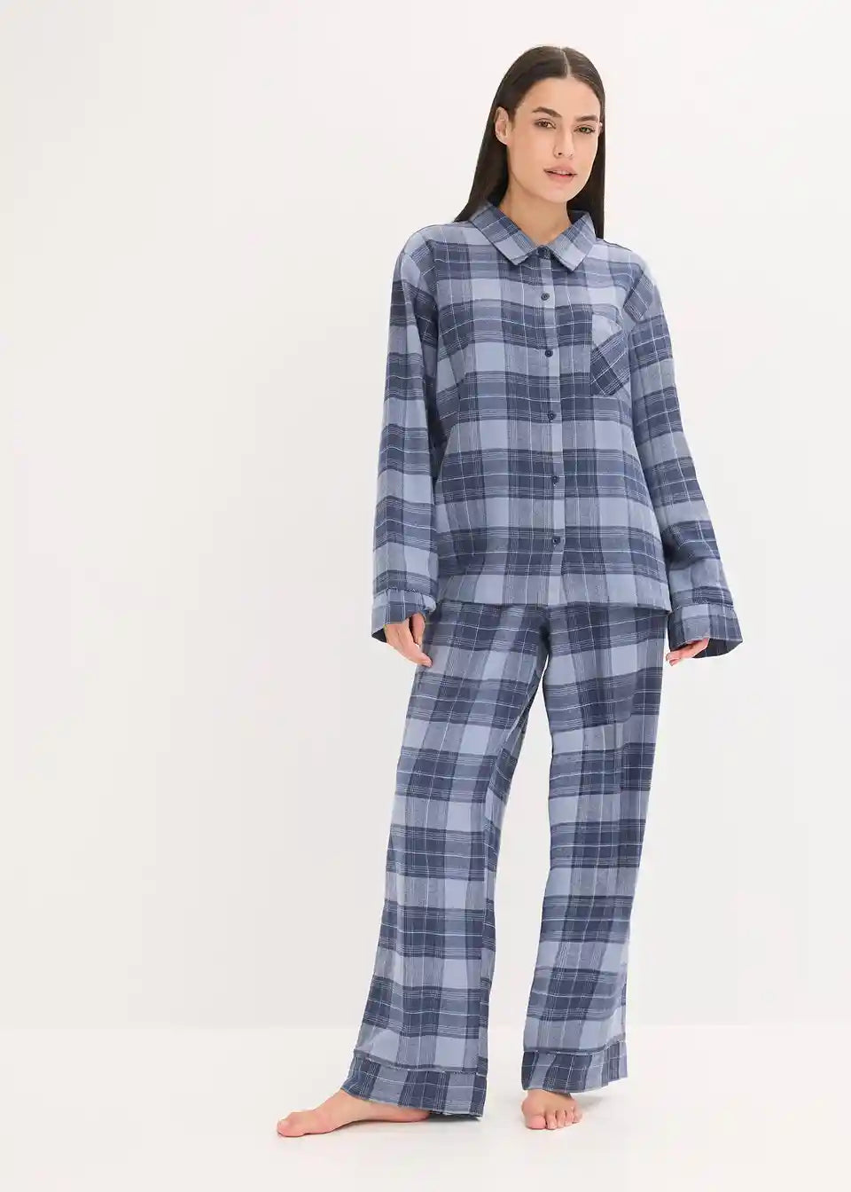 Udobna flanelska pidžama s džepom na prsima