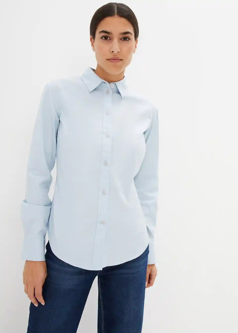 Klasična bluza od organski uzgojenog pamuka s zaobljenim rubom i kopčanjem na gumbe