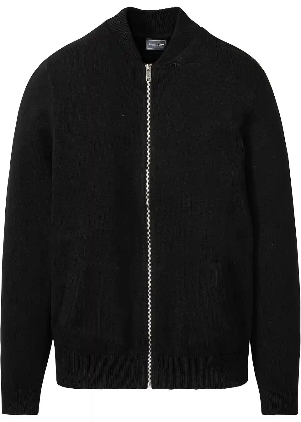 Trendovski usko krojena pletena jakna s baseball ovratnikom i dva bočna džepa