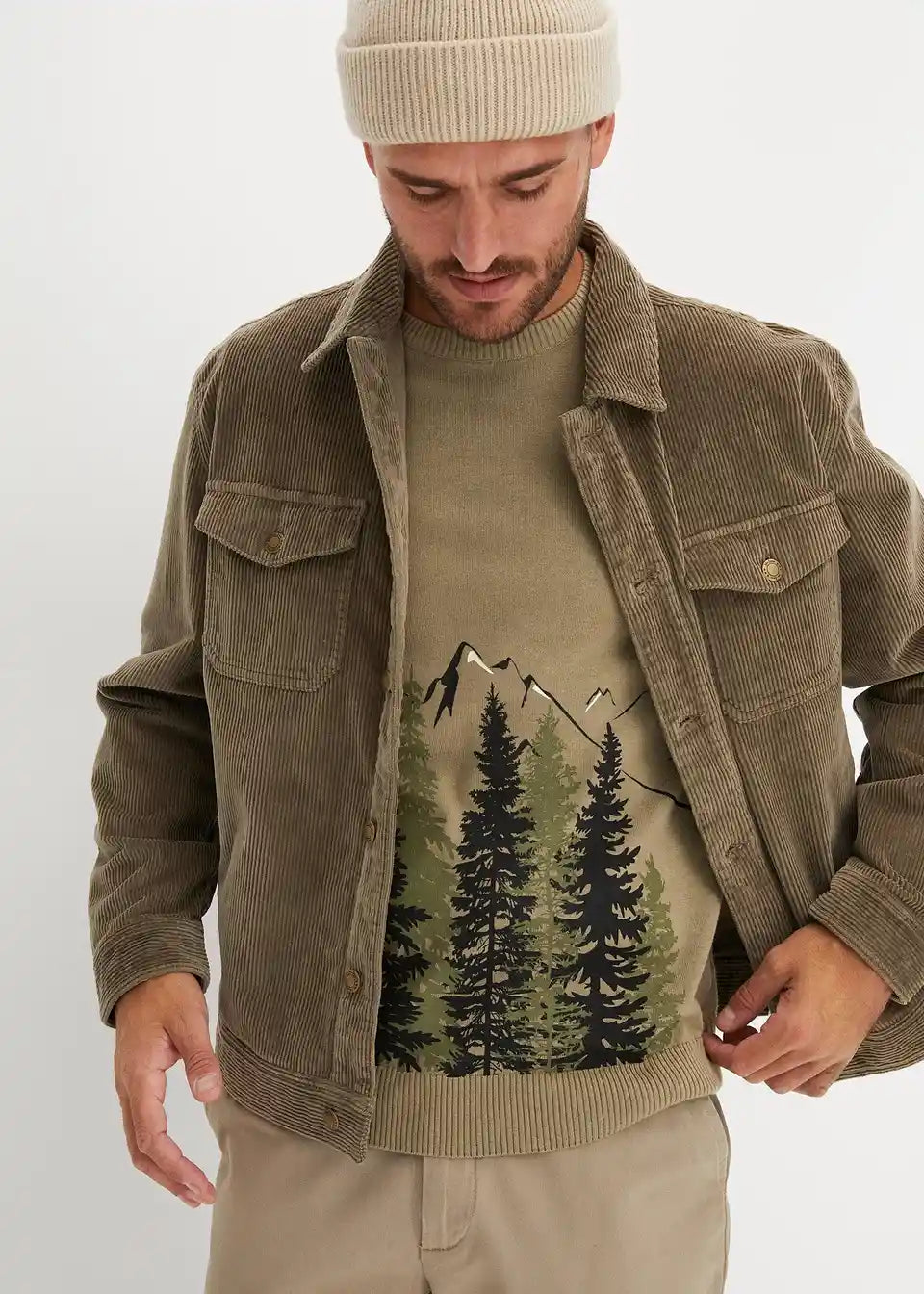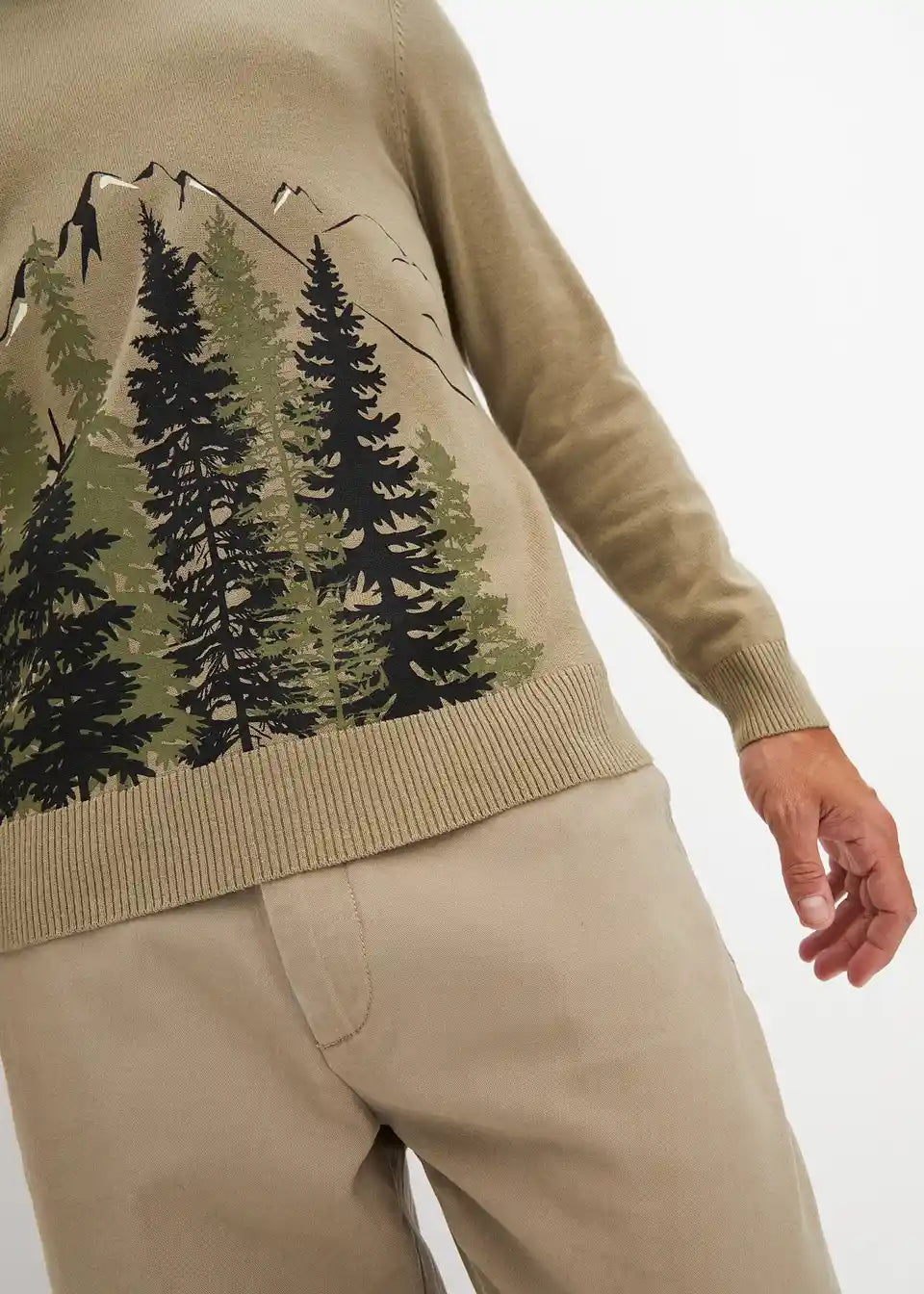 Pulover s printom i rubovima od rebrastog pletiva na porubu i rukavima