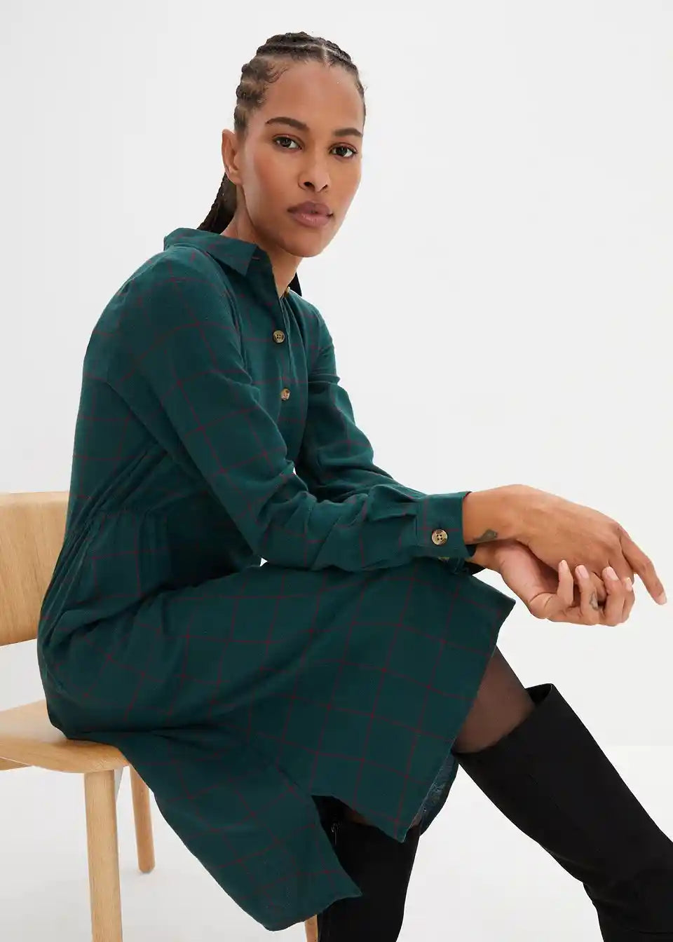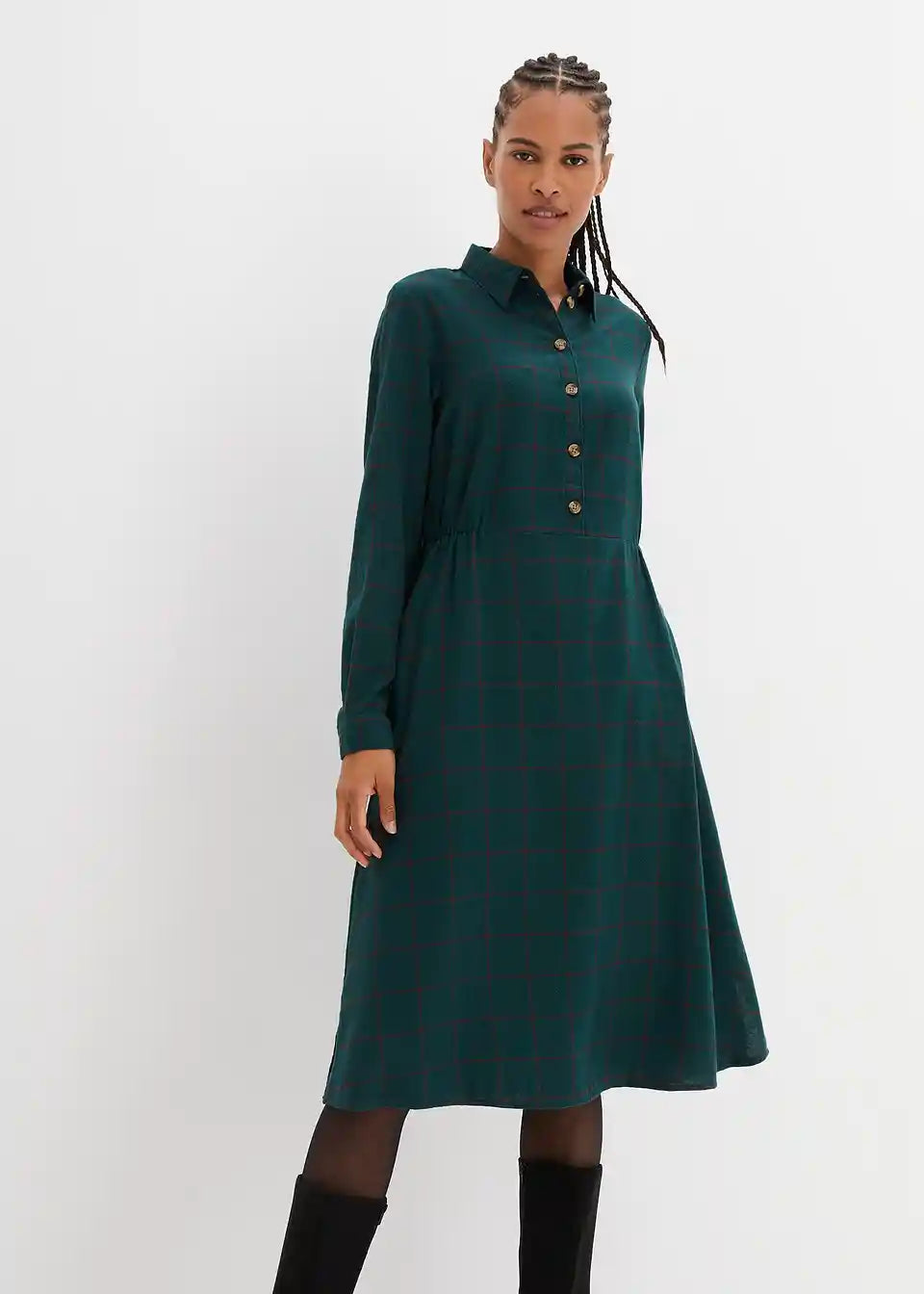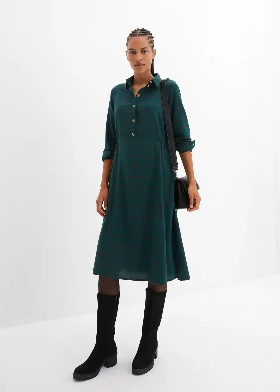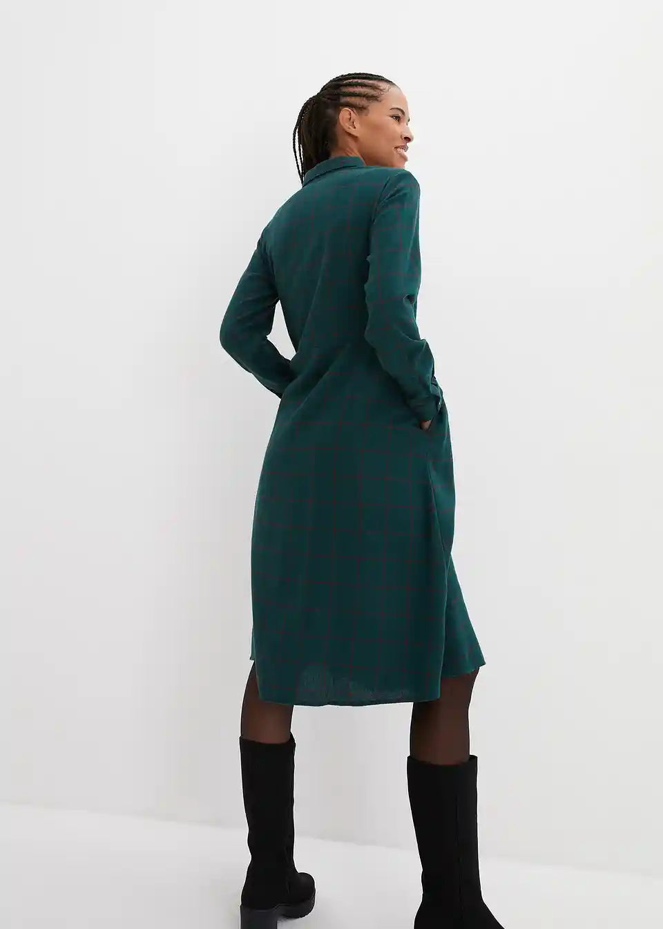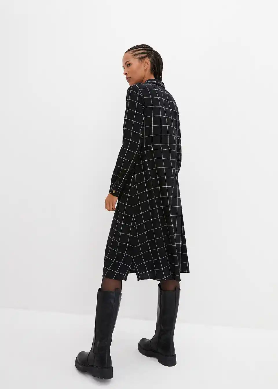 Flanelska košulja-haljina do koljena s kariranim uzorkom