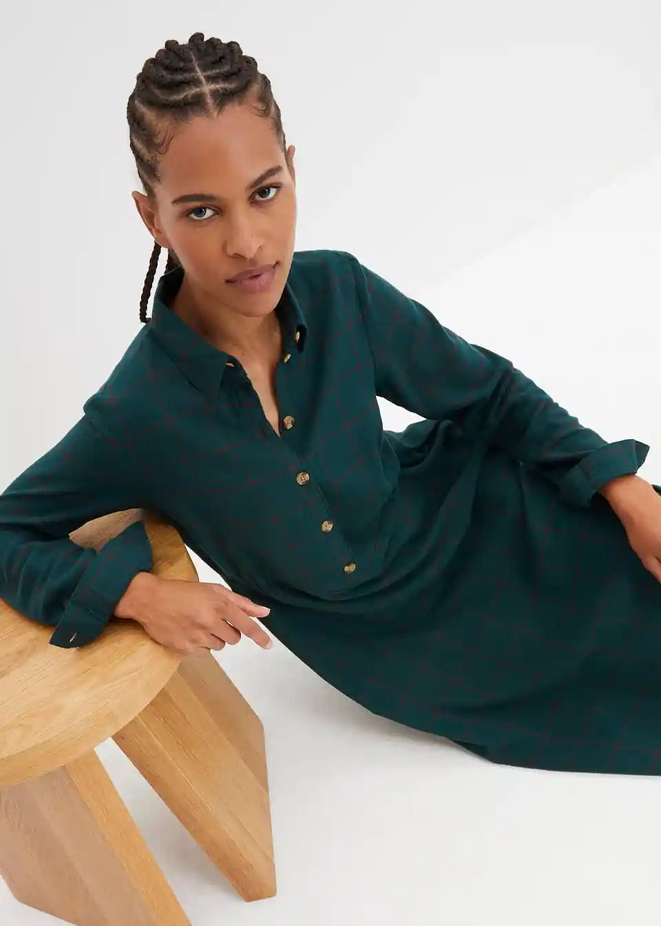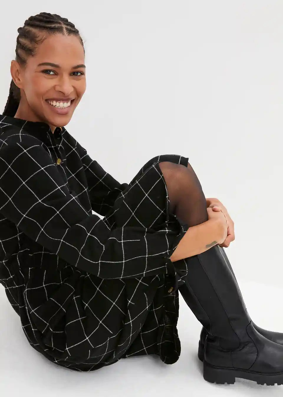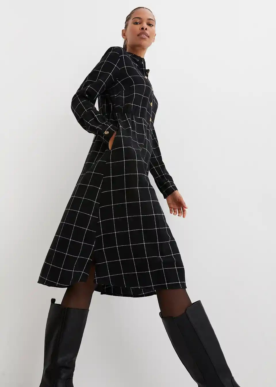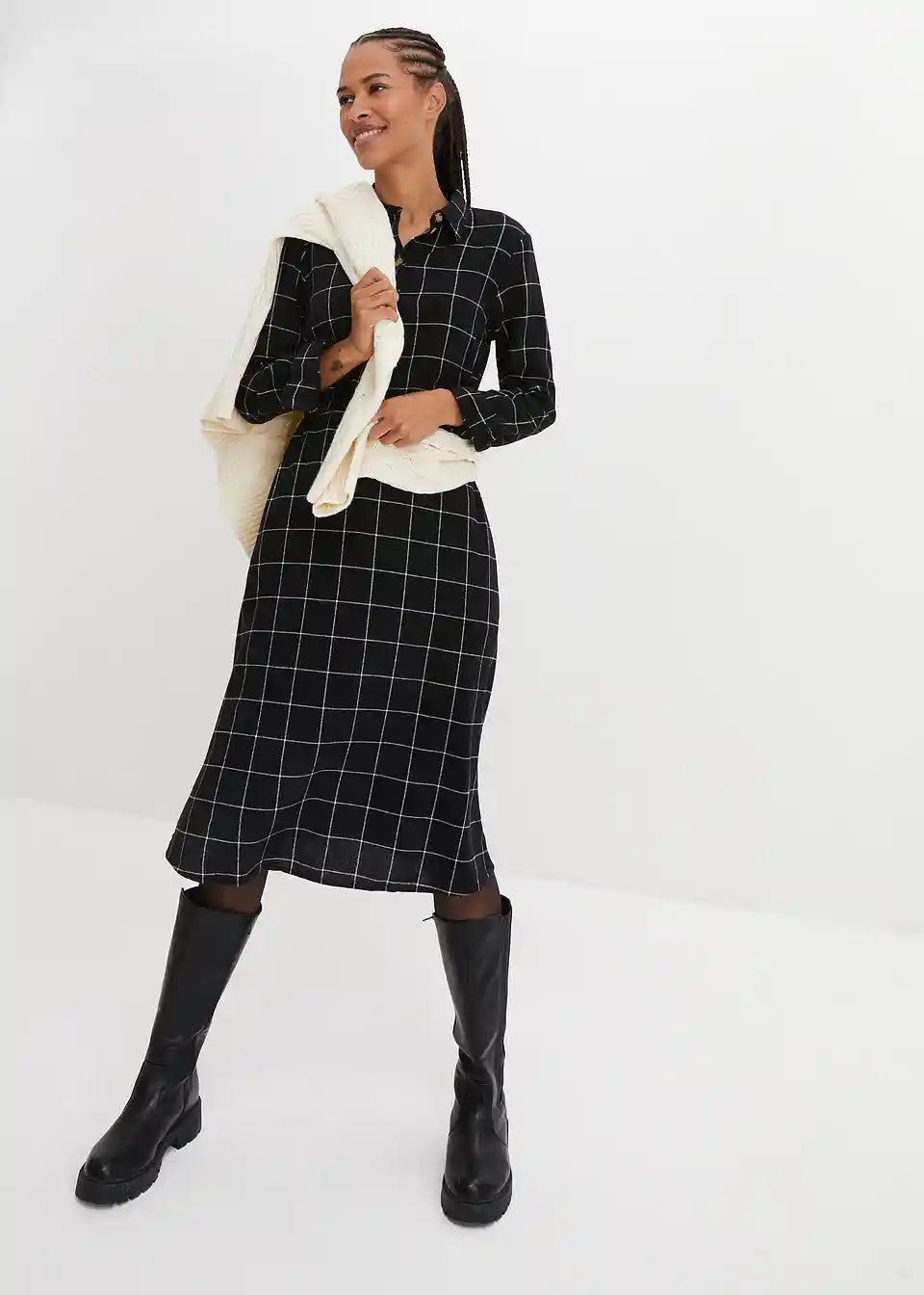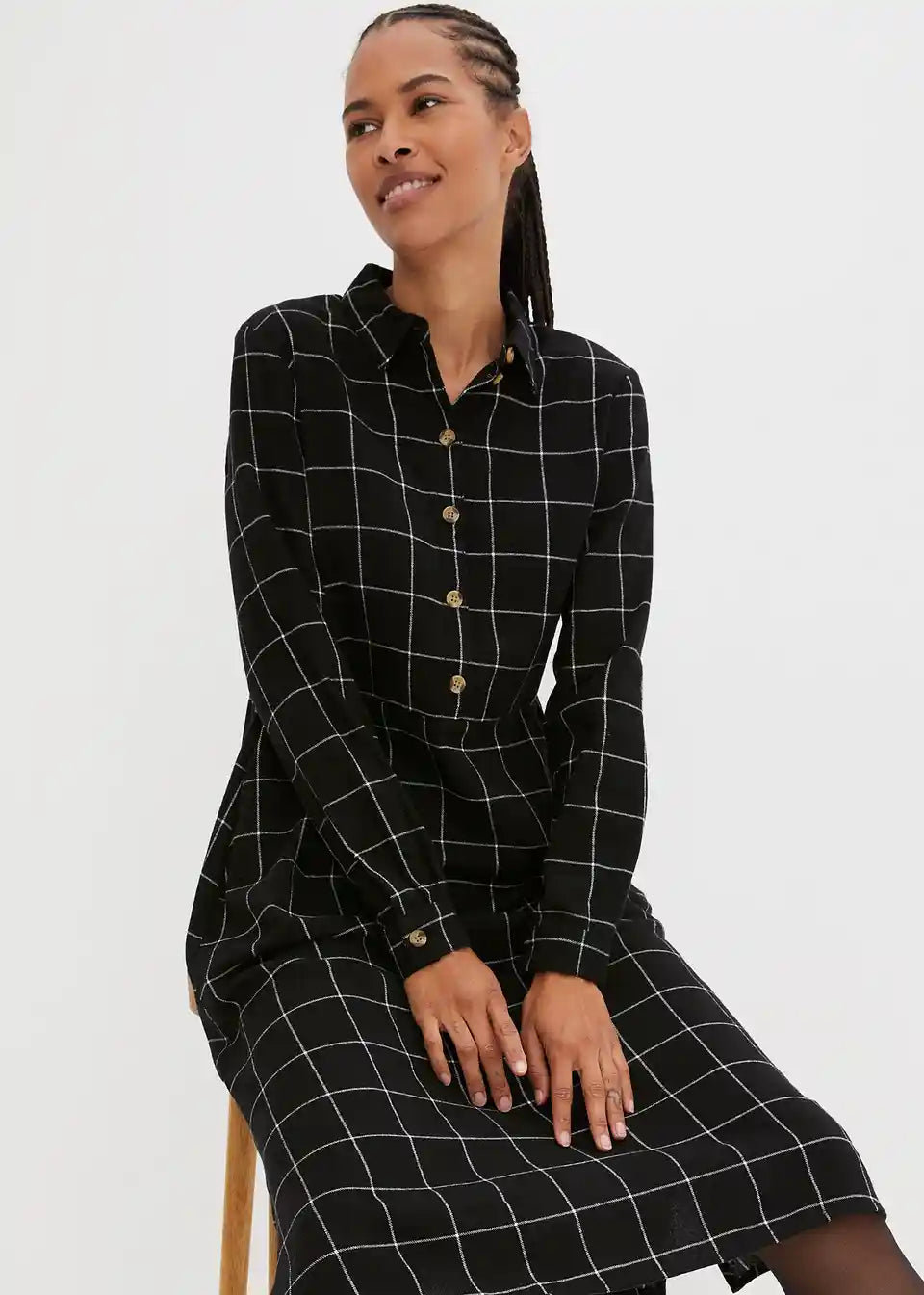 Flanelska košulja-haljina do koljena s kariranim uzorkom