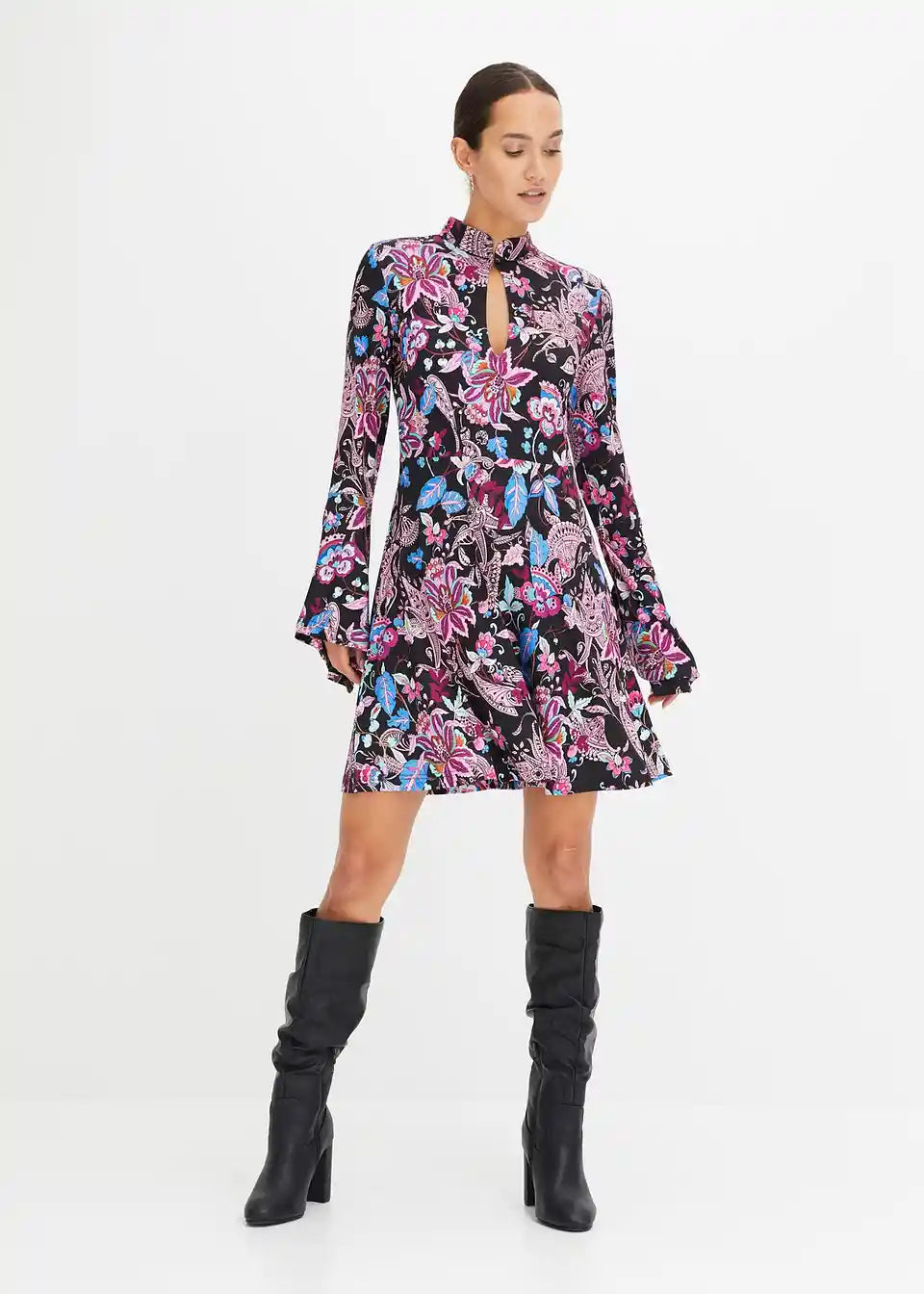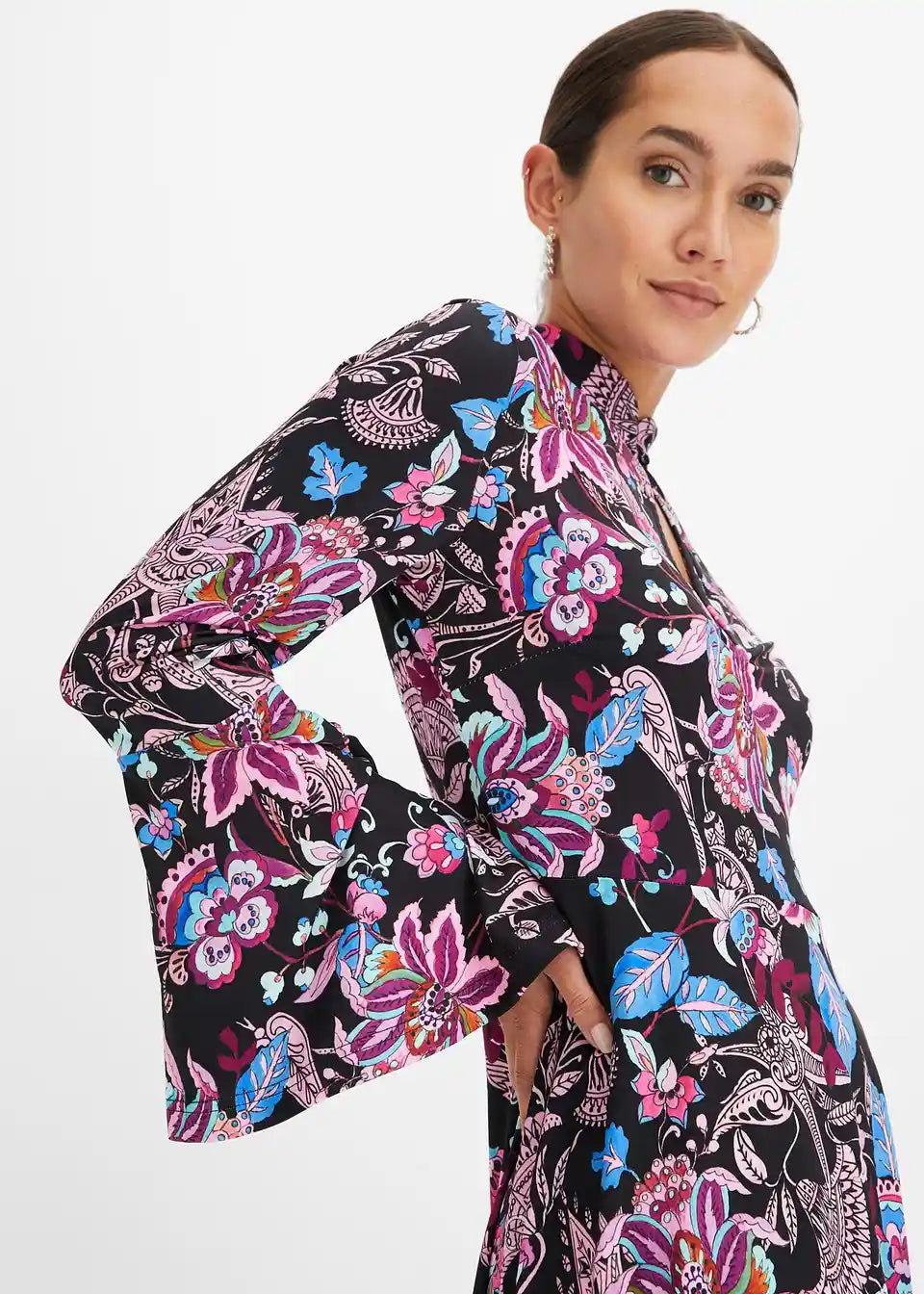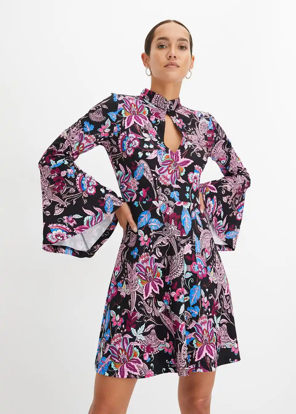 Stilska haljina s izrezom na dekolteu i zvonolikim rukavima