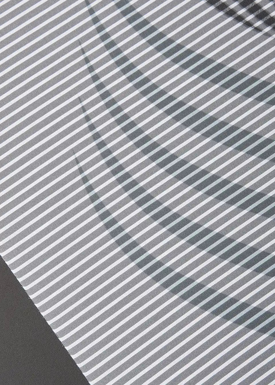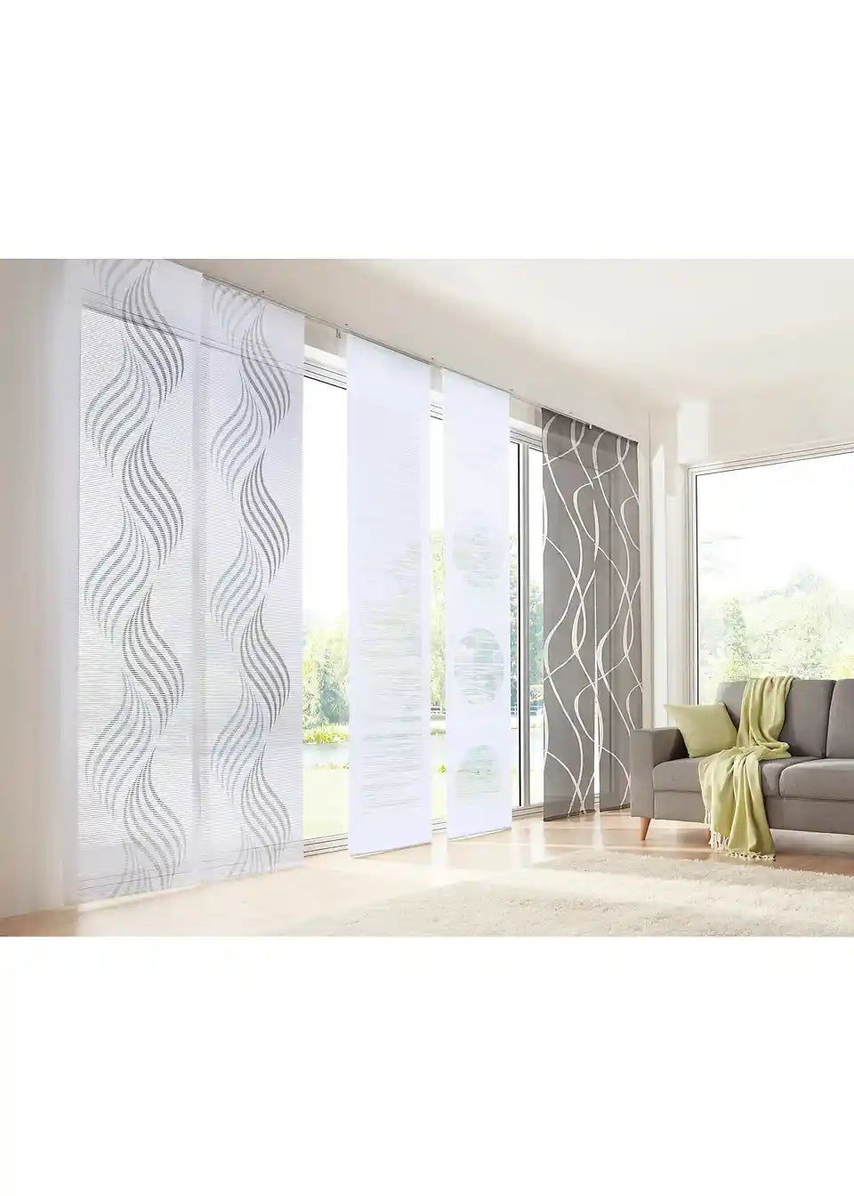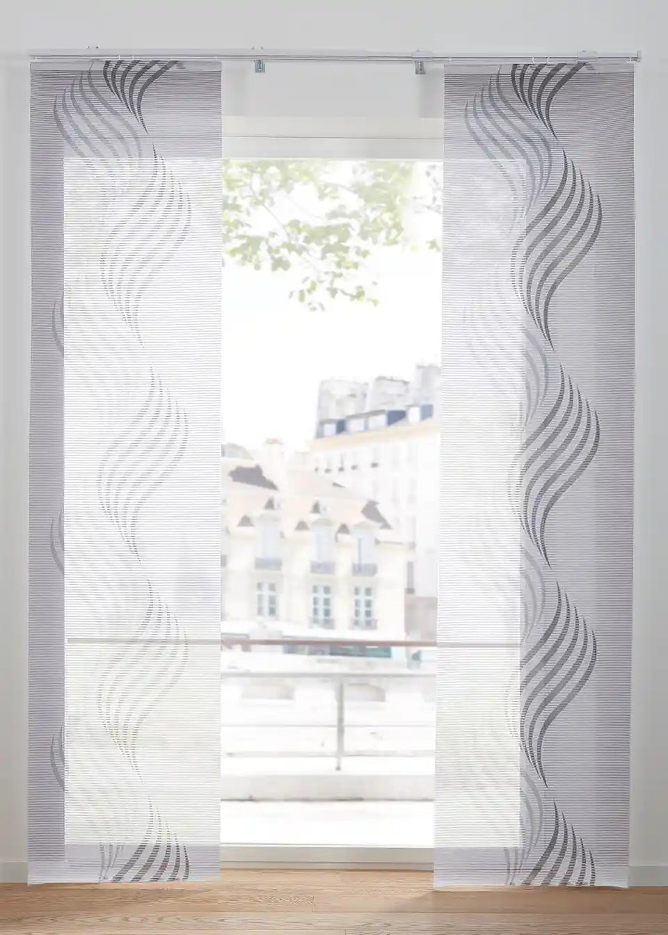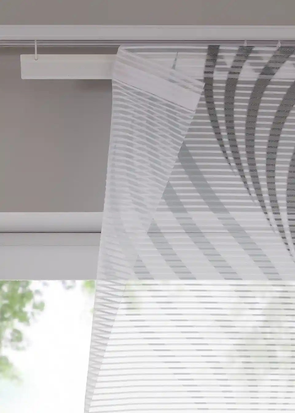 Prekrasna klizna zavjesa s vodoravnim prugama u rotacijskom dizajnu. Isporuka uključuje čičak tračnicu i šipku za otežanje.