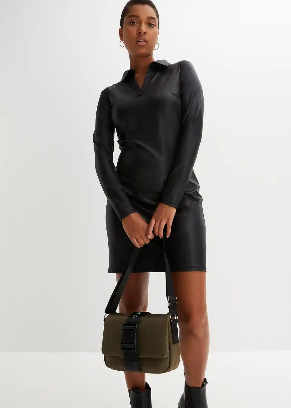 Stilna mini haljina s V-izrezom i polo ovratnikom