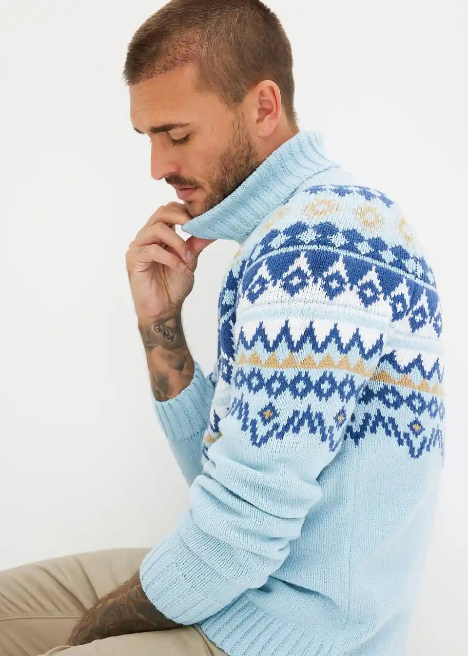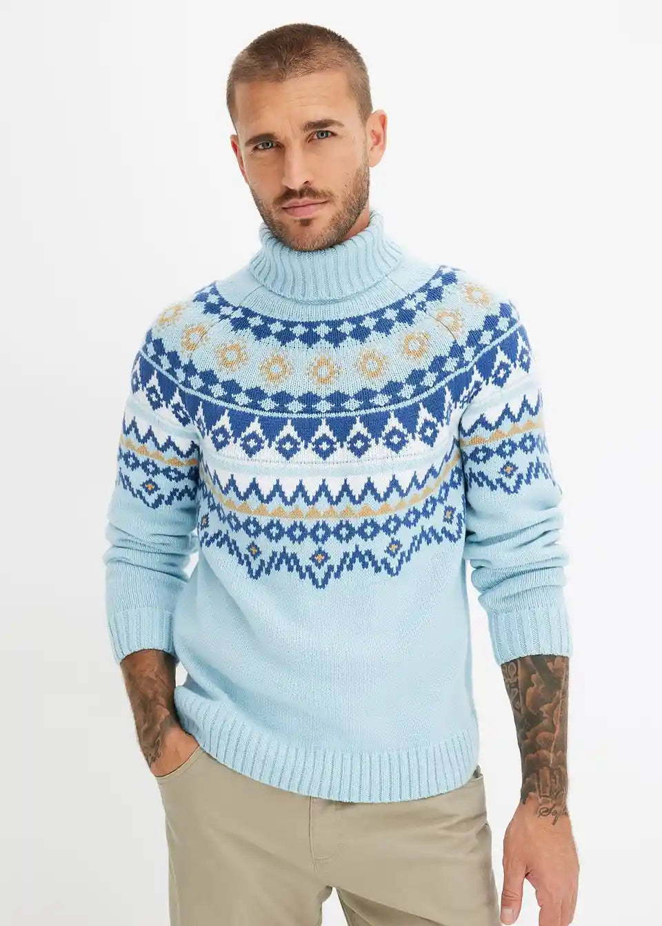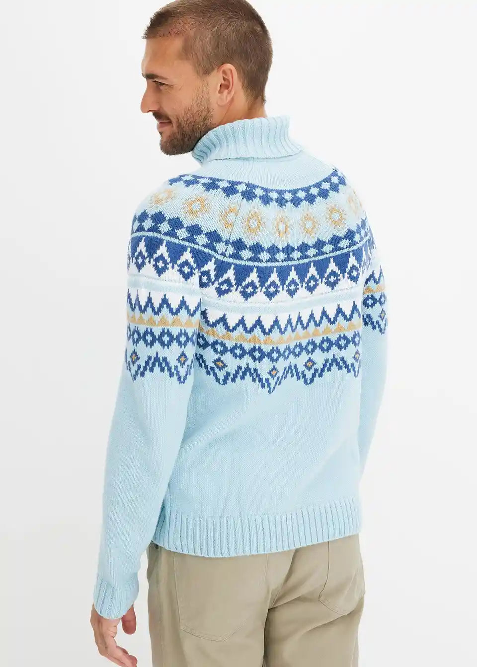 lijepi pulover s dolčevitom s norveškim motivom i rebrastim rubovima na rubu i rukavima