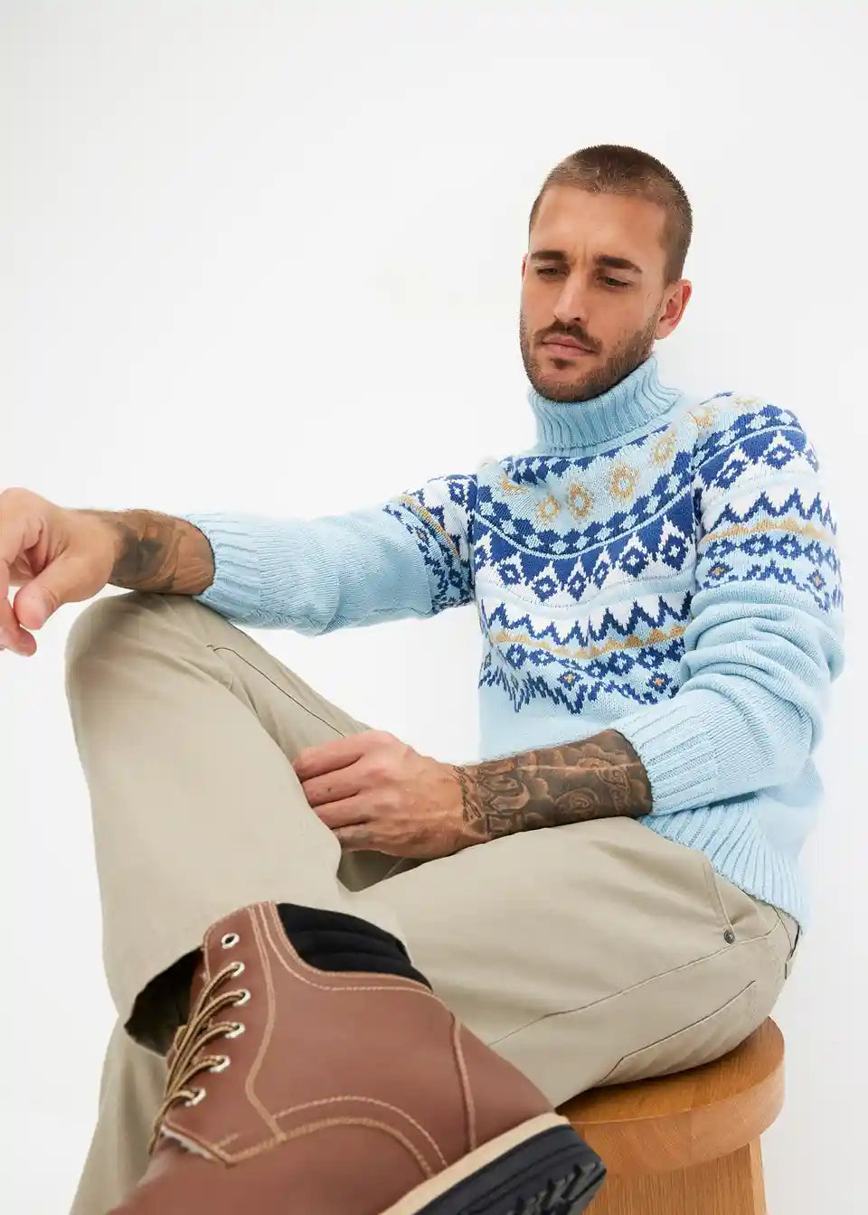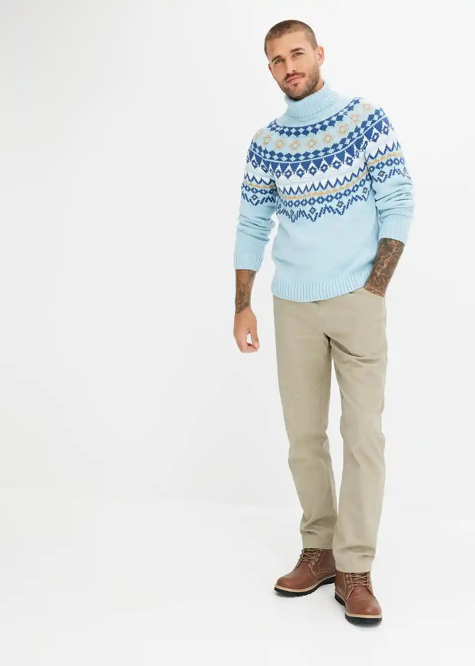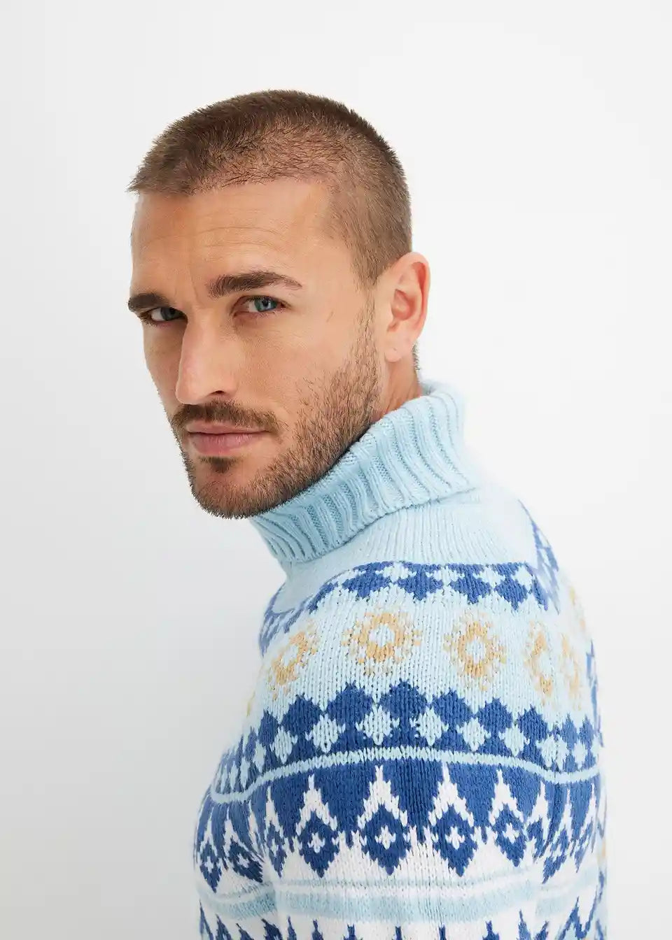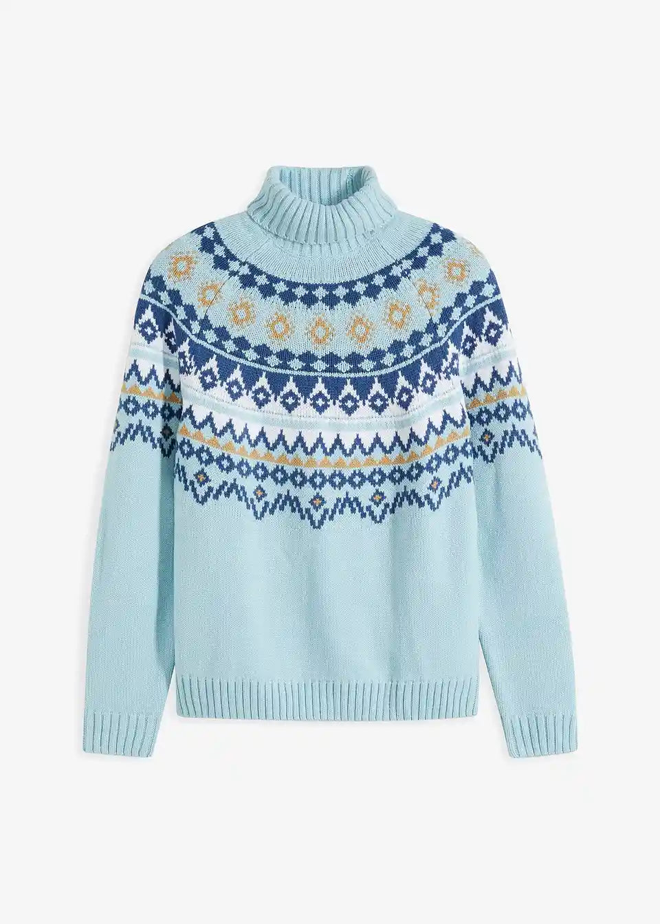 lijepi pulover s dolčevitom s norveškim motivom i rebrastim rubovima na rubu i rukavima