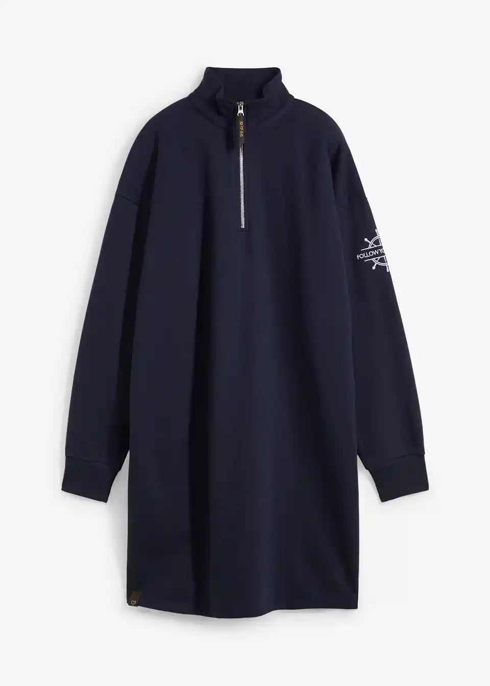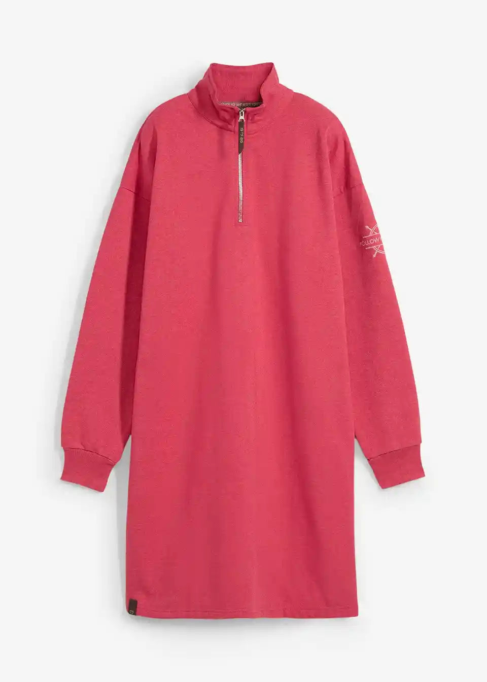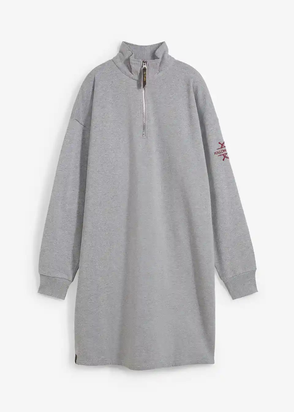 Udobna sweat haljina s Troyer ovratnikom i vez-detaljem na rukavu