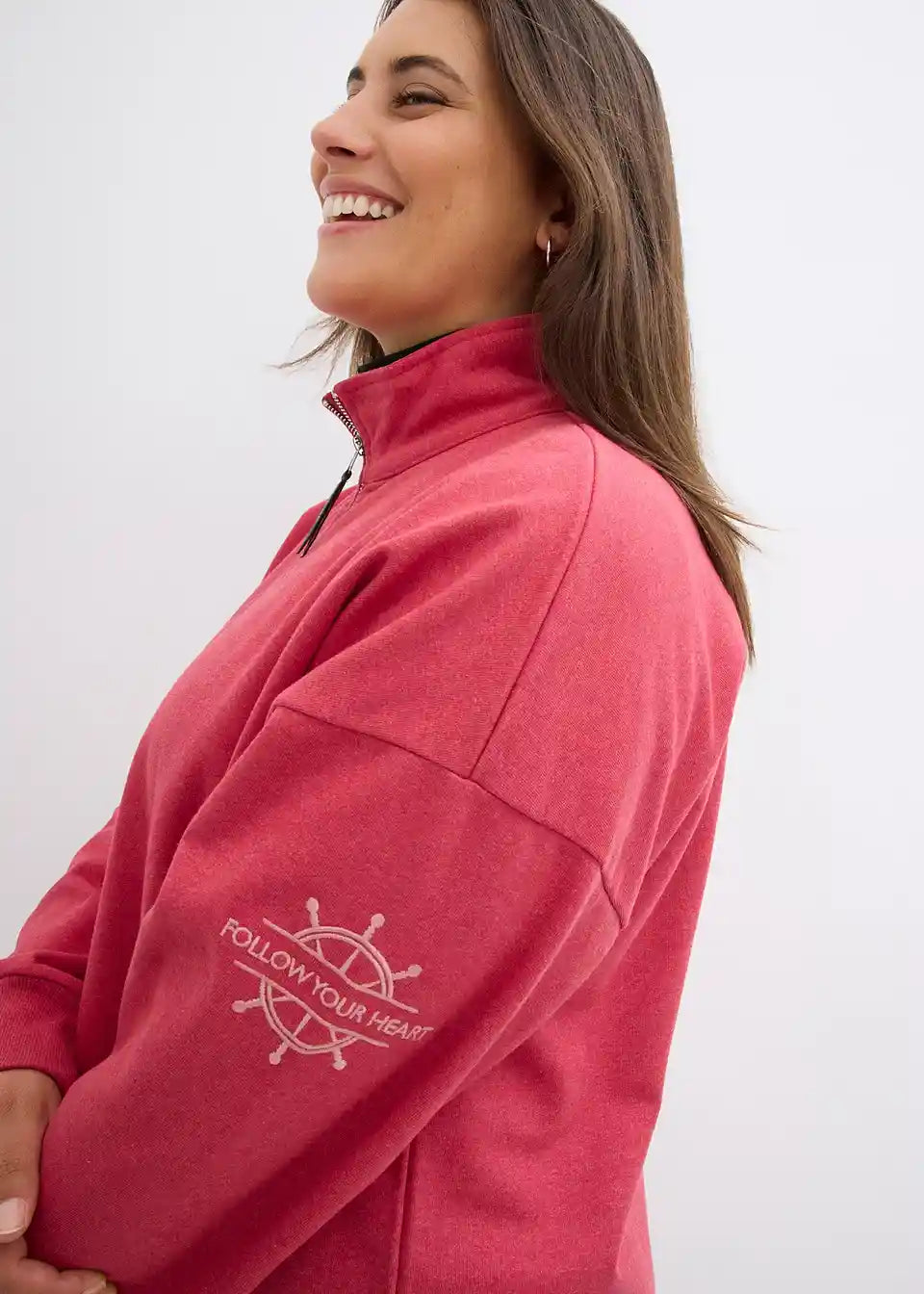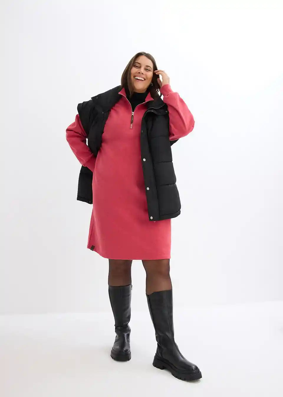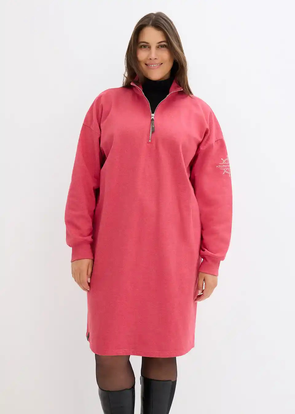 Udobna sweat haljina s Troyer ovratnikom i vez-detaljem na rukavu
