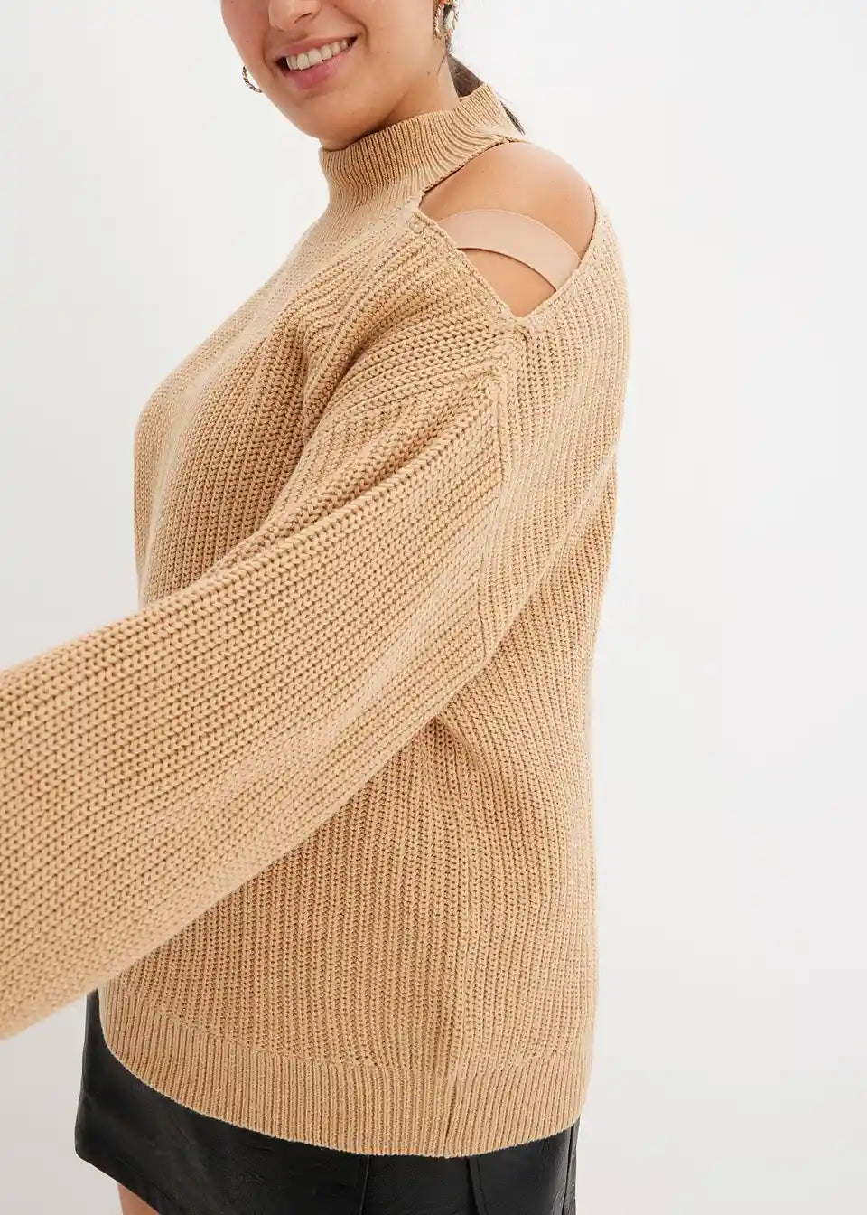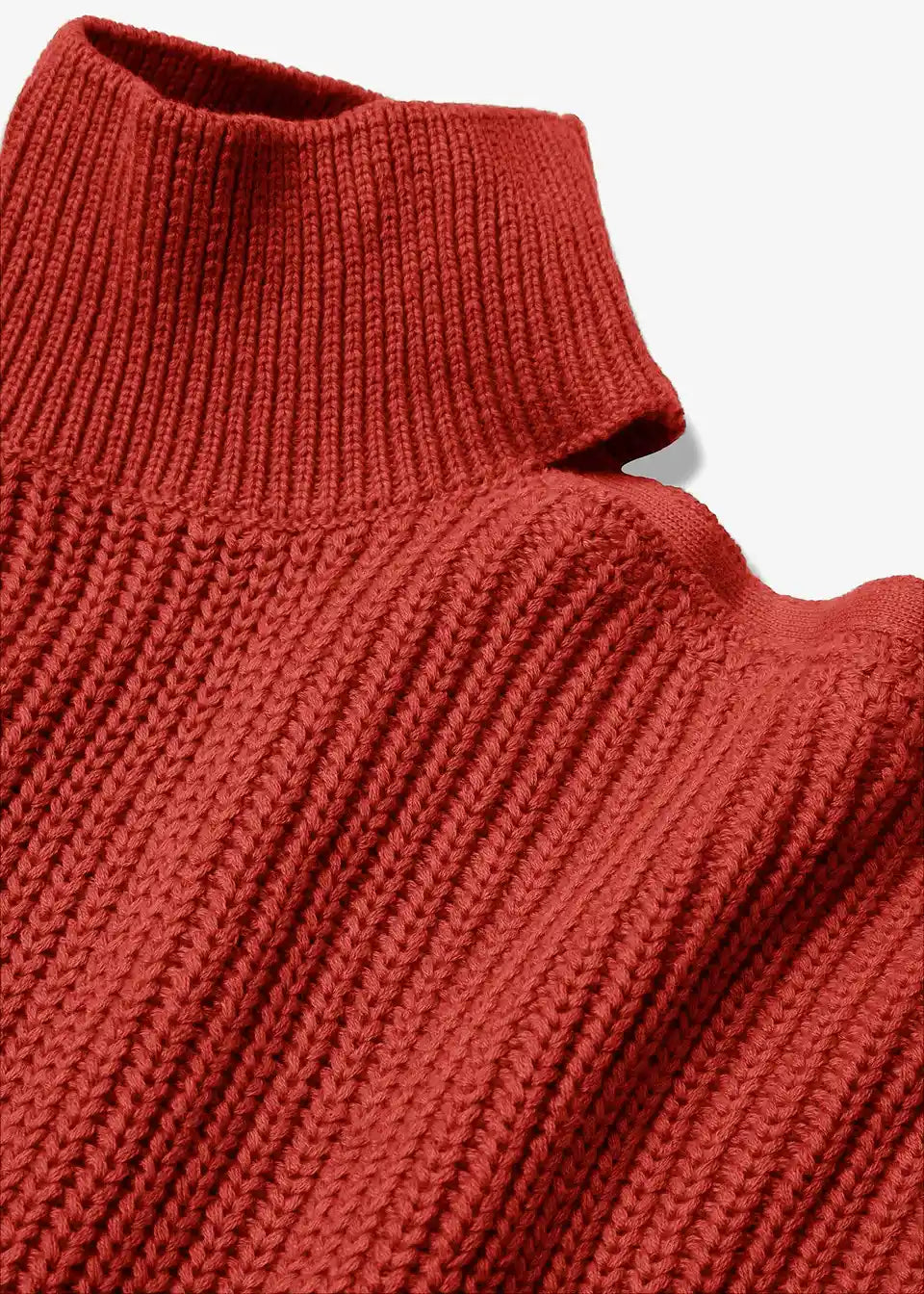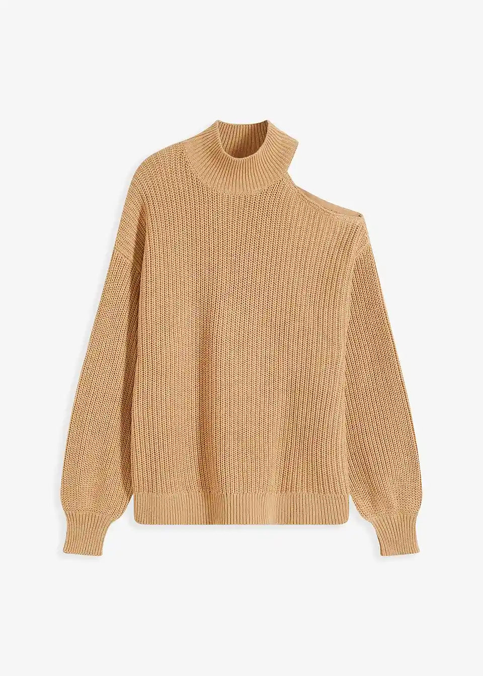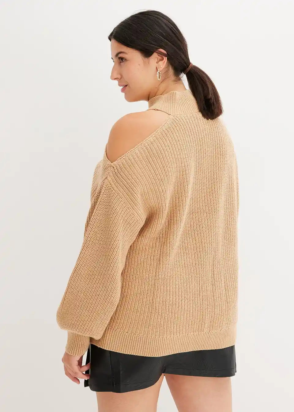 Moderan pulover s izrezom i visokim ovratnikom od pamuka