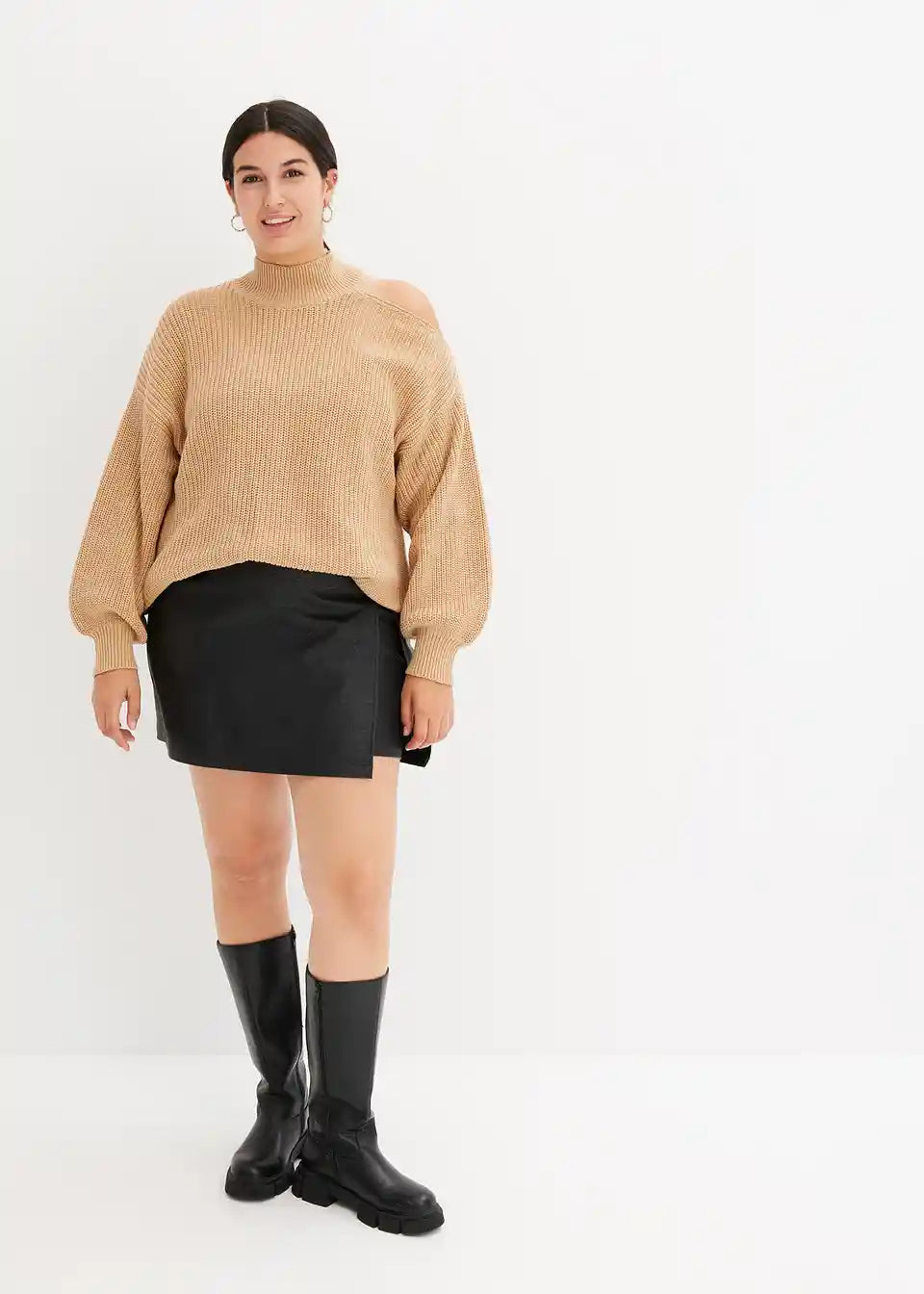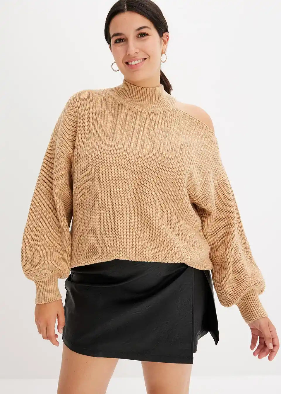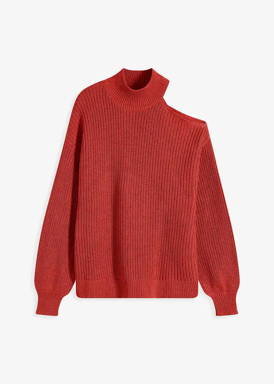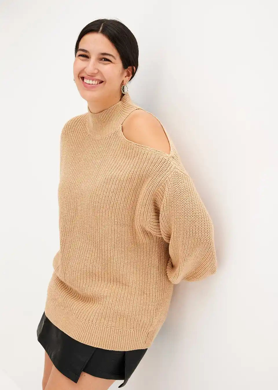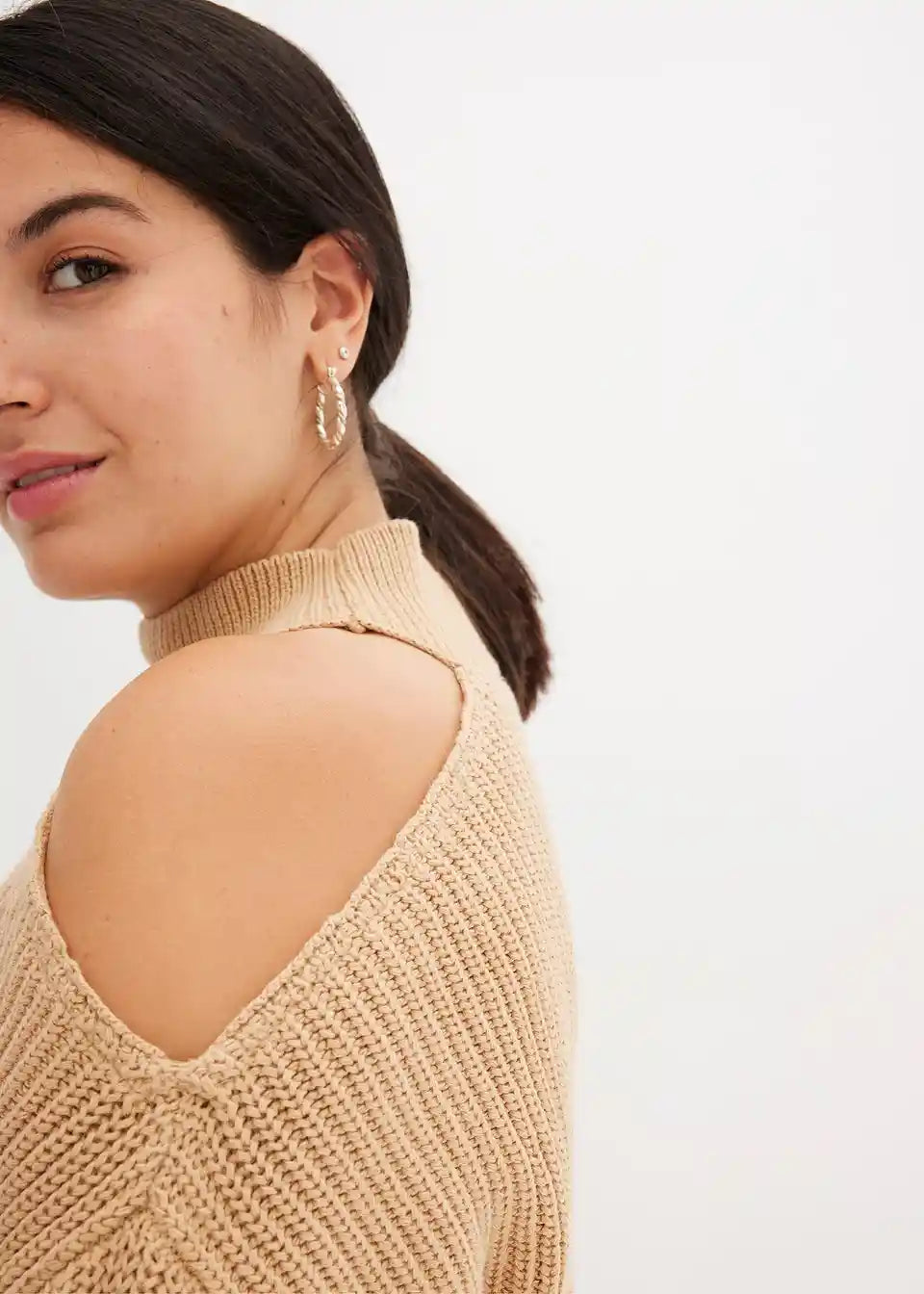 Moderan pulover s izrezom i visokim ovratnikom od pamuka