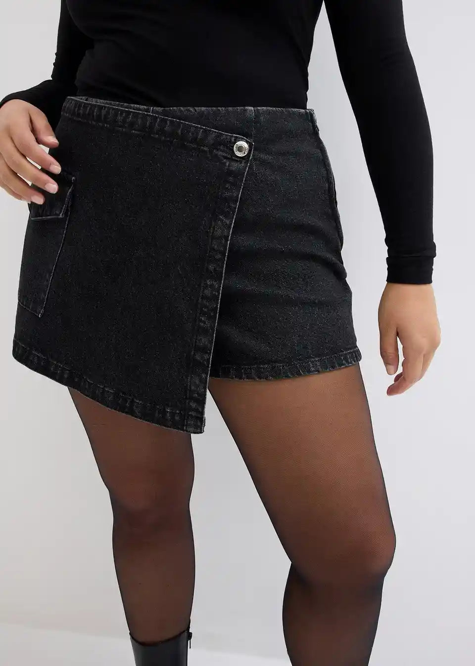 Kratka traper hlače-suknja s džepom