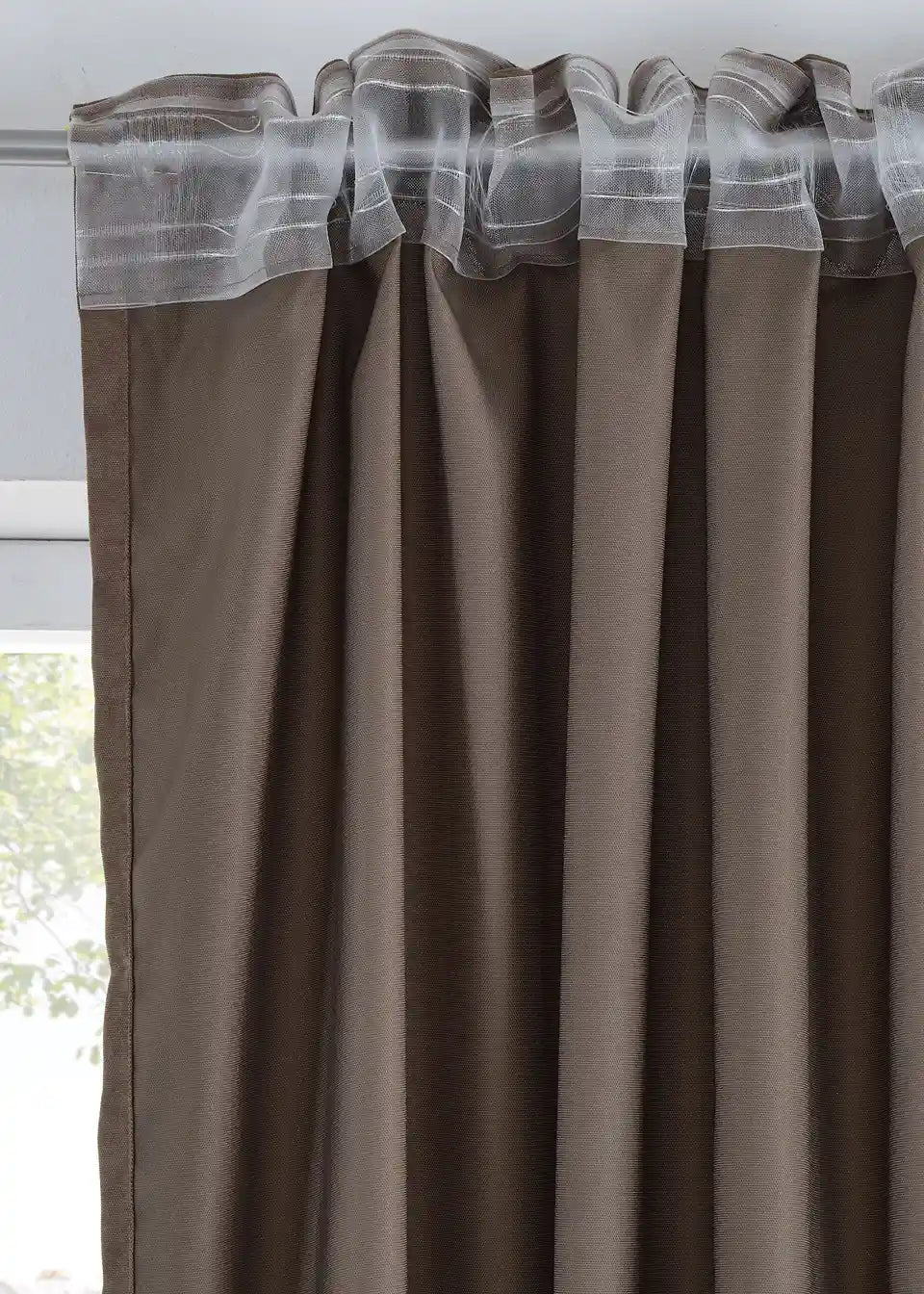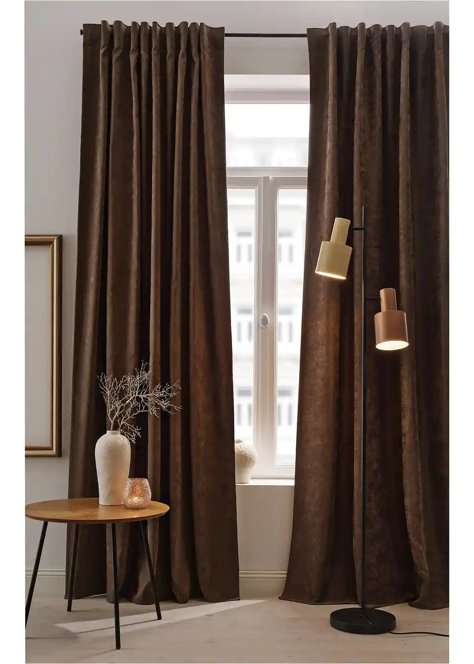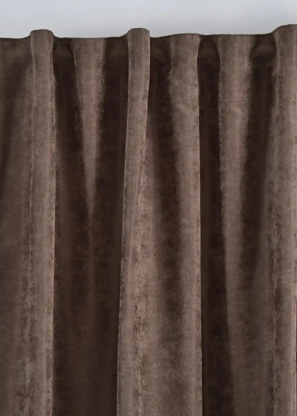 Zavjesa ima baršunastu površinu s laganom strukturom. Jednostavna je, moderna i svestrano primjenjiva.