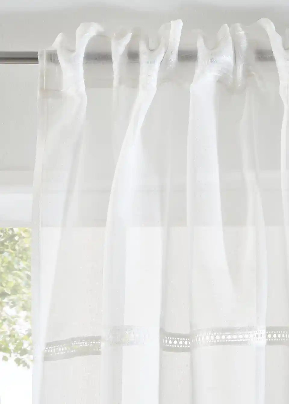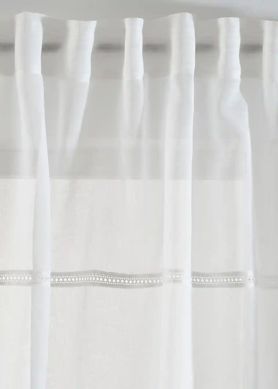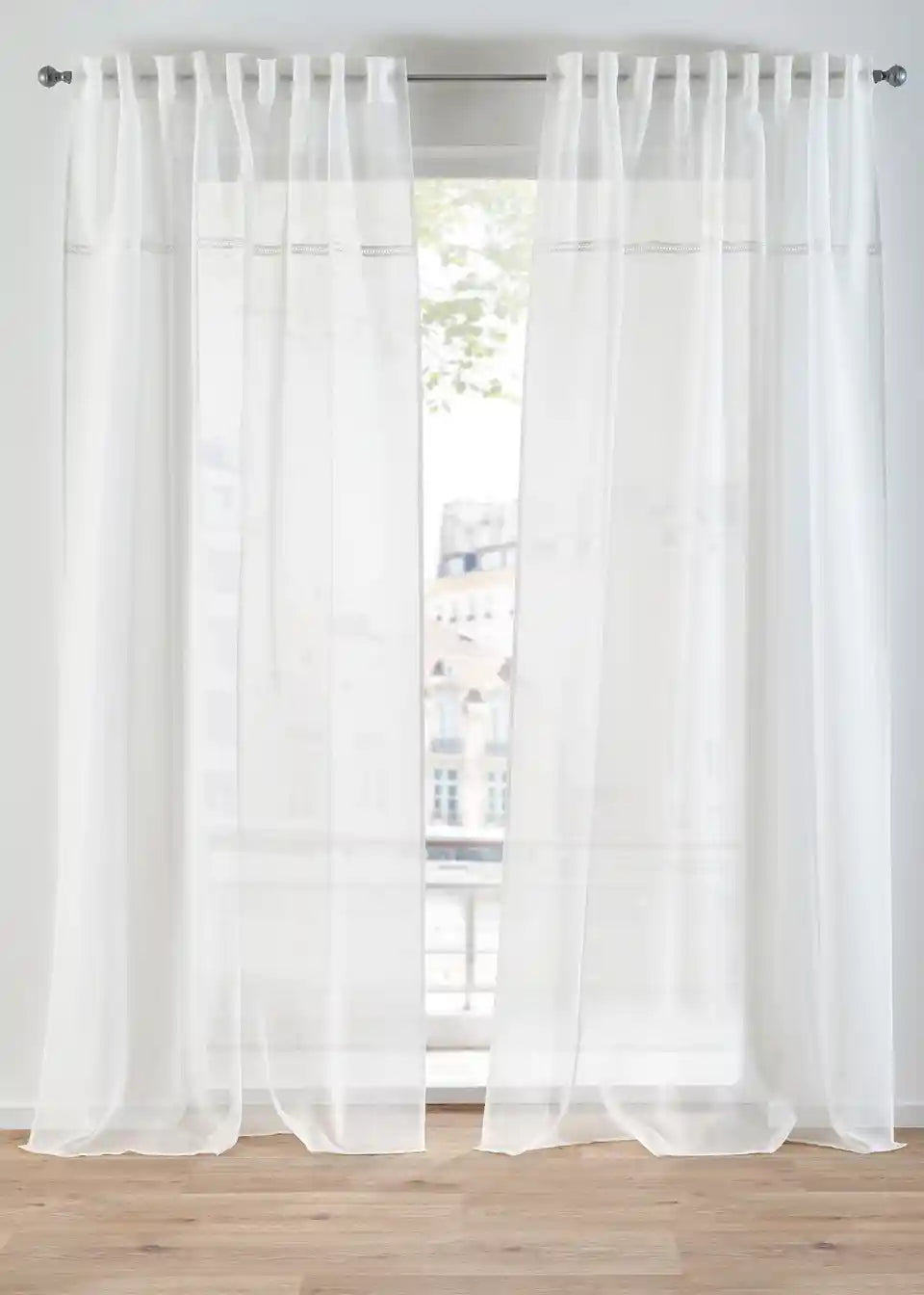 Bezvremenska zavjesa u paketu od 2 komada s vezom kroz tkaninu.