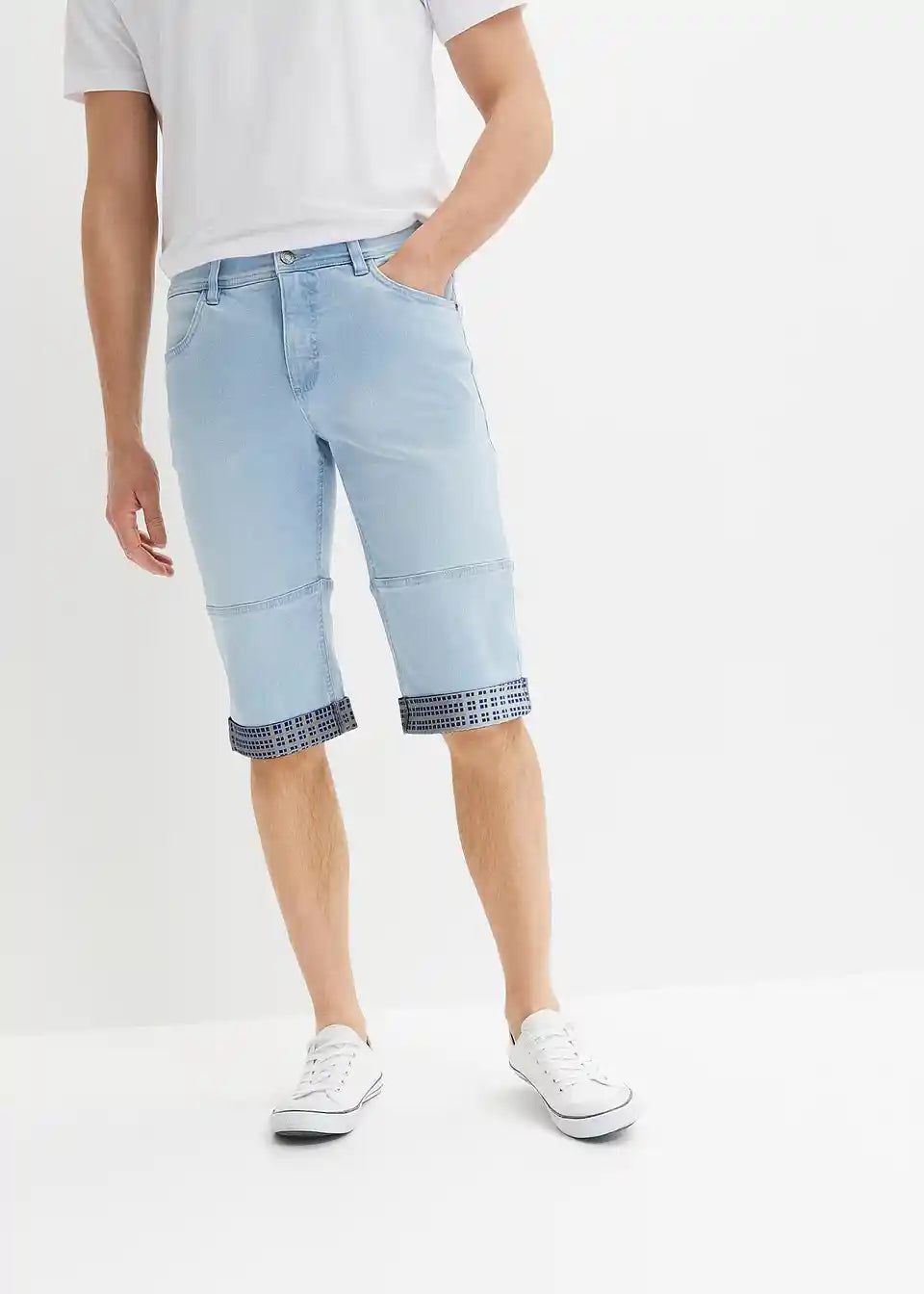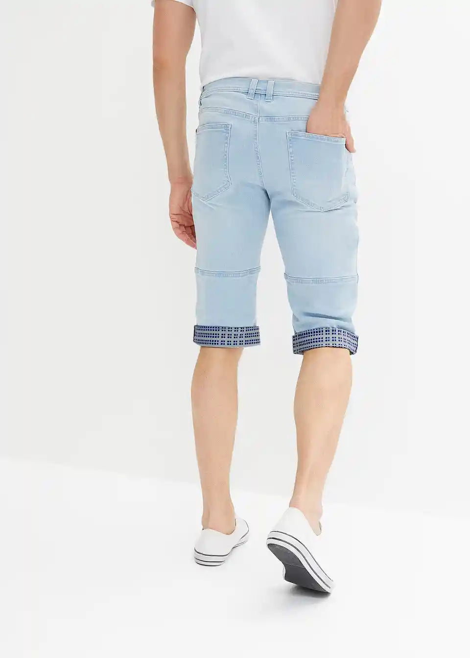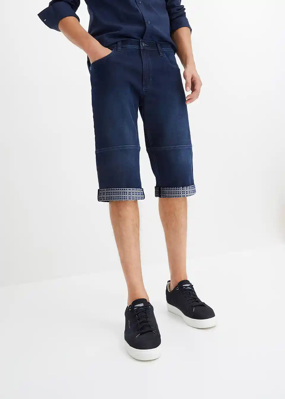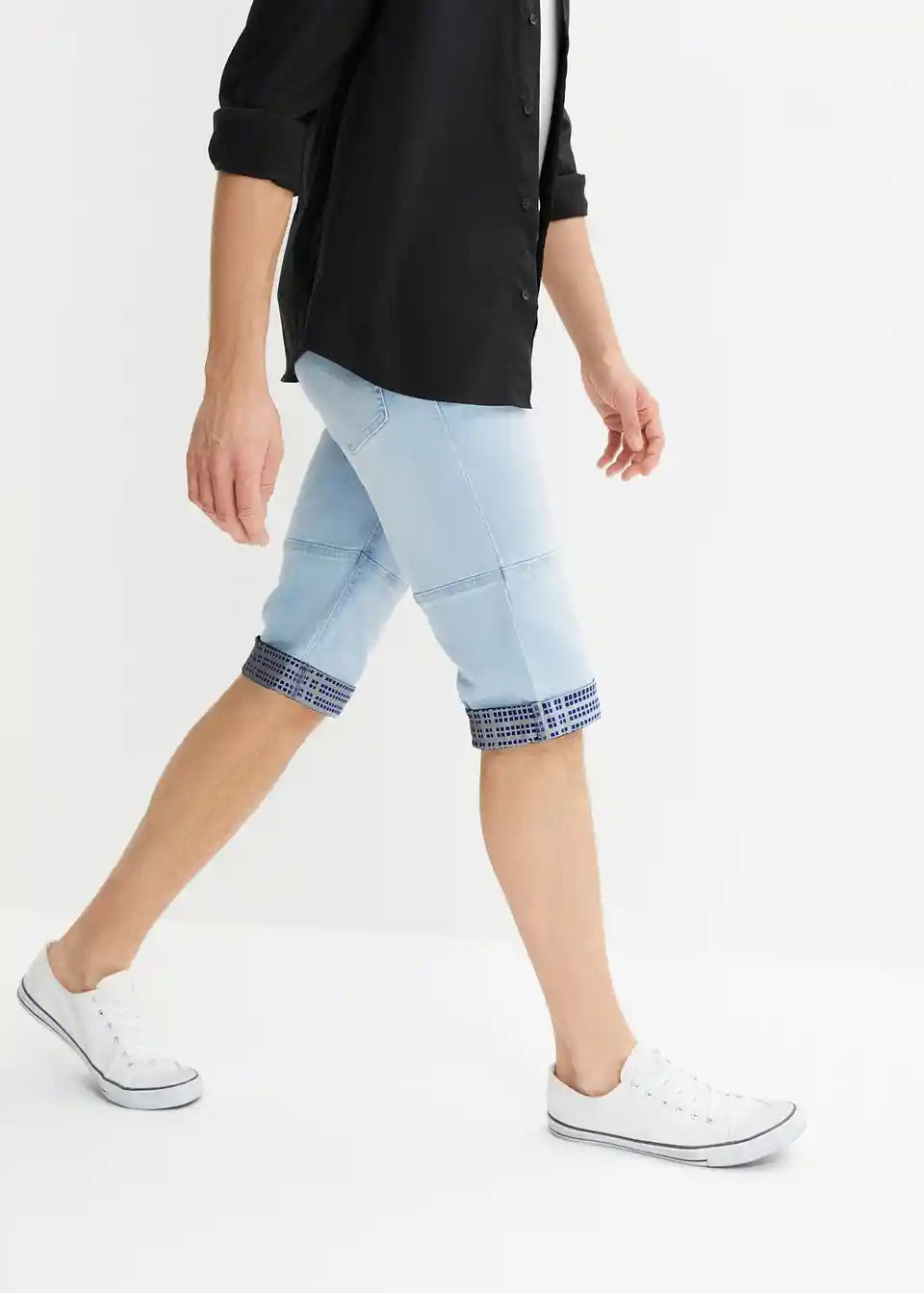 Moderni rastezljivi traper bermuda s presavijenim rubom