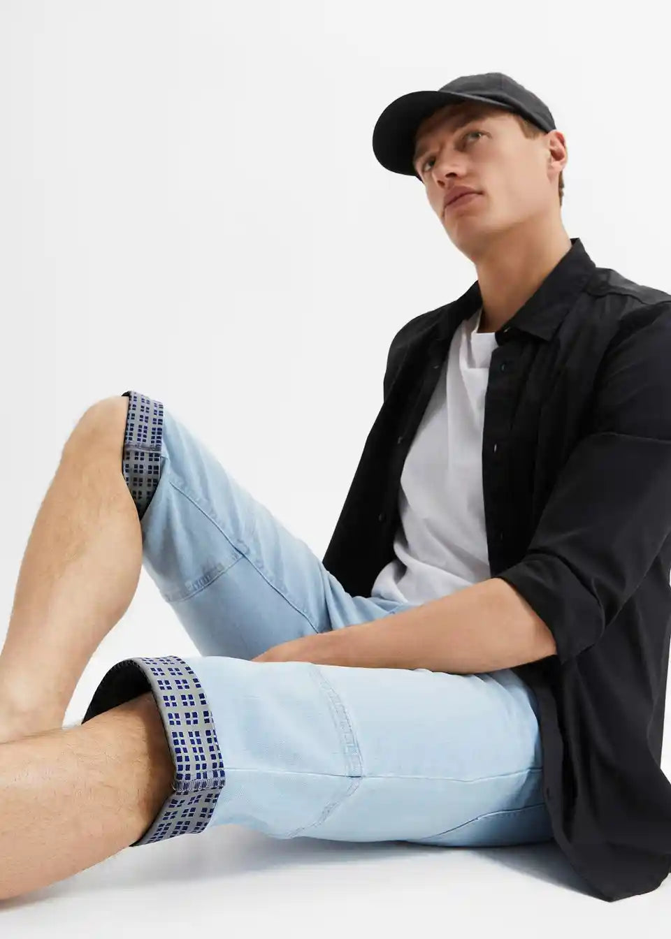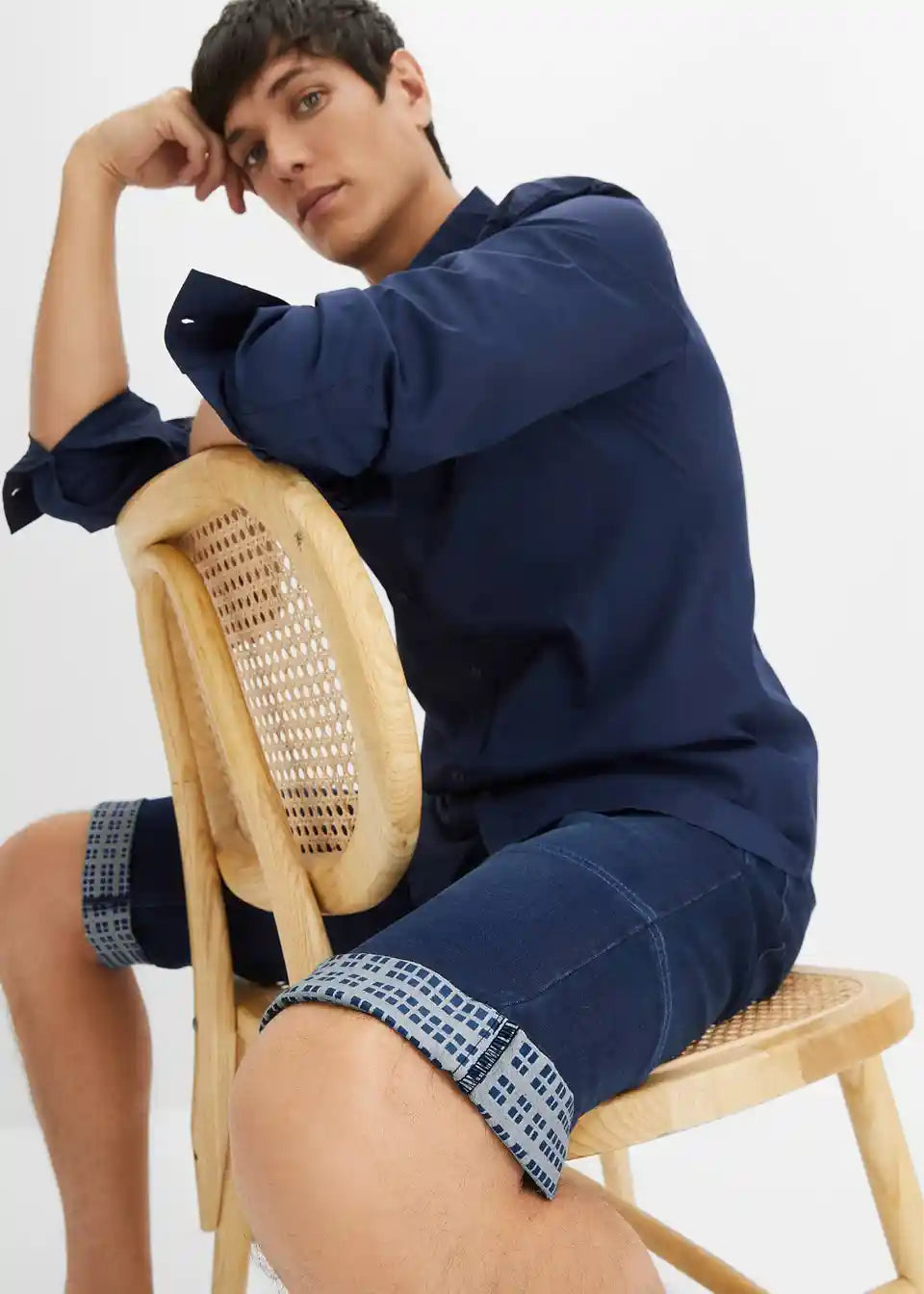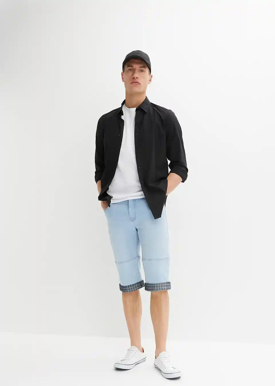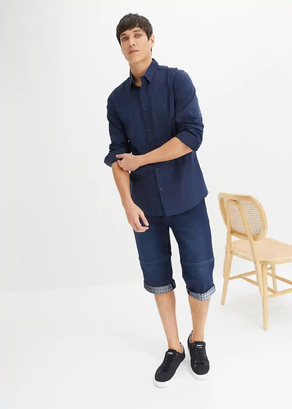 Moderni rastezljivi traper bermuda s presavijenim rubom
