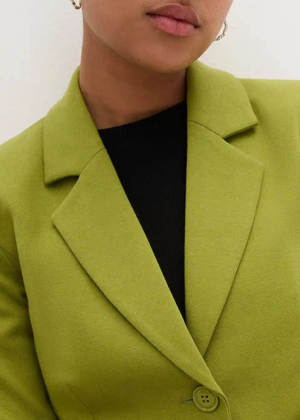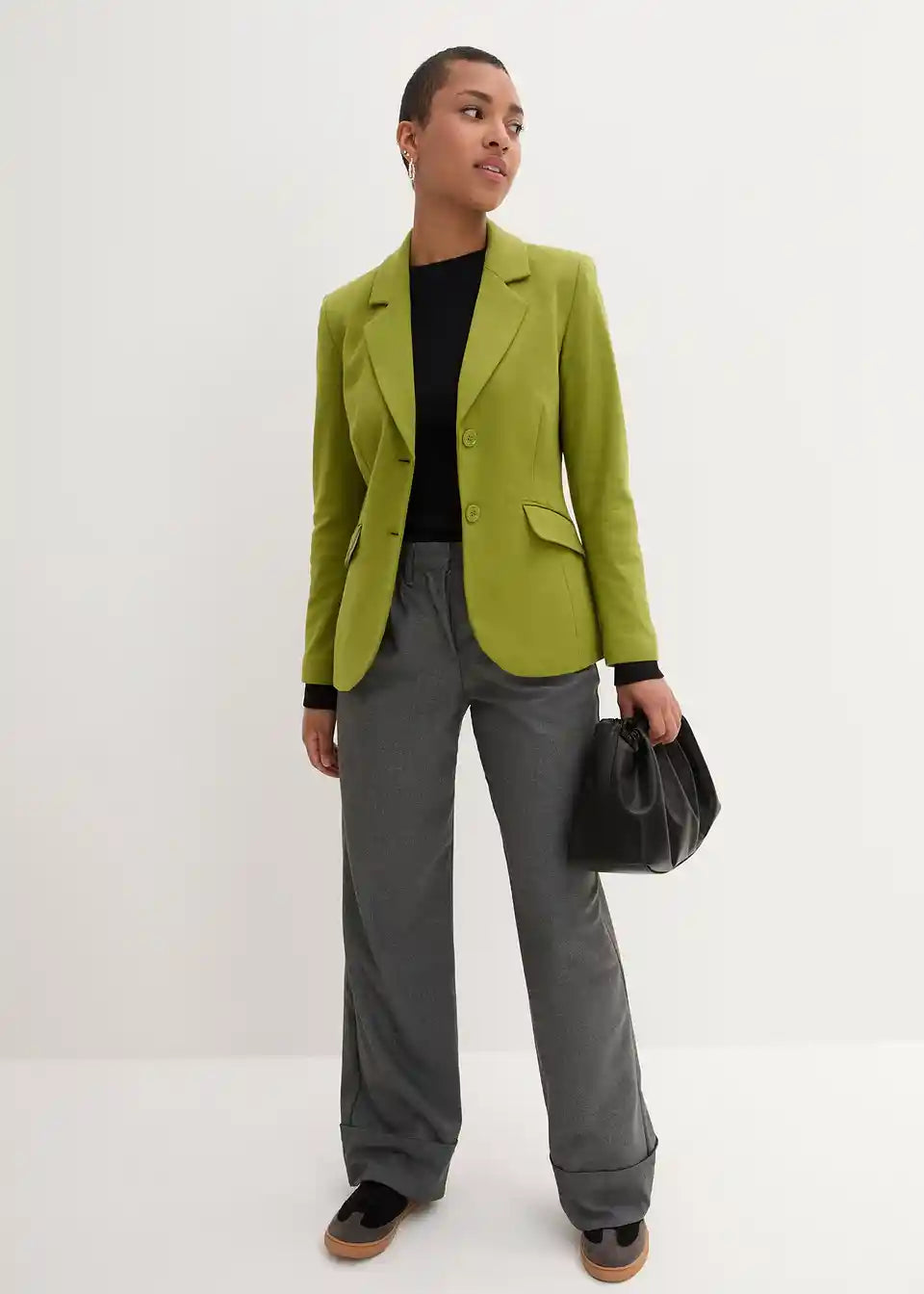 S ovim jersey sakoom dobivate moderan višenamjenski komad za posao i svakodnevnicu. Jednostavan dizajn iz kolekcije marke bpc odlikuje se dvjema gumbima, dugim rever ovratnikom te koso postavljenim džepovima s preklopom. Za dobar kroj pobrinut će se vješto postavljeni šavovi za oblikovanje te strukirani, figuralni kroj.