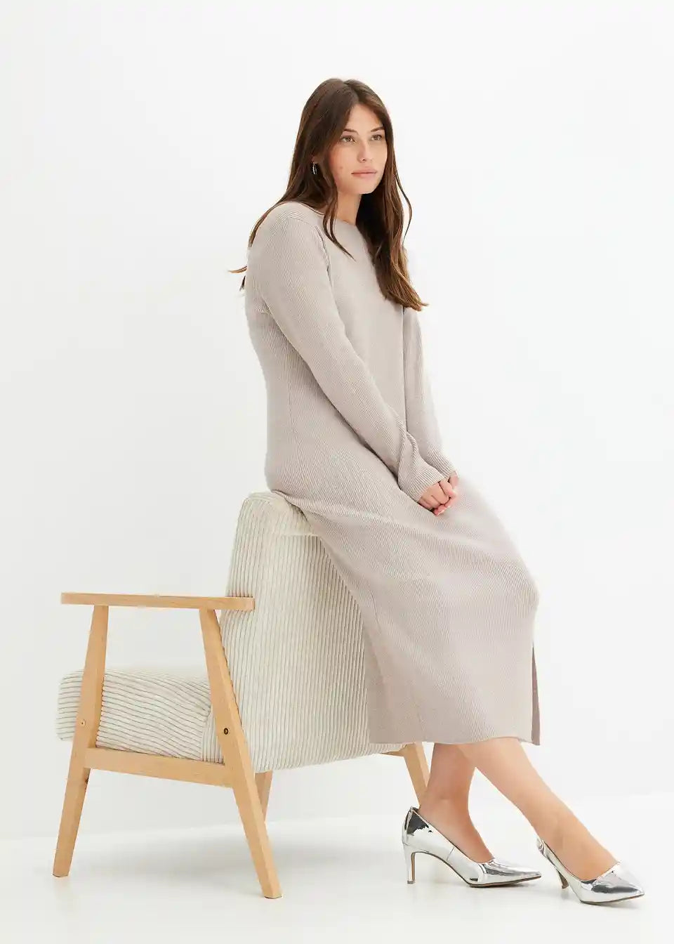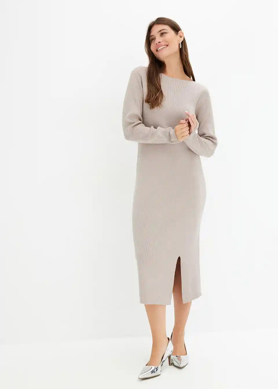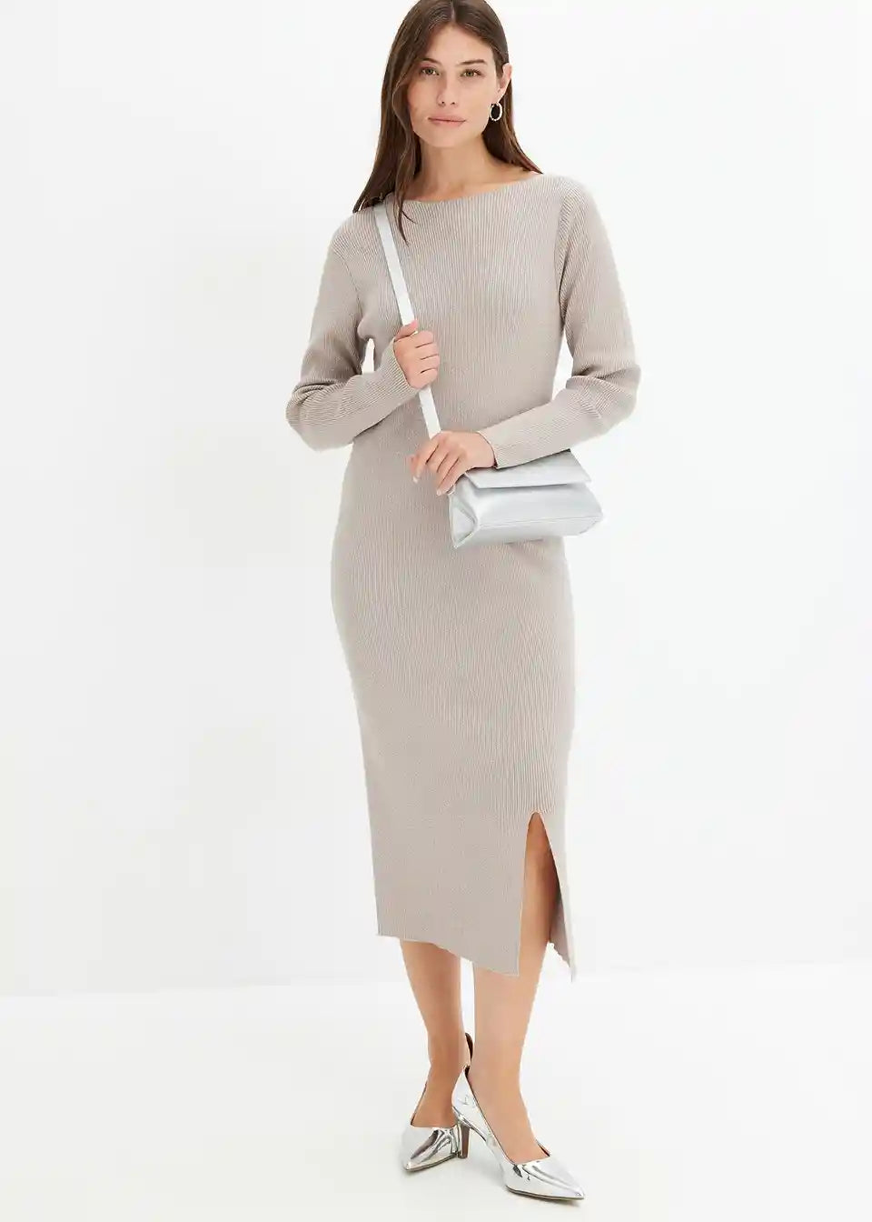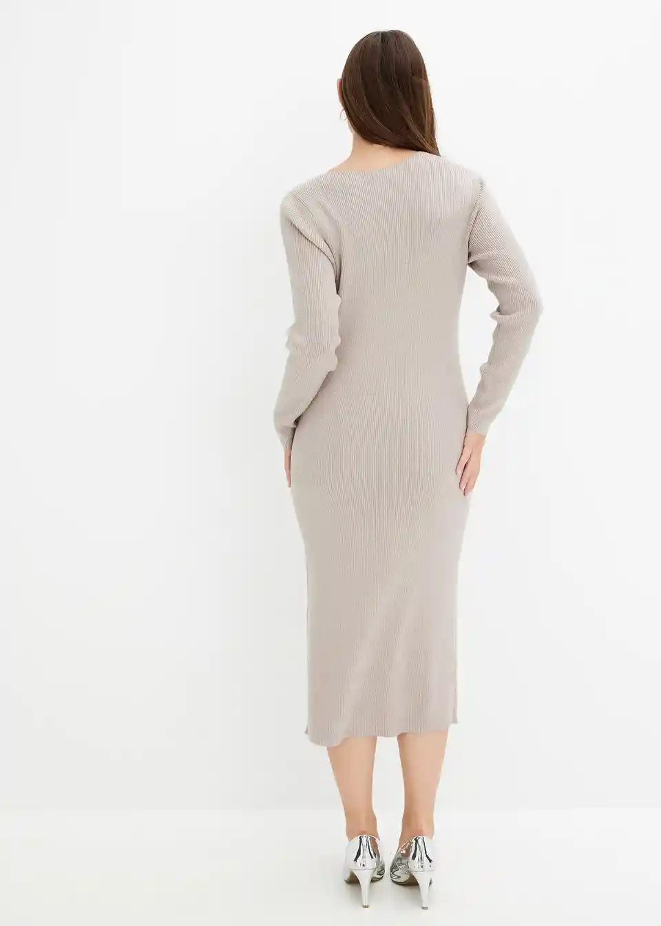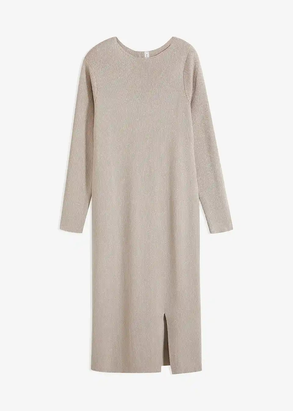 Prekrasna pletena haljina sa sjajnim efektom, asimetričnim izrezom i prorezom