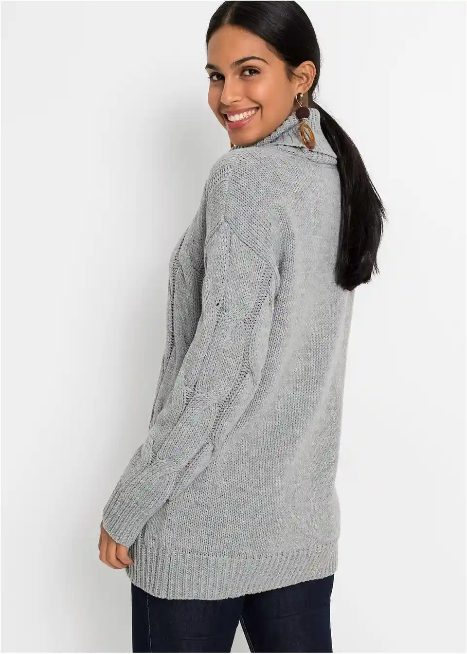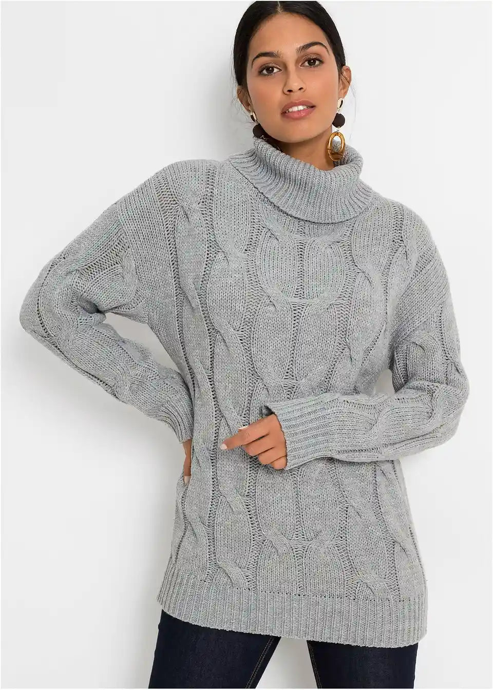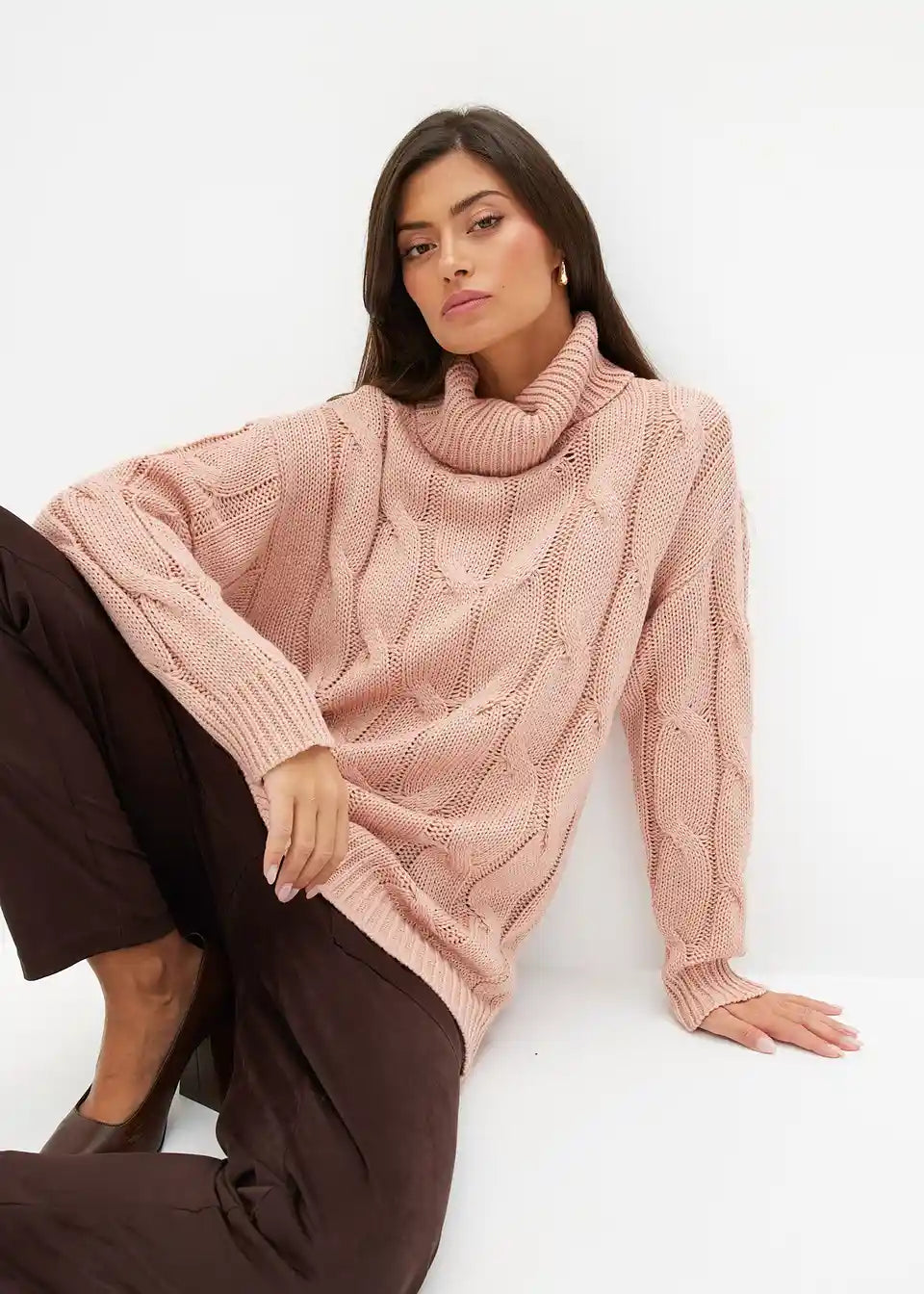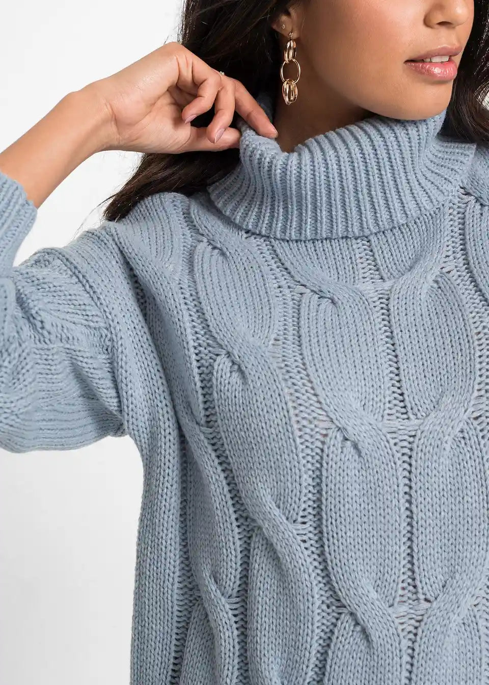 Široko krojen pulover s uzorkom pletenice