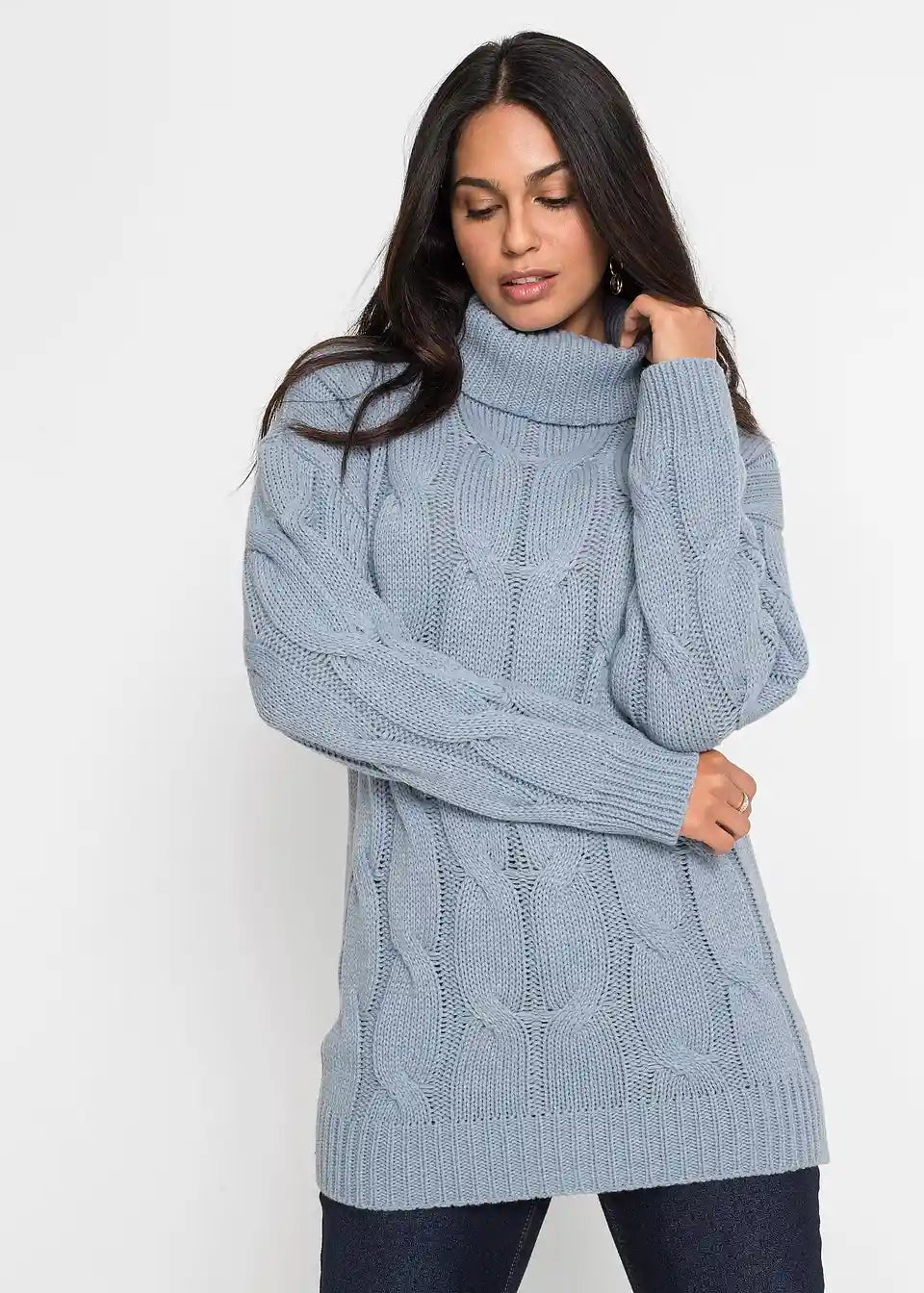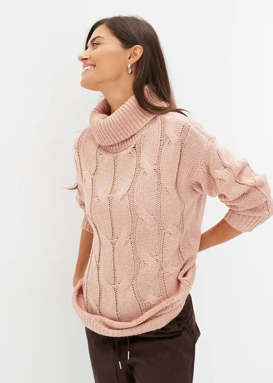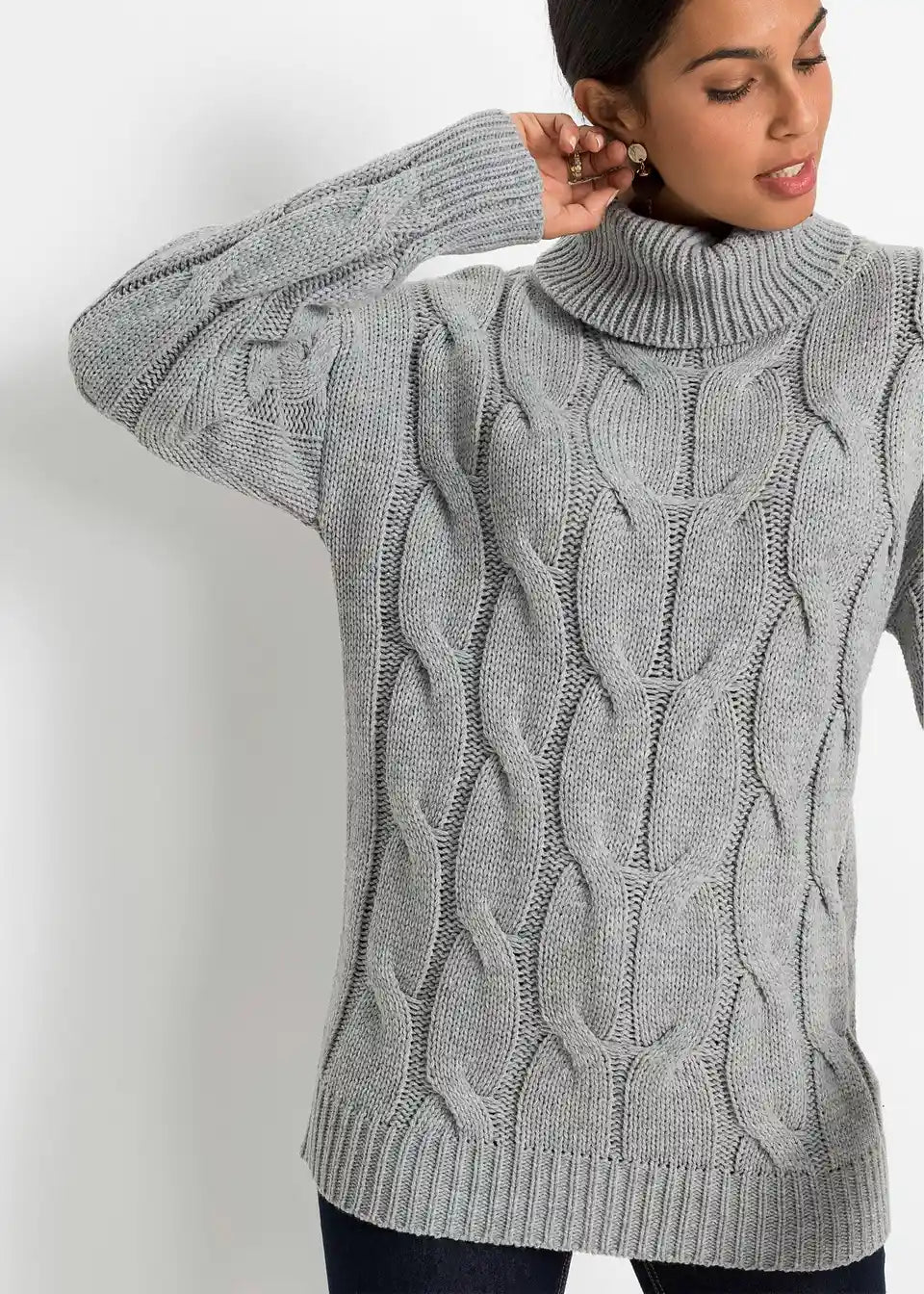 Široko krojen pulover s uzorkom pletenice