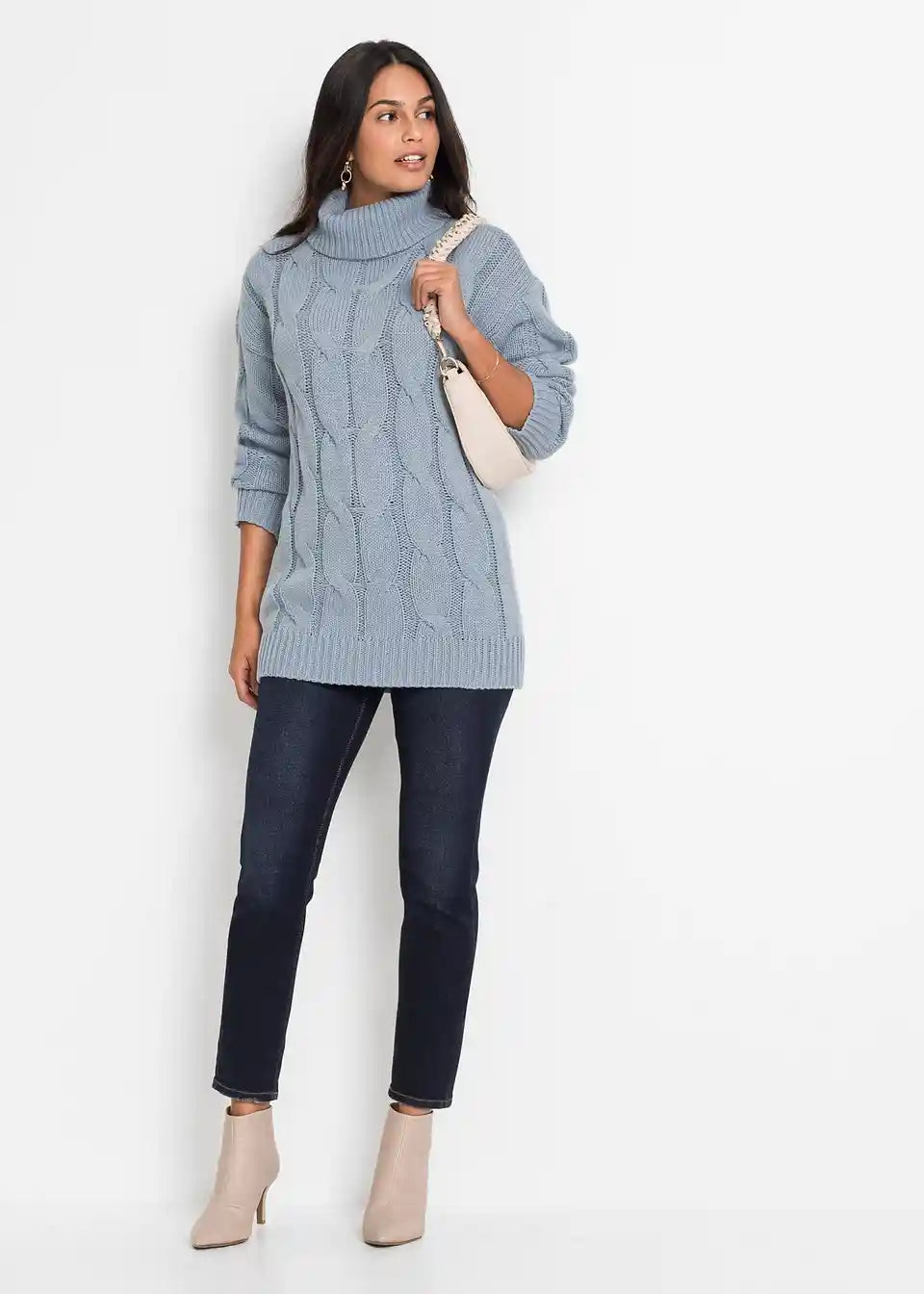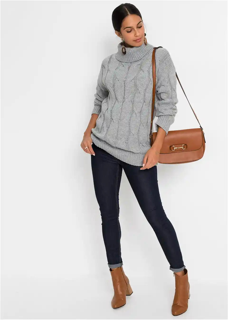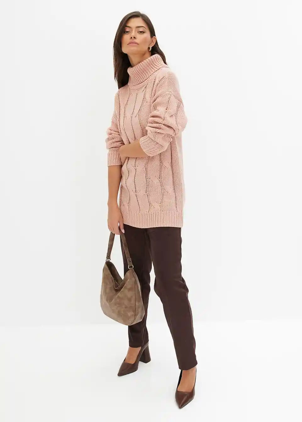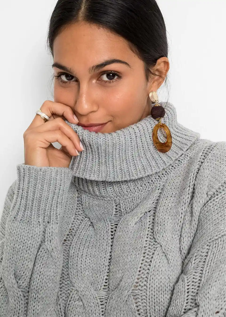 Široko krojen pulover s uzorkom pletenice