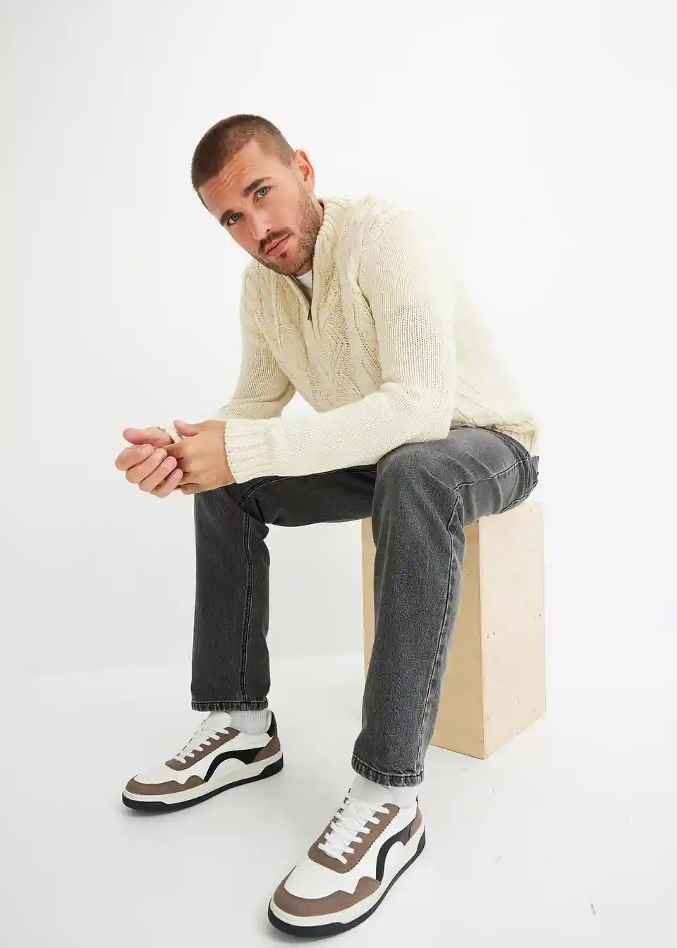 Moderan pulover s klasičnim pletenim uzorkom