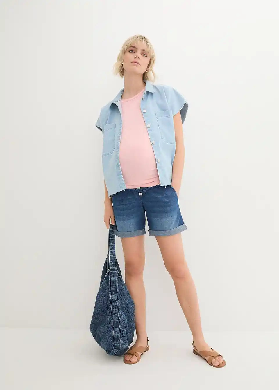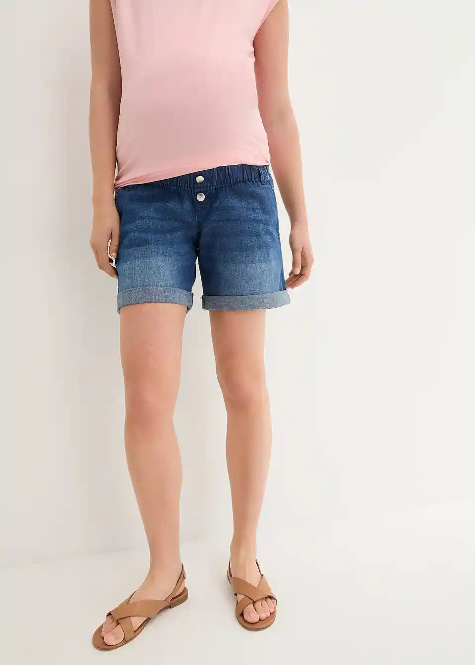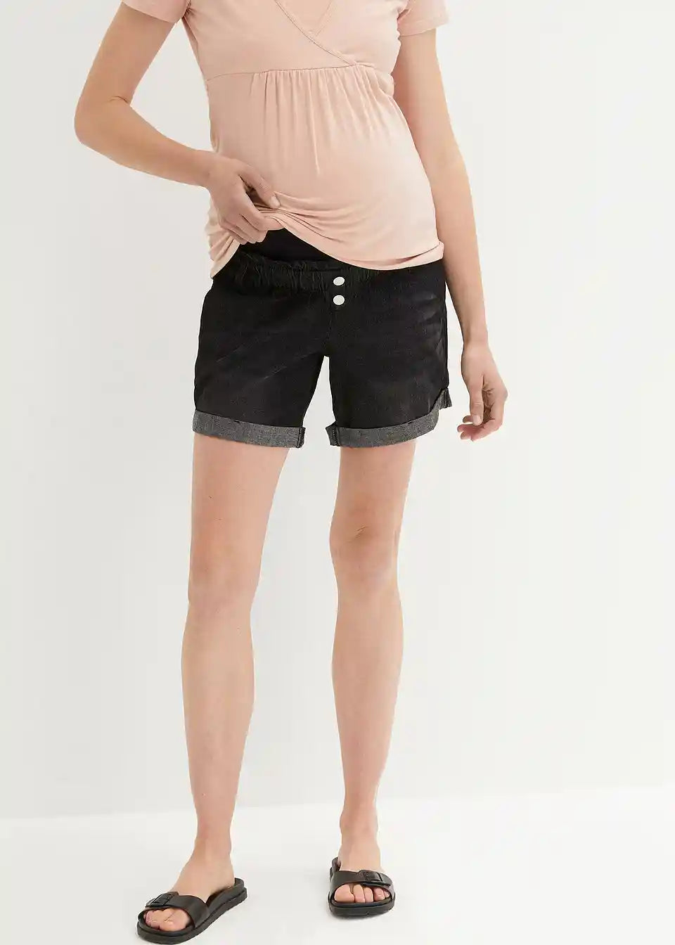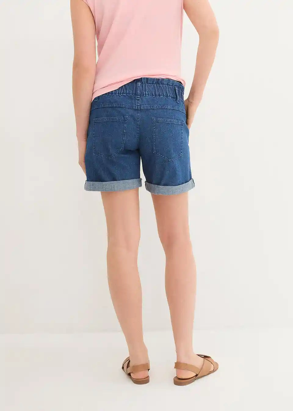 Zahvaljujući elastičnom materijalu i pojasu za trbuh, ove Paperbag traper kratke hlače prilagođavaju se rastućem trbuhu i mogu se nositi tijekom cijele trudnoće.