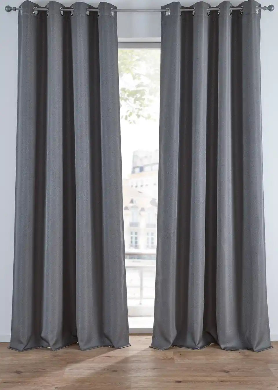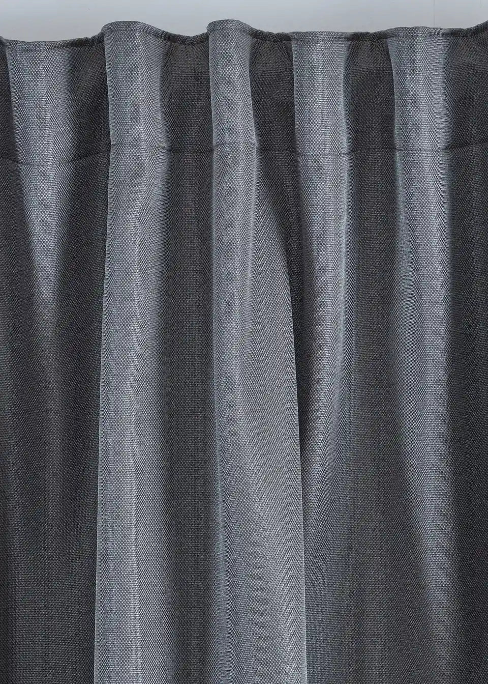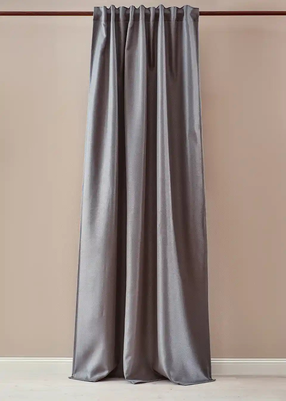 Zavjesa je vrlo moderna jer su i boja i struktura tkanine u trendu. Lagani sjaj daje joj profinjen izgled.