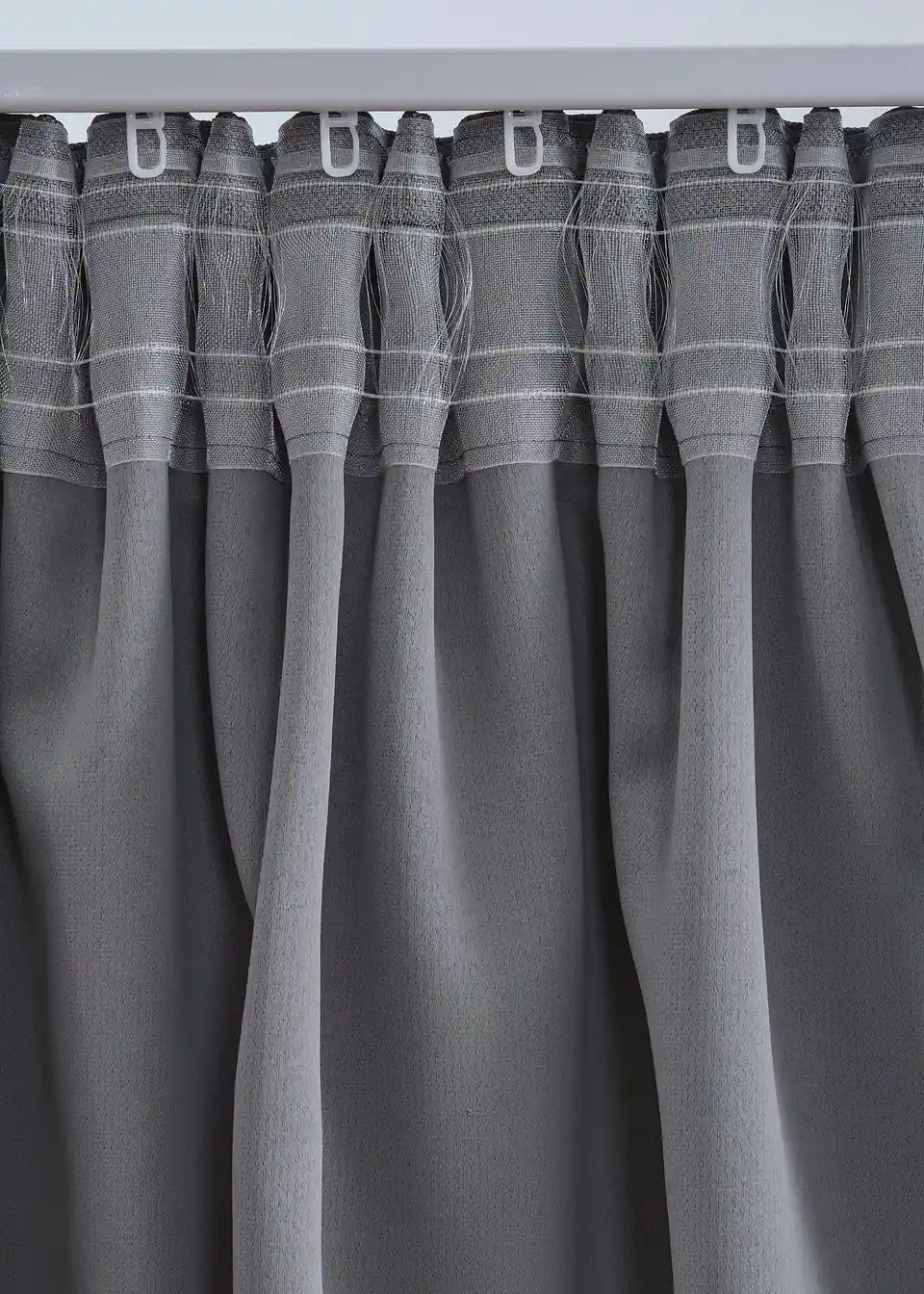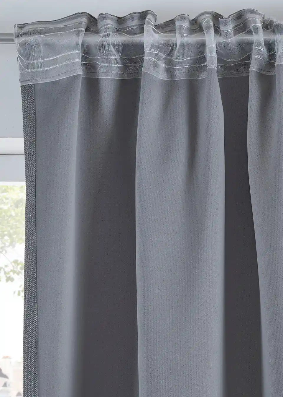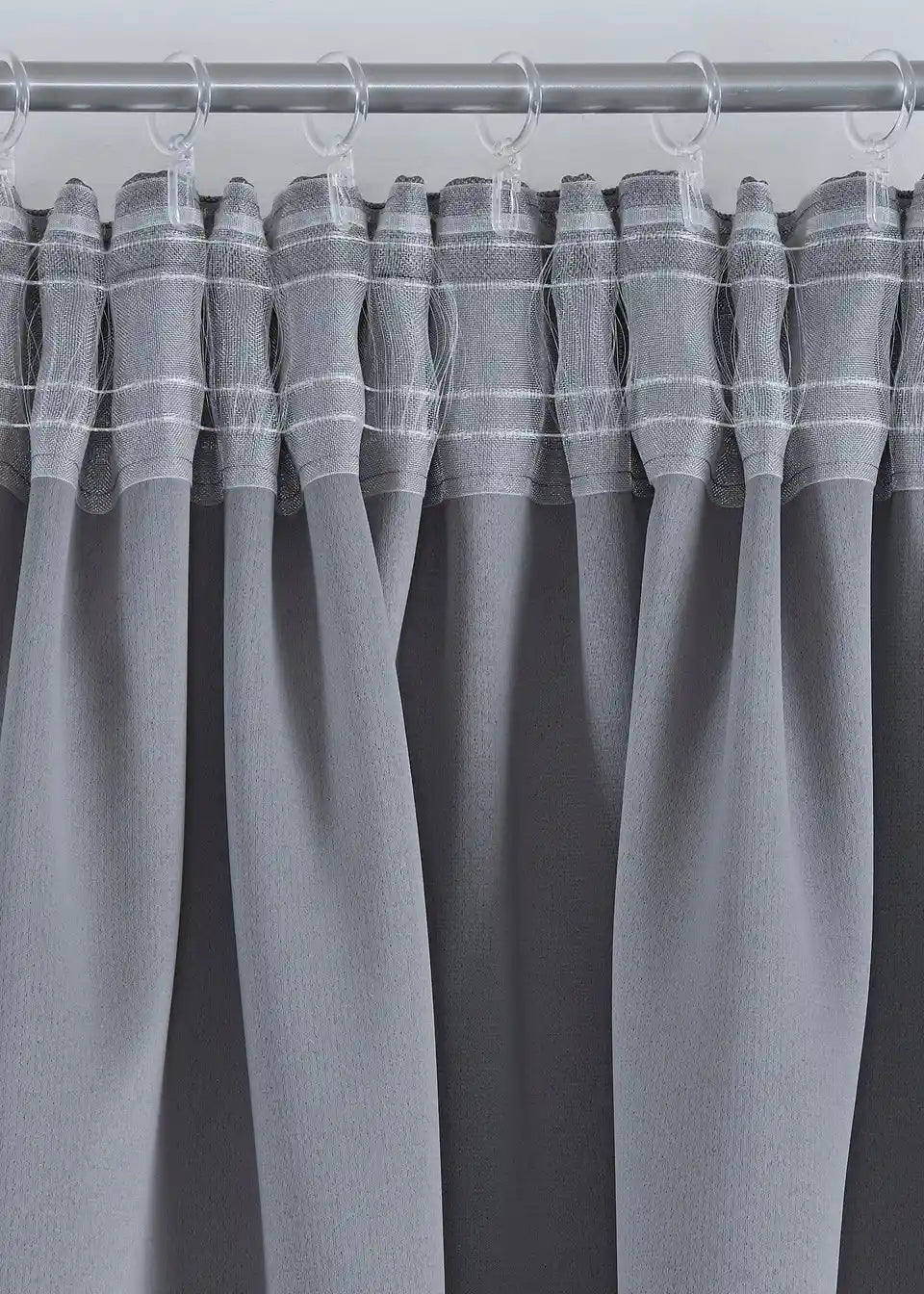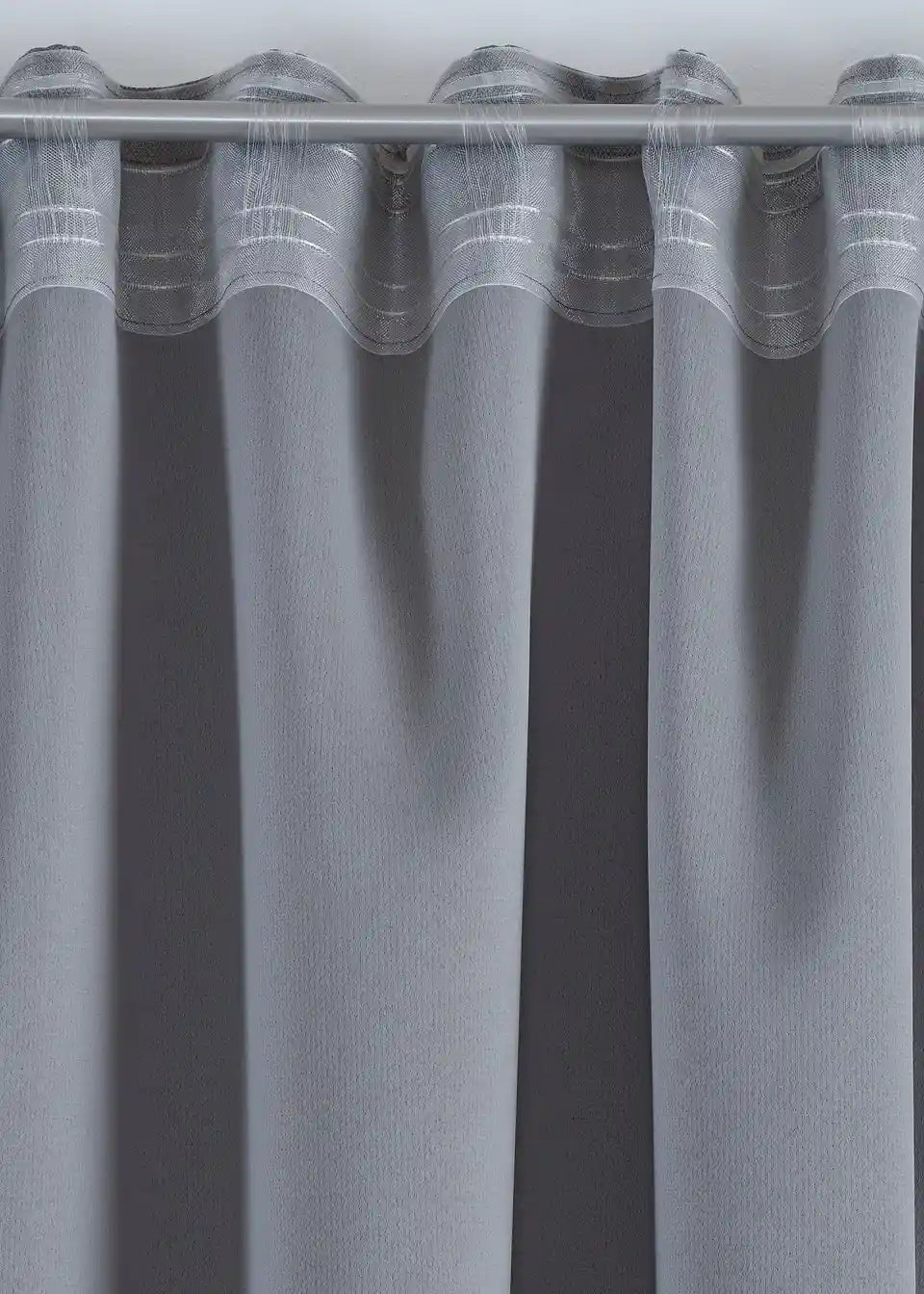 Zavjesa je vrlo moderna jer su i boja i struktura tkanine u trendu. Lagani sjaj daje joj profinjen izgled.