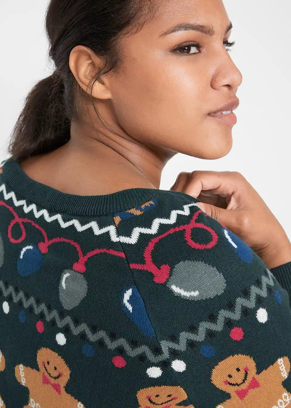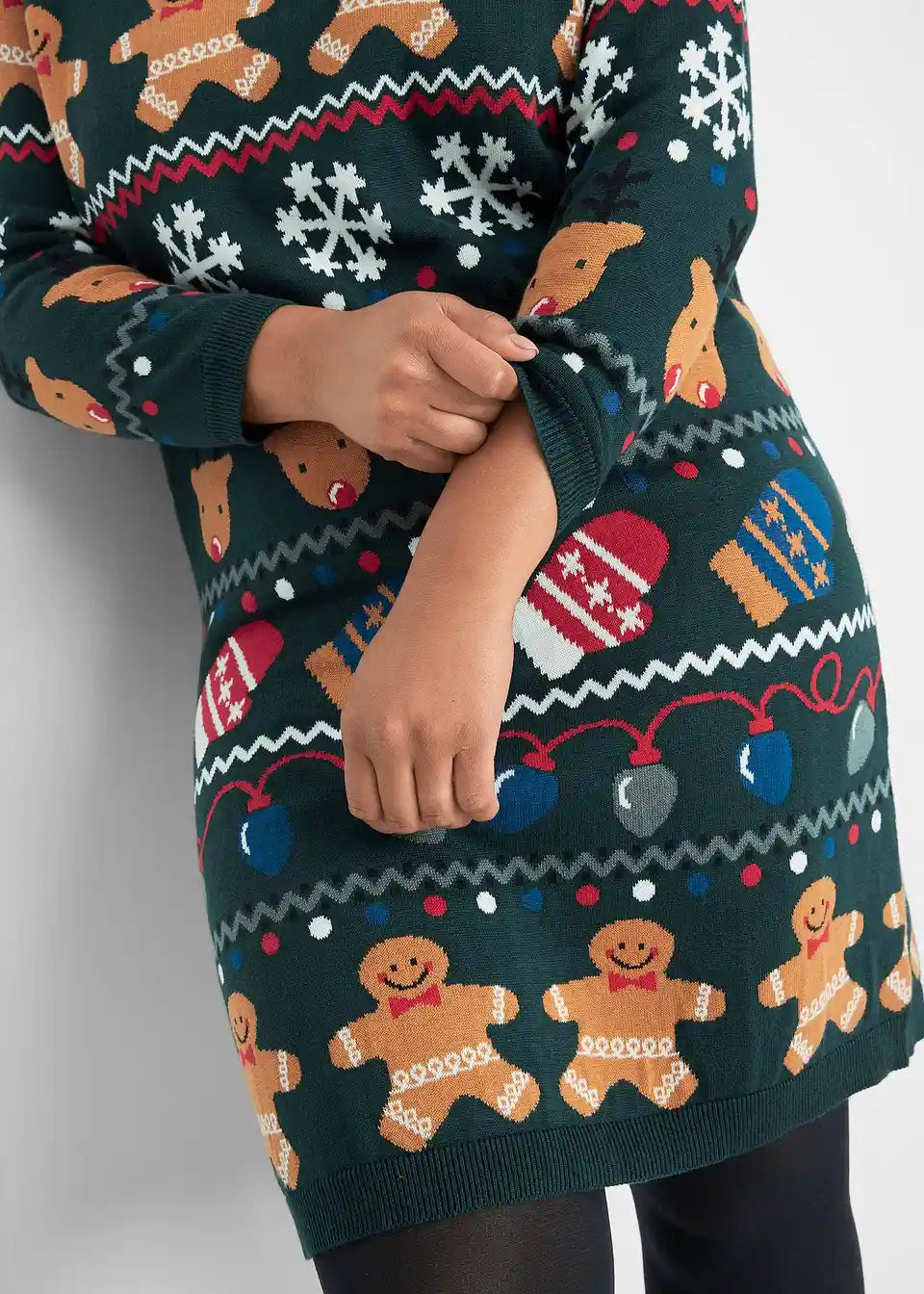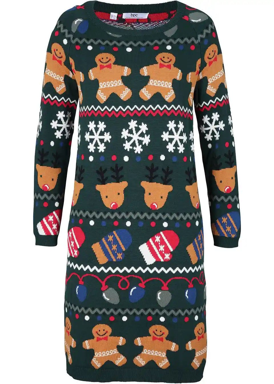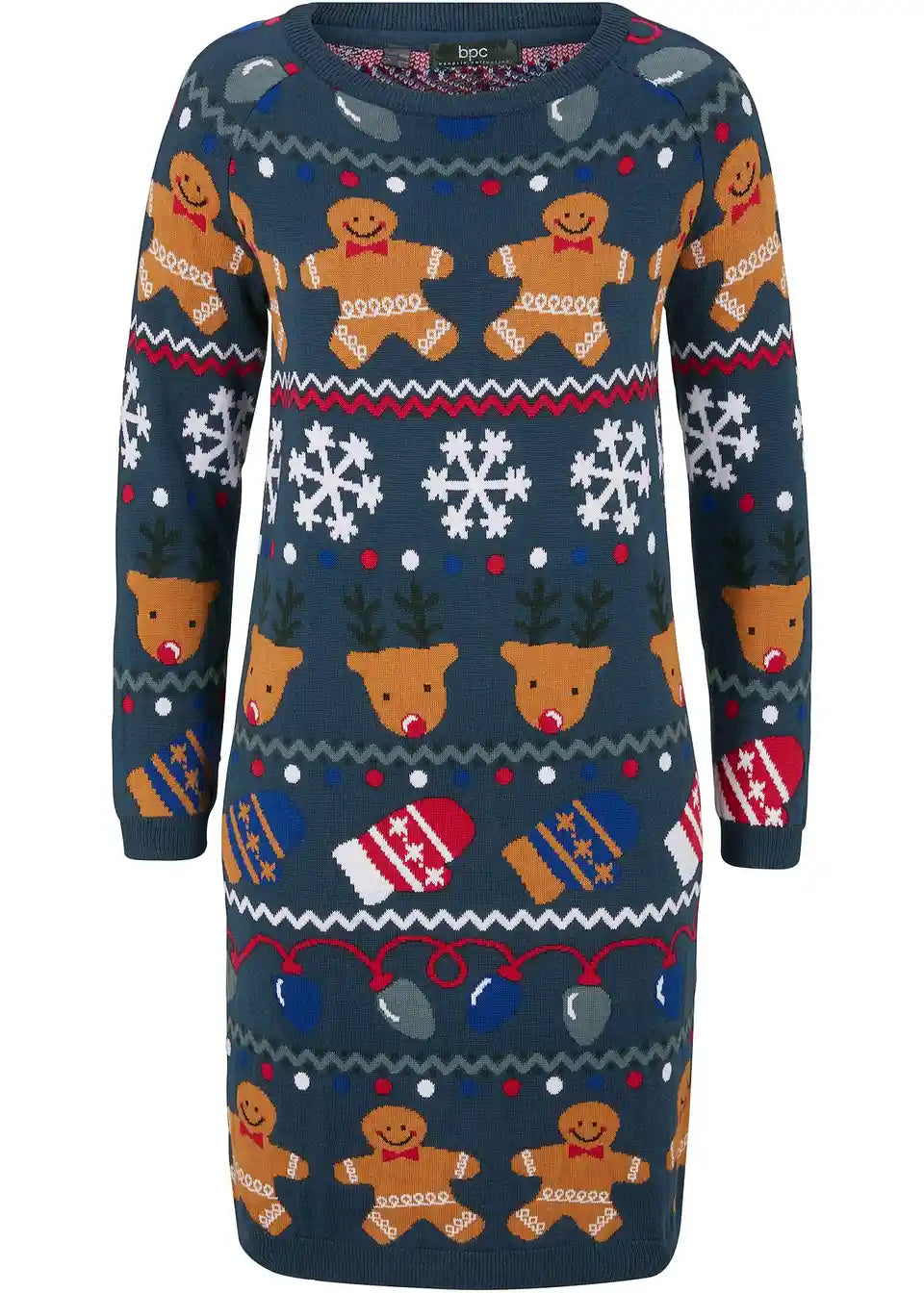 Udobna pletena haljina opuštenog kroja s božićnim motivom
