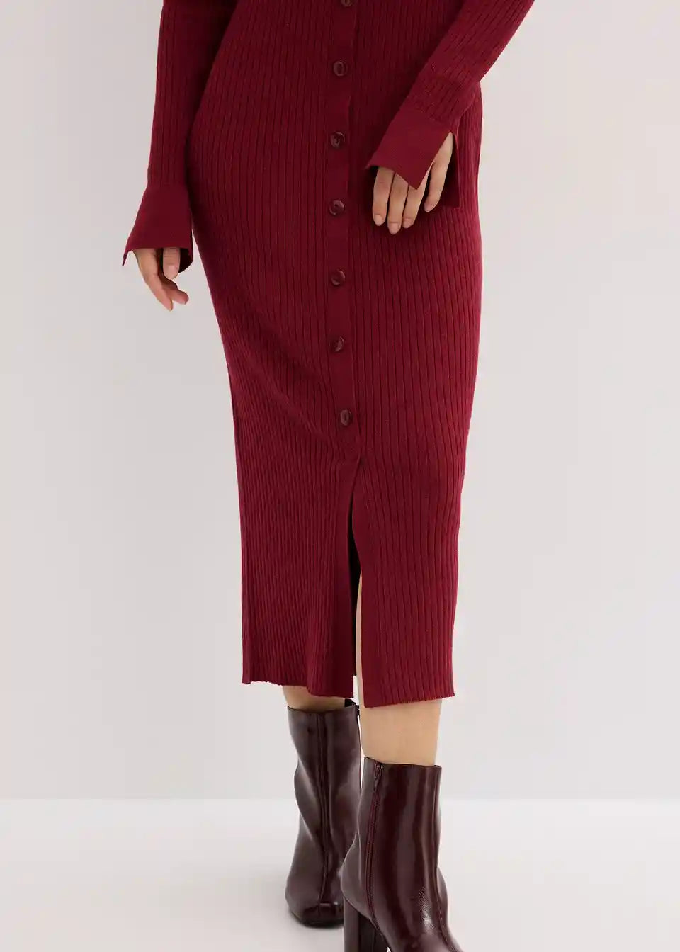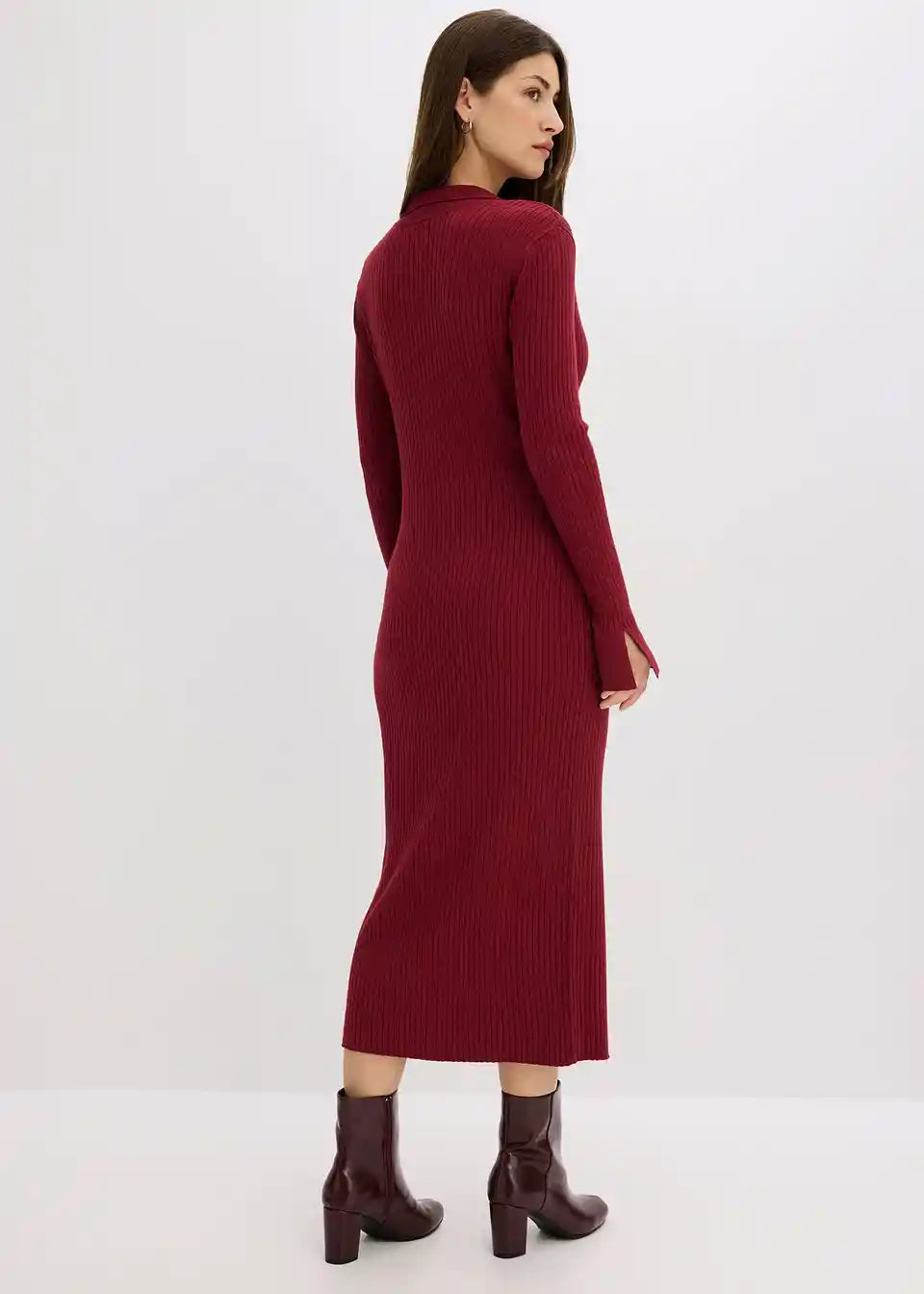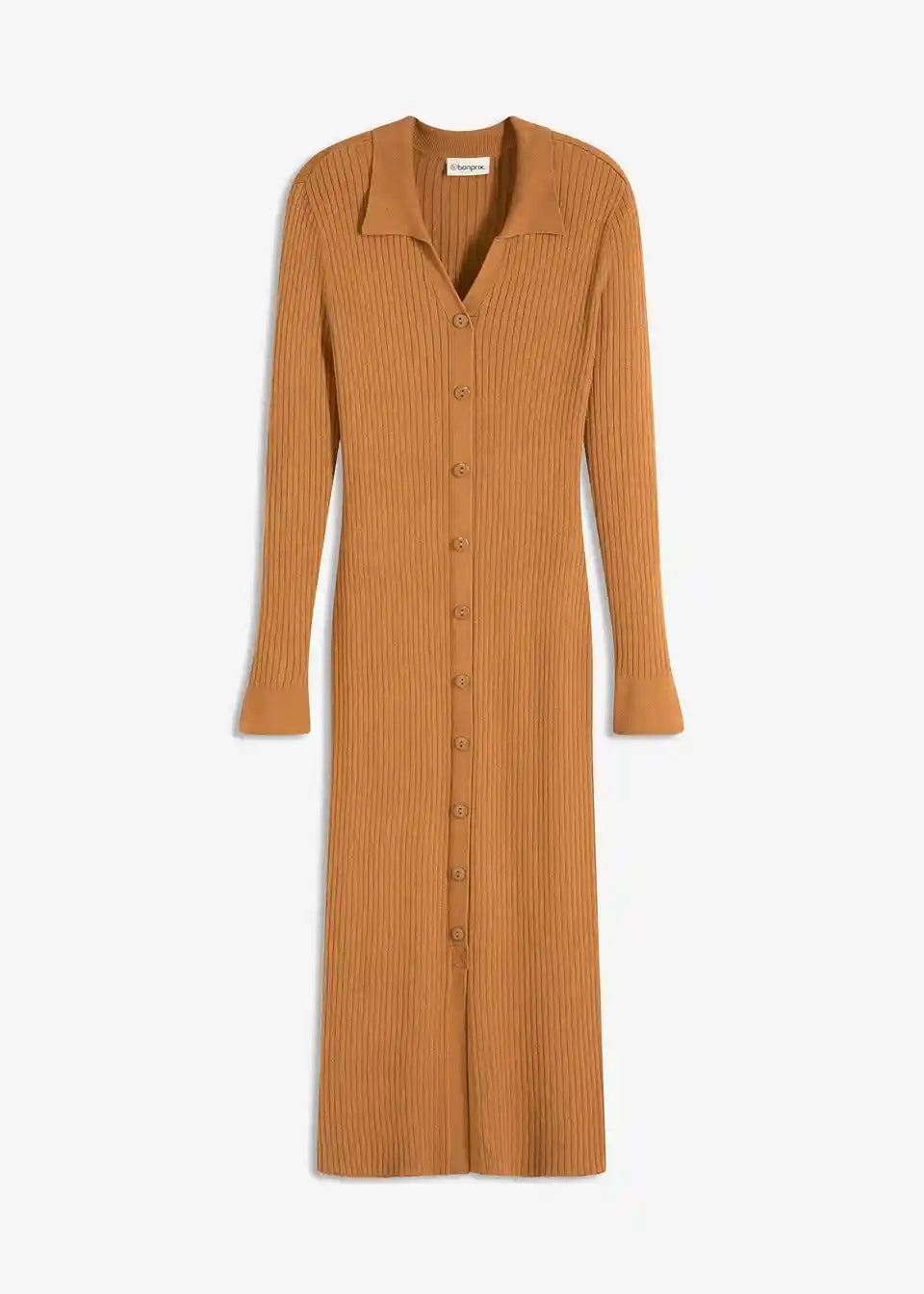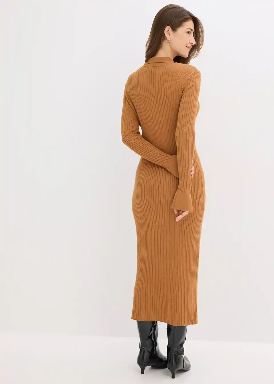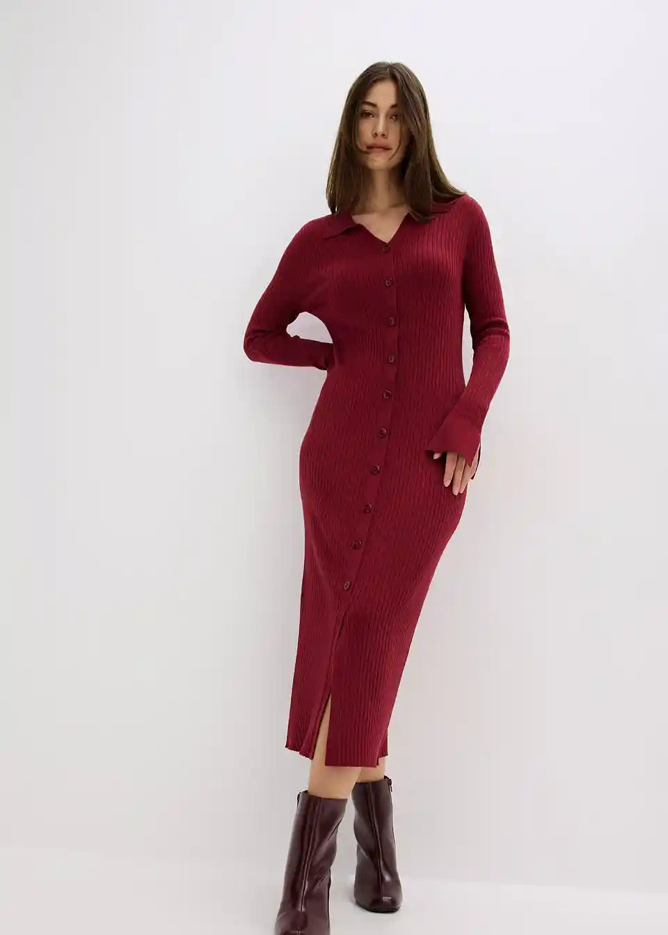 Ženska pletena haljina s gumbima i ovratnikom