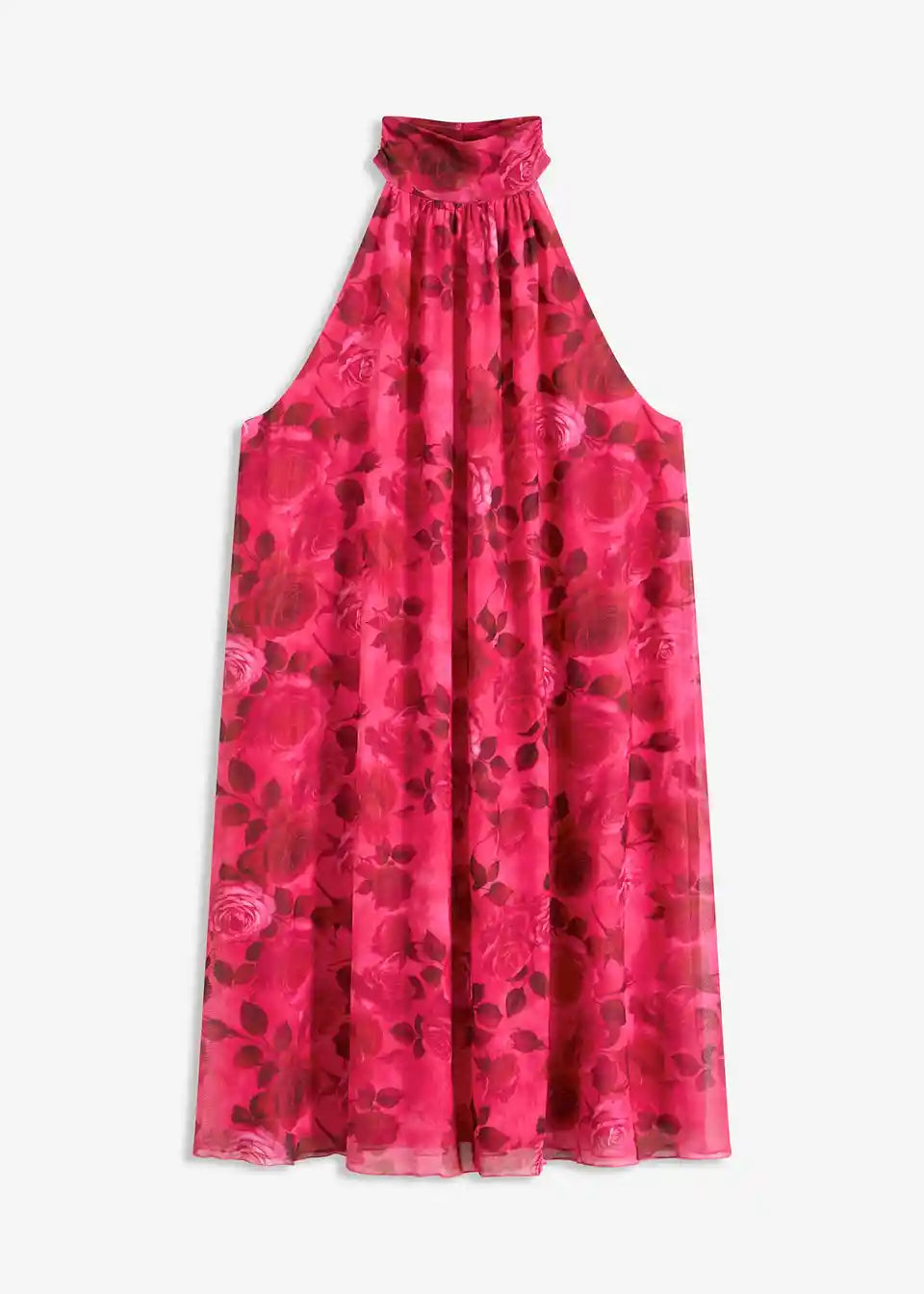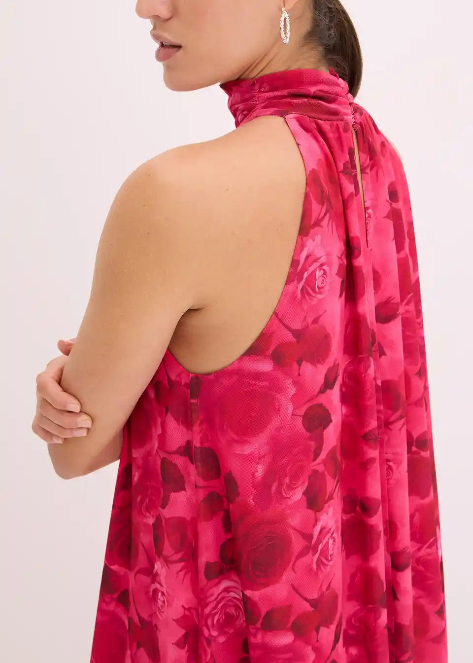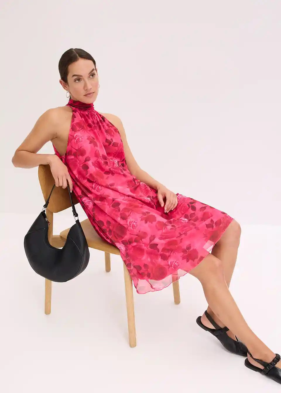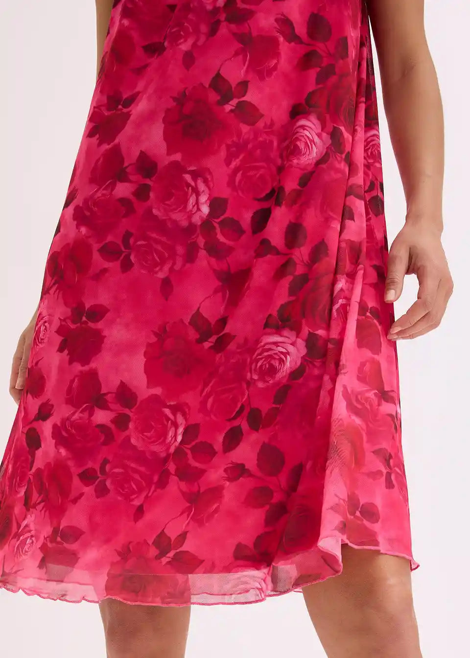kratka haljina od meke mrežaste tkanine s cvjetnim printom i kopčanjem na gumb straga na izrezu
