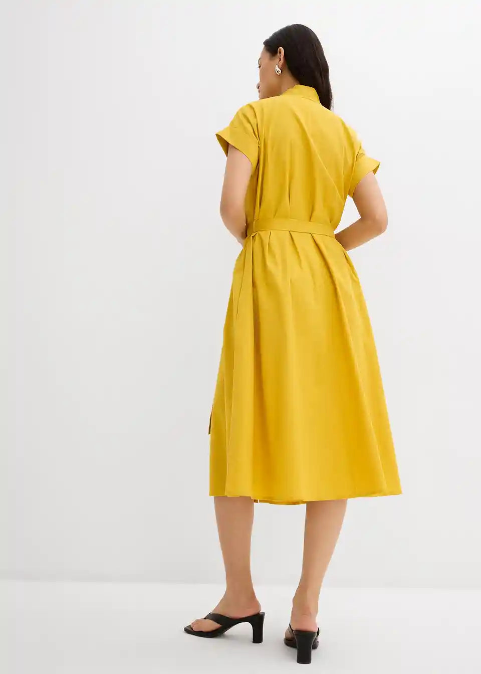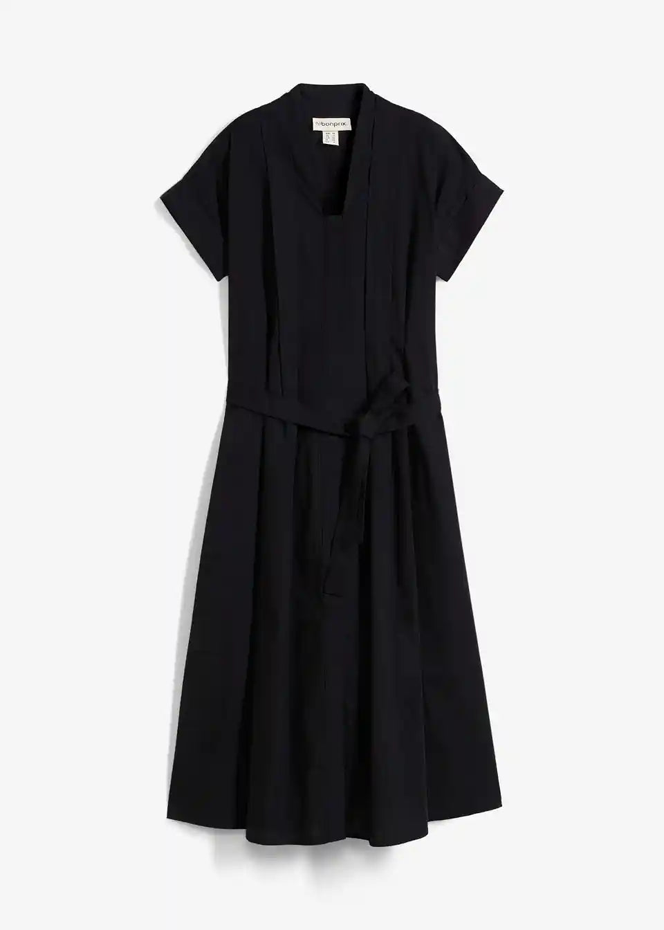 Raskošna haljina s V-izrezom, kratkim rukavima, podesivim pojasom u struku i bočnim džepovima