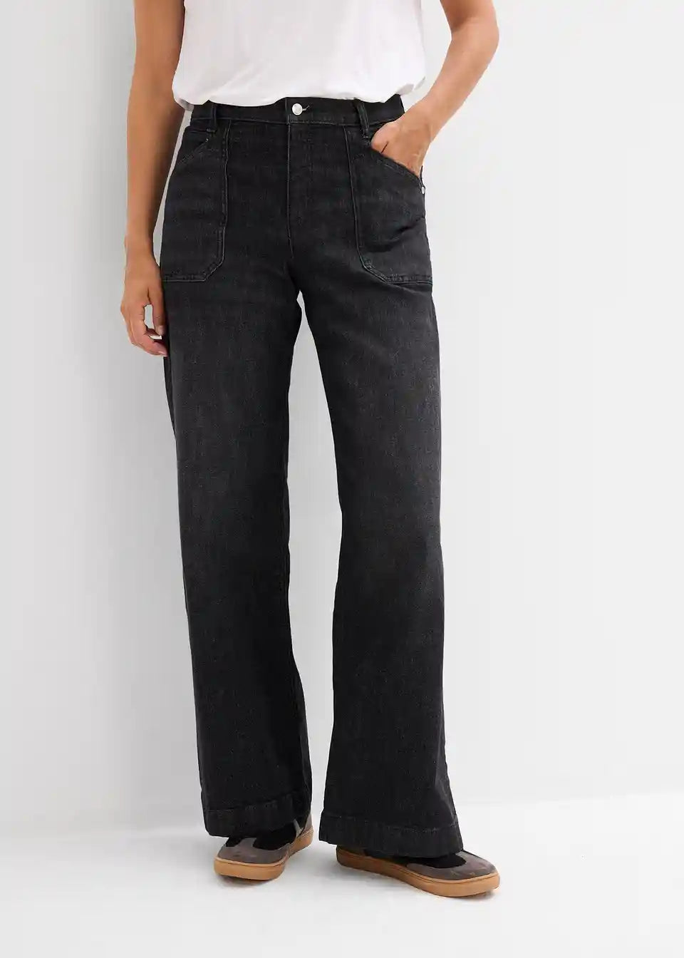 Wide-Leg-Jeans Mid Waist s našivenim džepovima