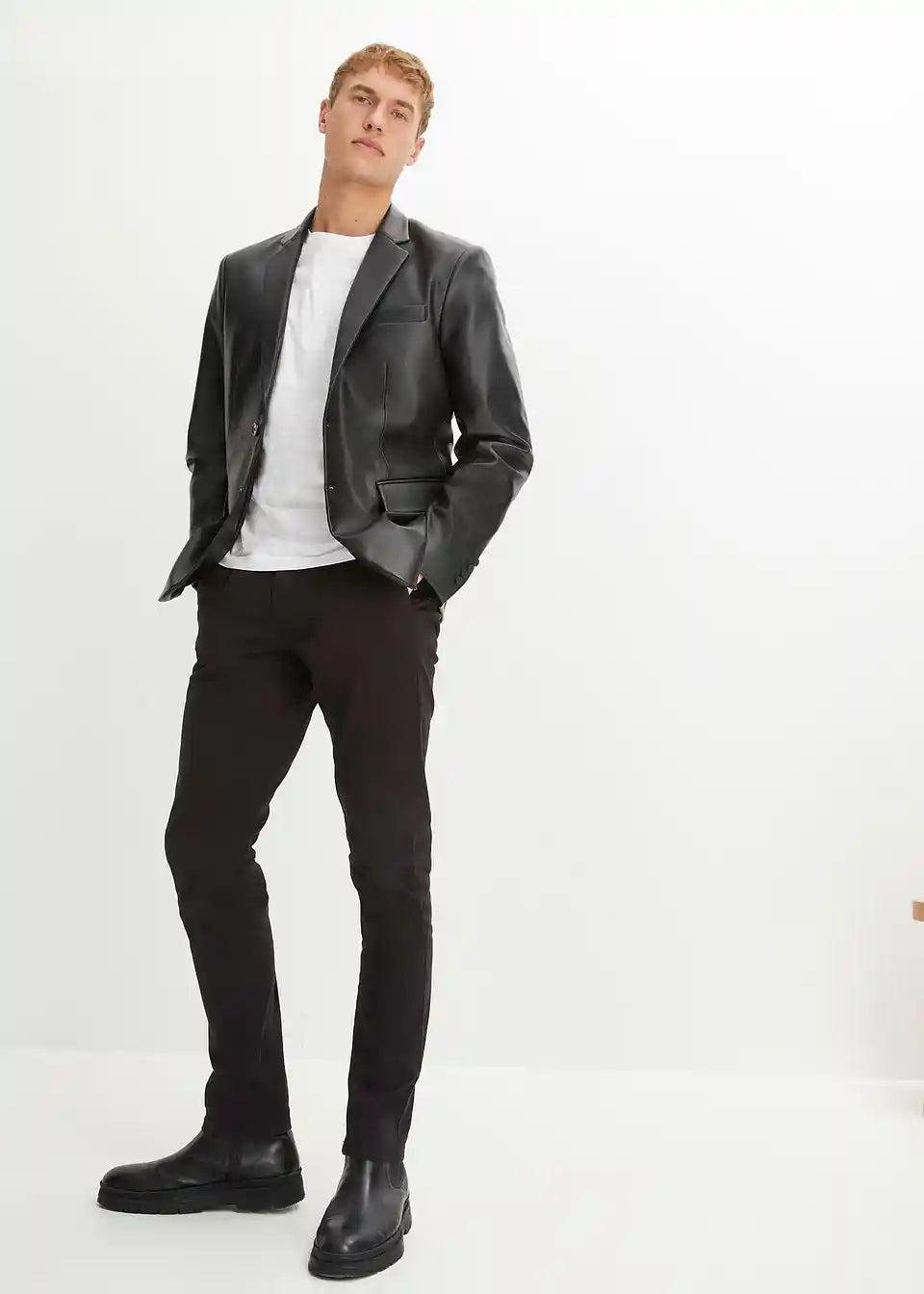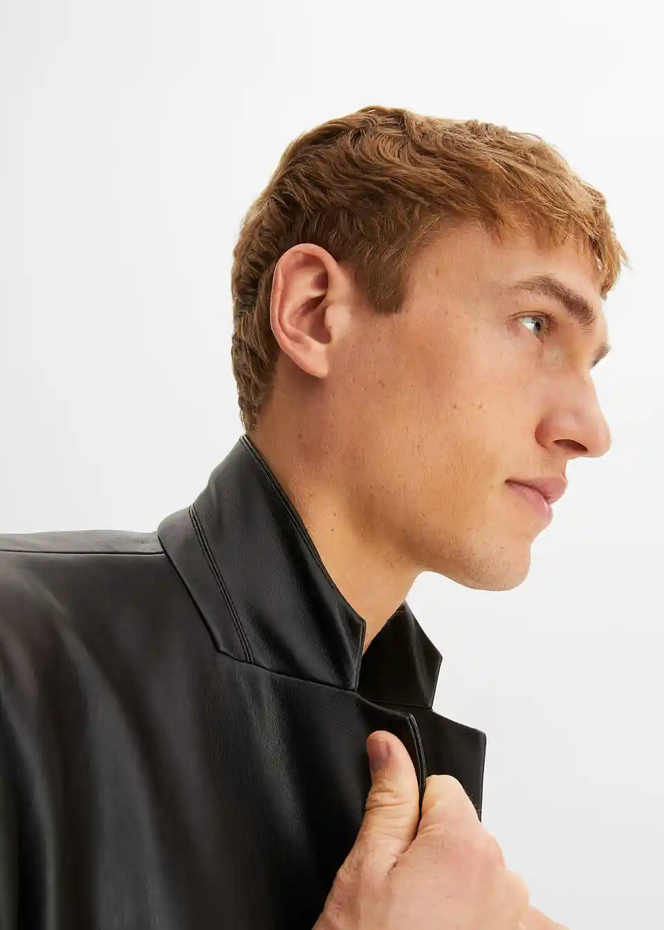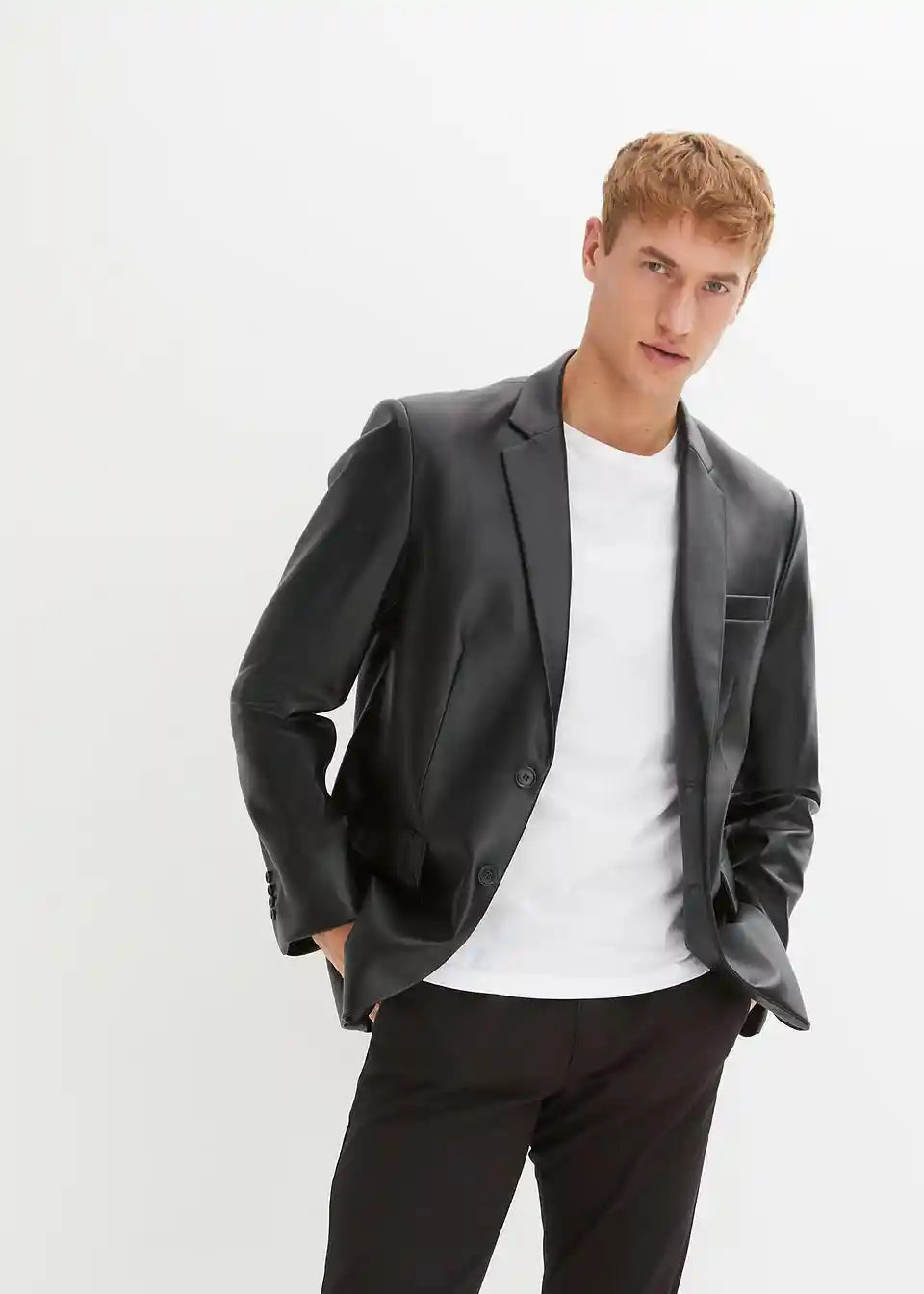 Cool sako u kožnom izgledu, s dva vanjska džepa i dva unutarnja džepa