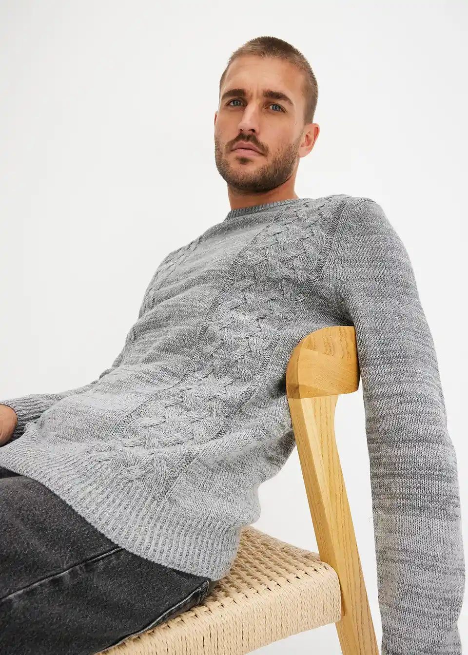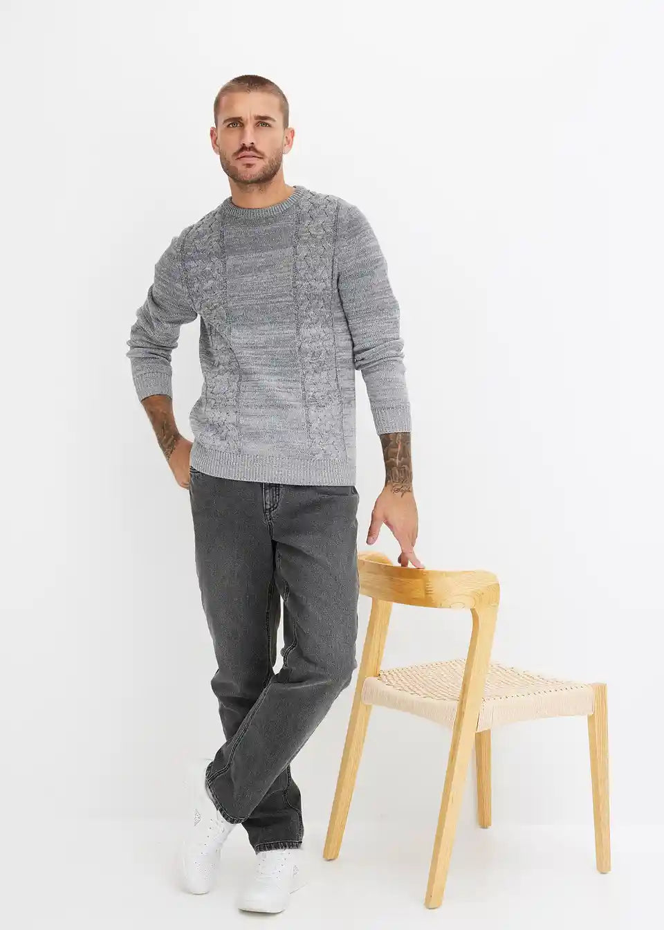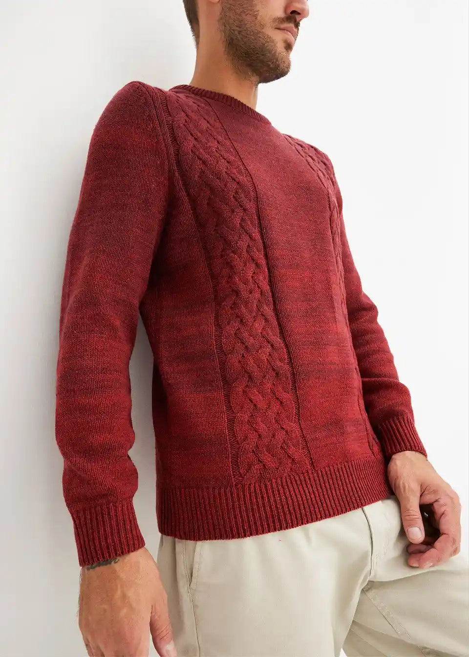 Robusni pulover s prijelazom boja i pletenim uzorkom pletenica
