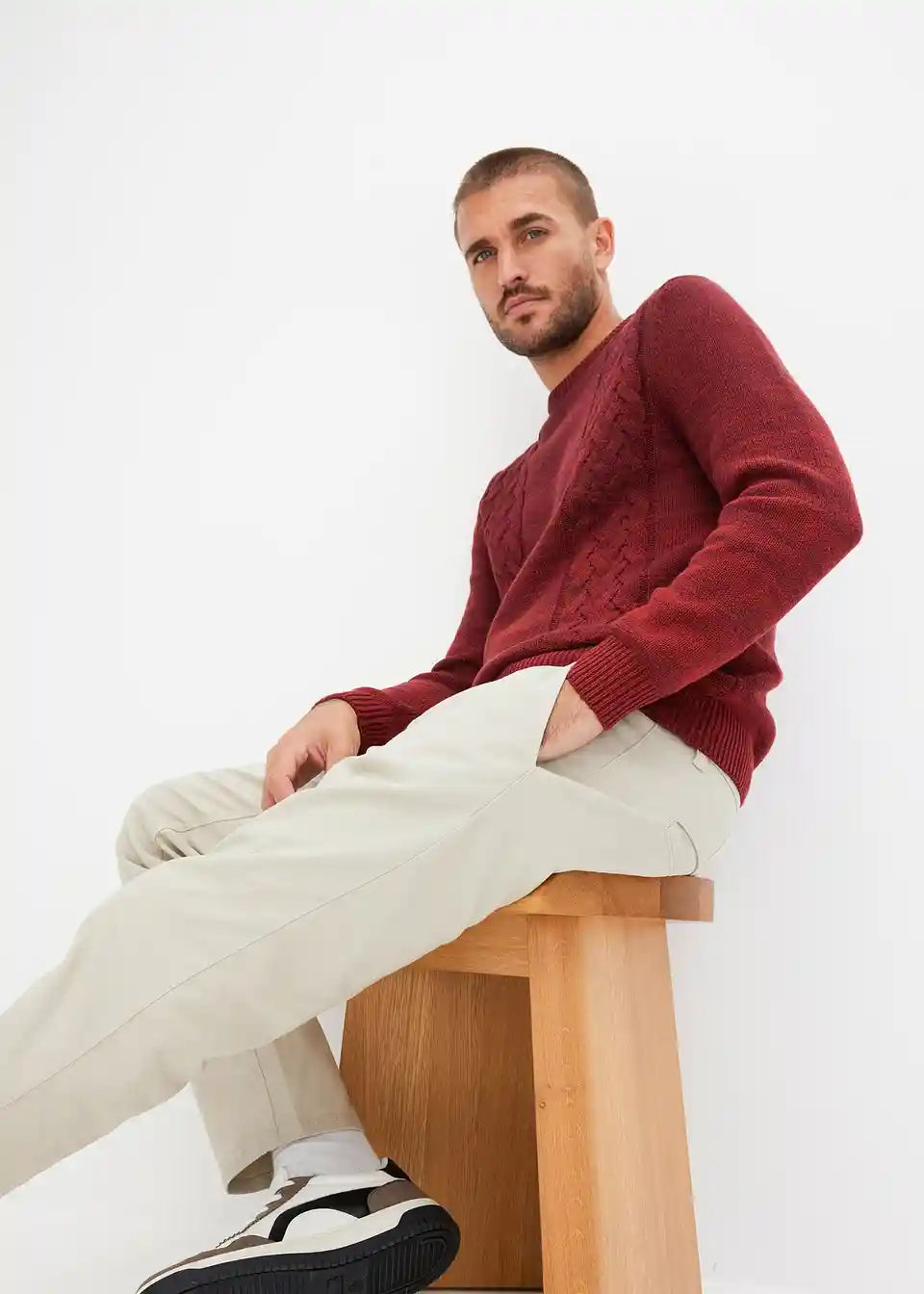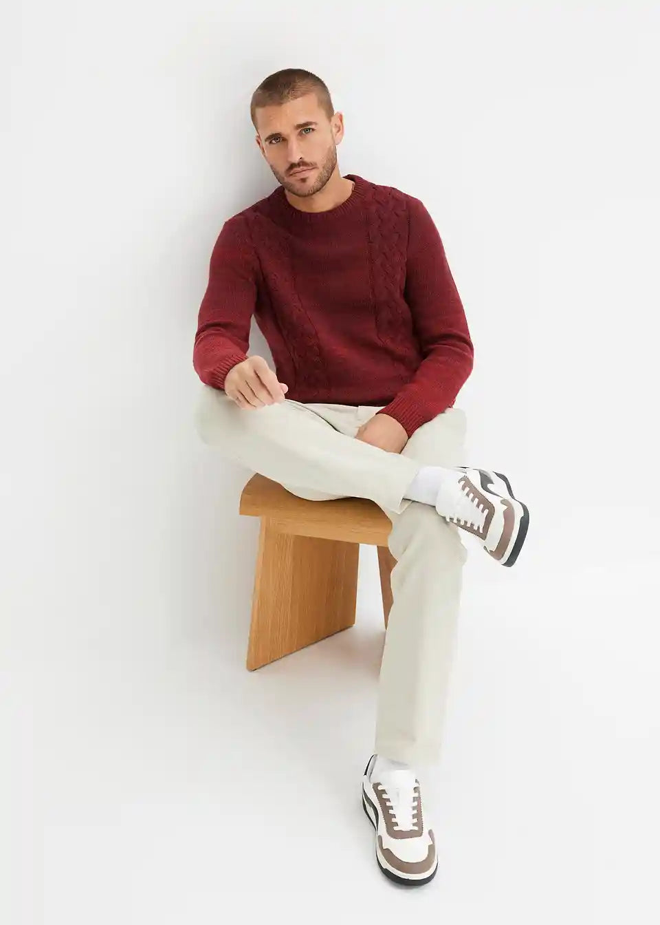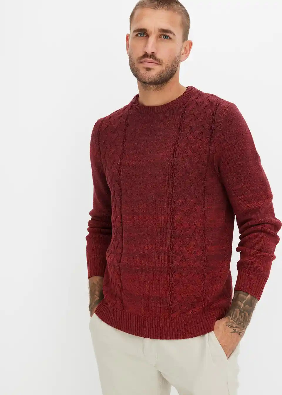 Robusni pulover s prijelazom boja i pletenim uzorkom pletenica