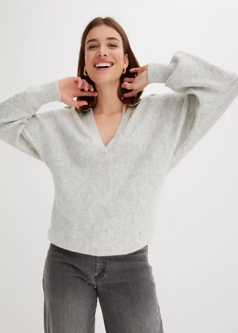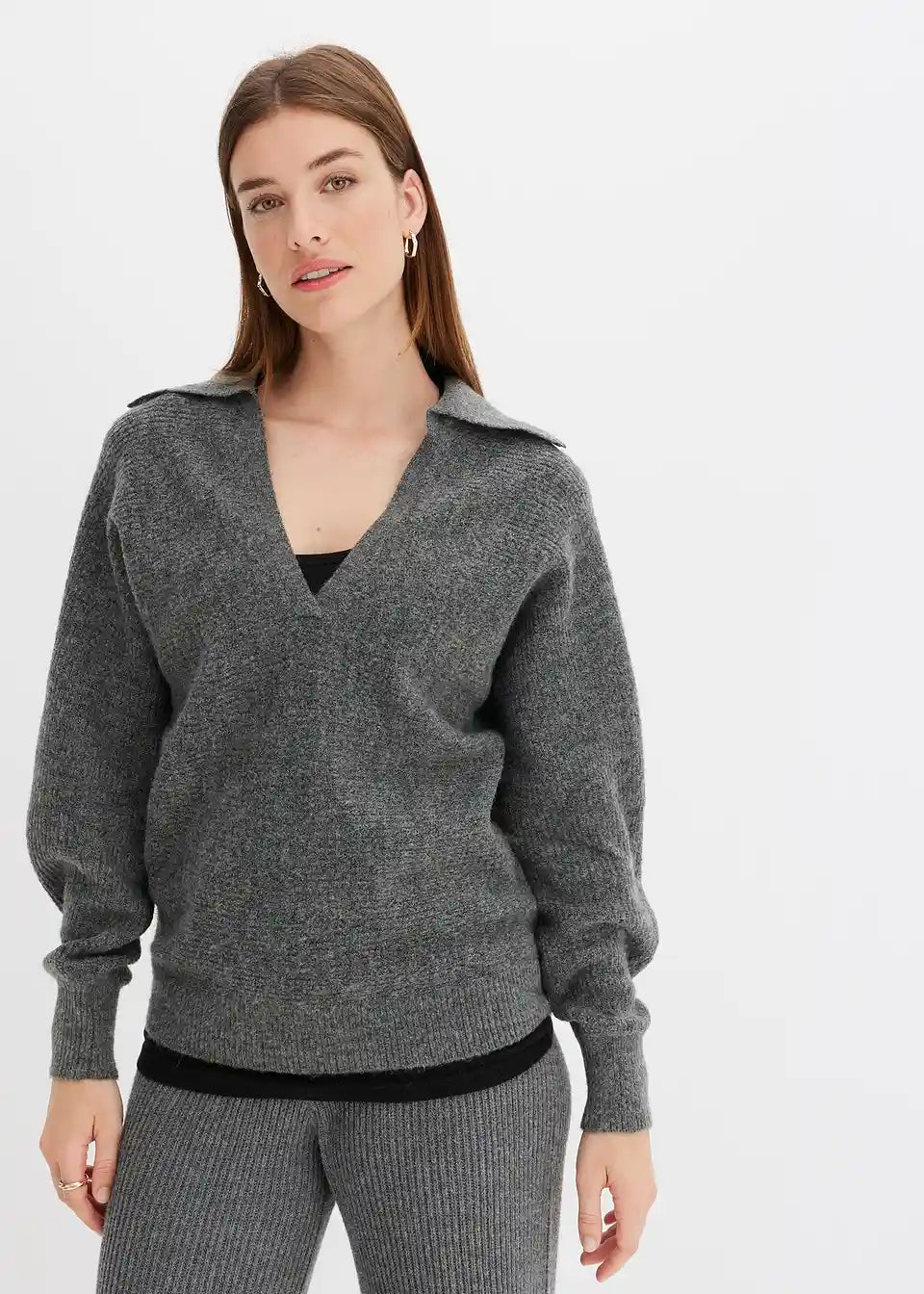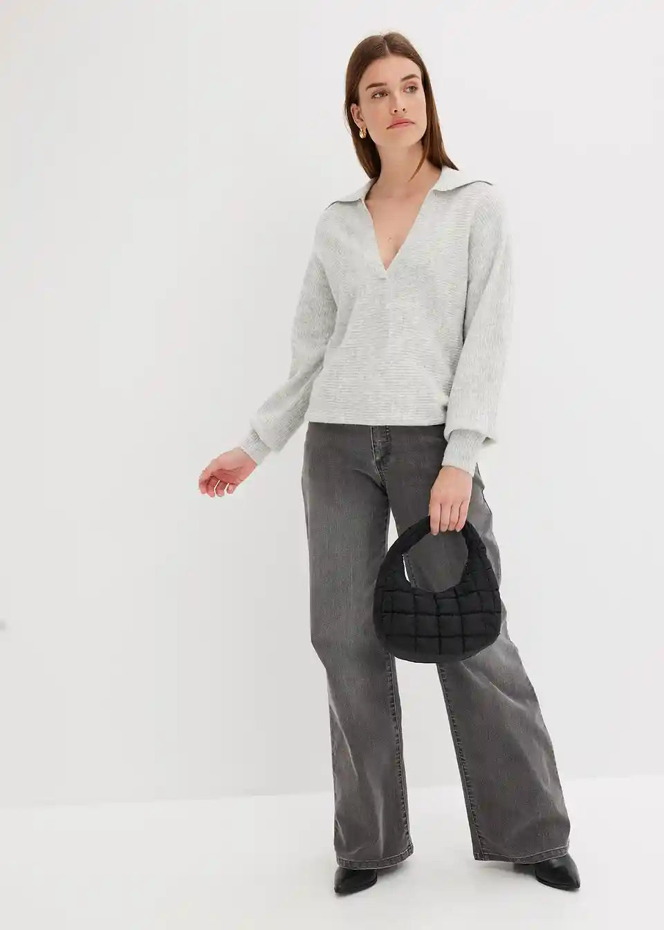 Rebrasti džemper s visokim ovratnikom s patentnim zatvaračem