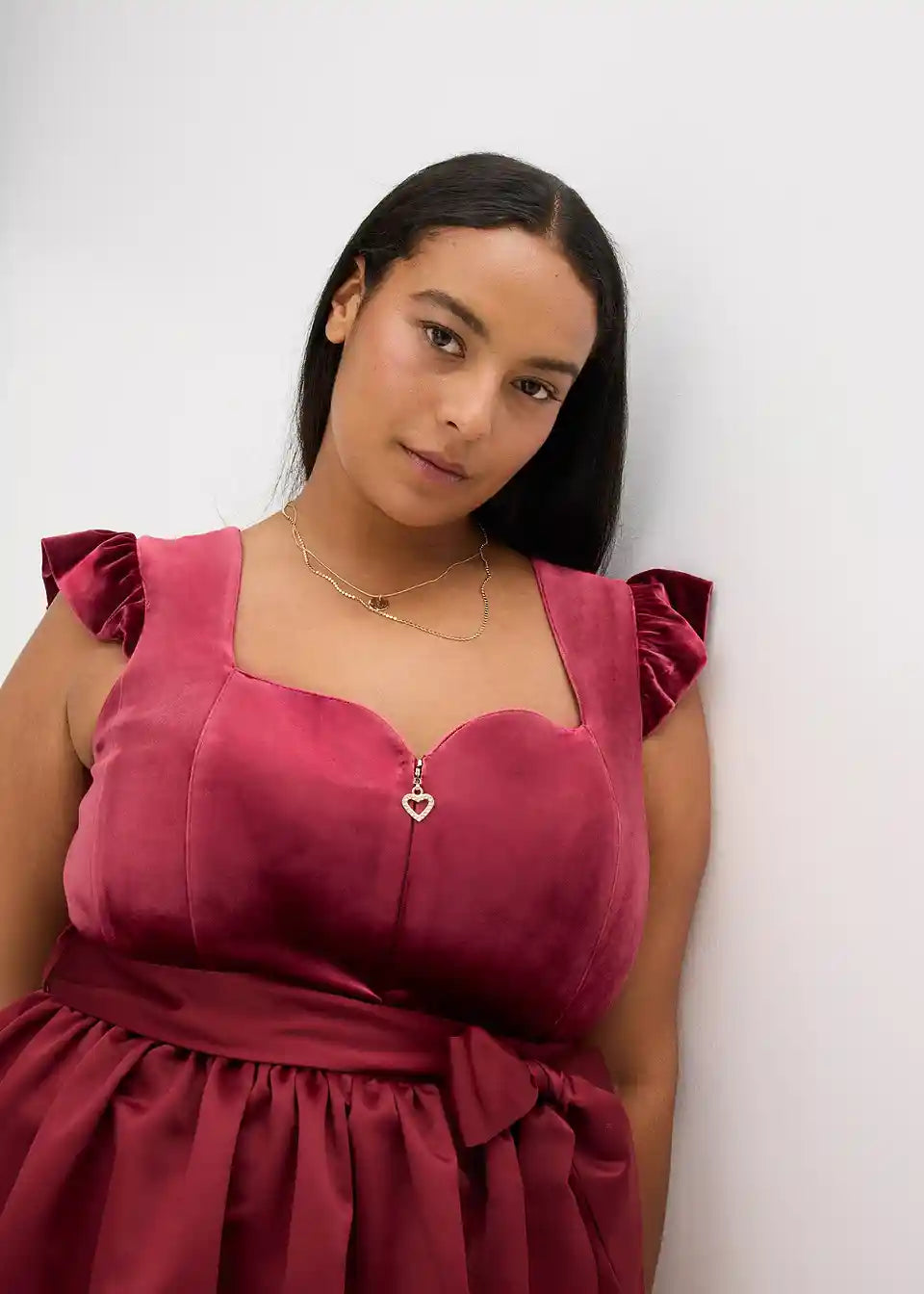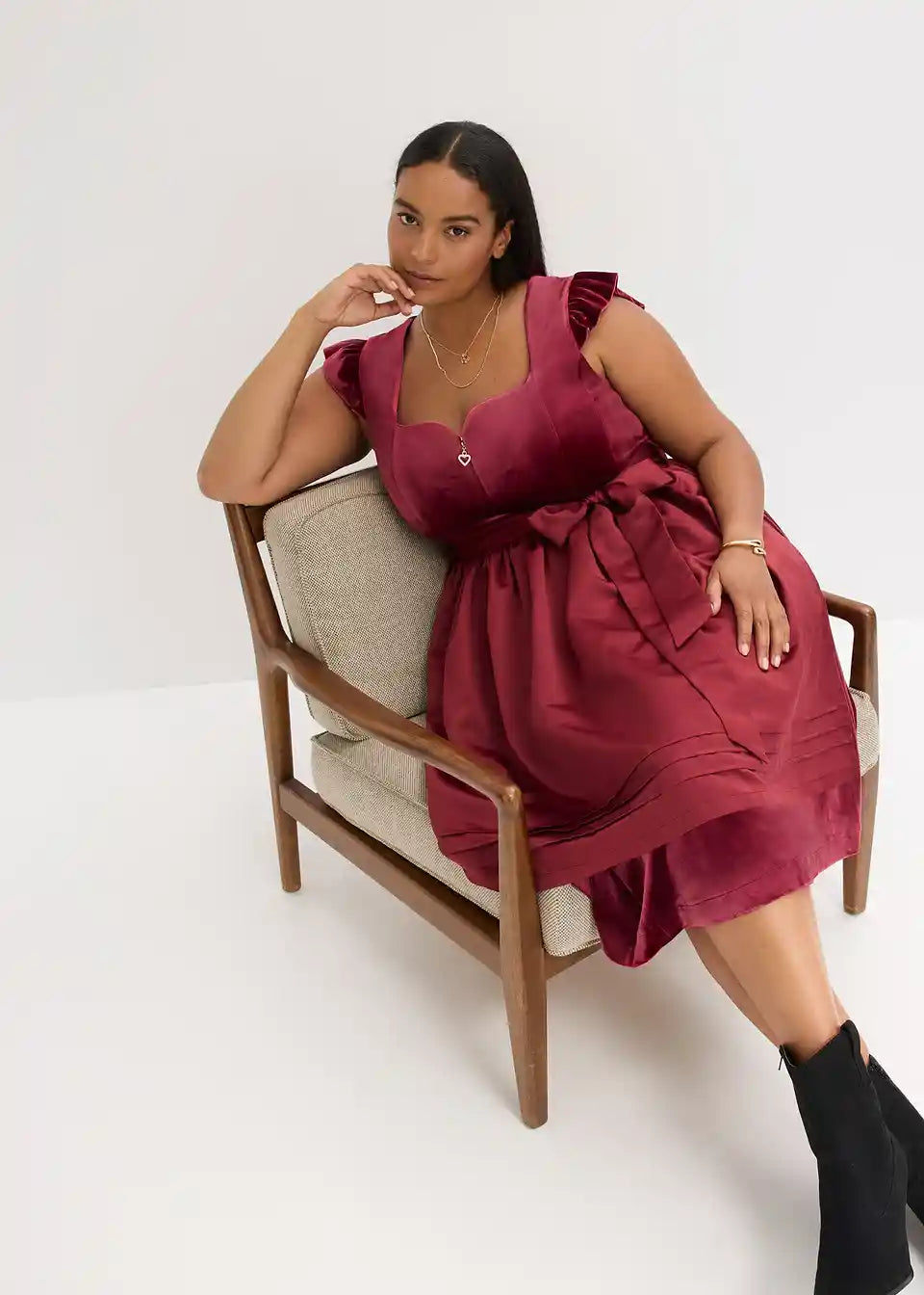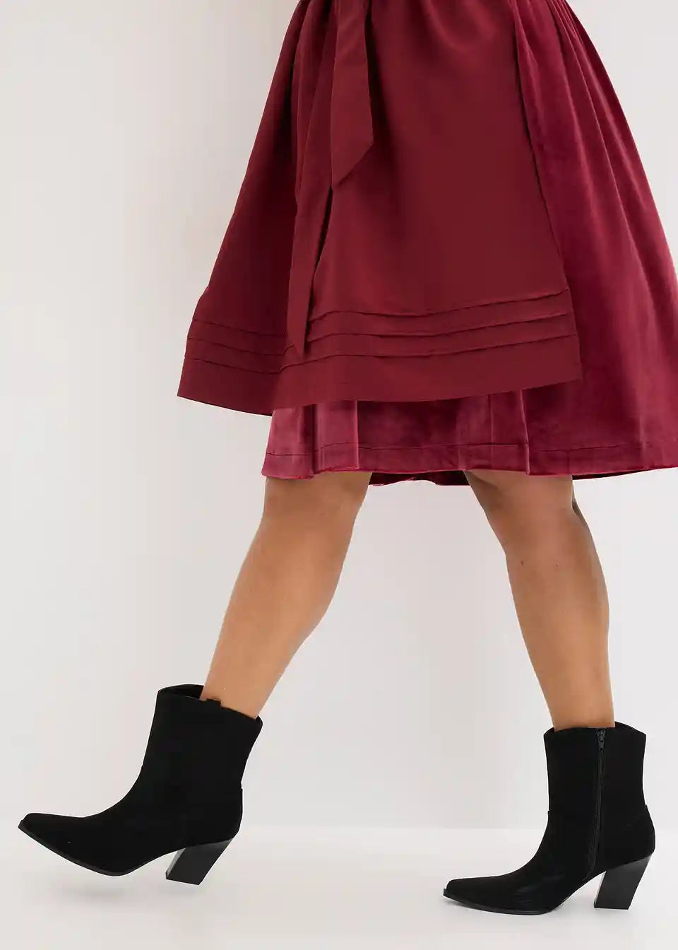 Modern i ženstven: Dirndl od baršuna sa srcastim izrezom i ruched rukavima te pregača od sjajnog satena