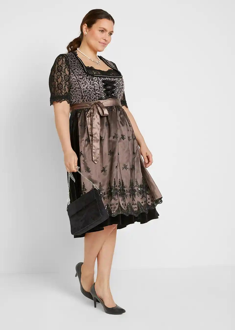 Dirndl s uzorkom leoparda sa bočnim džepom na suknji nudi izvrsnu mogućnost za pohranu sitnica.