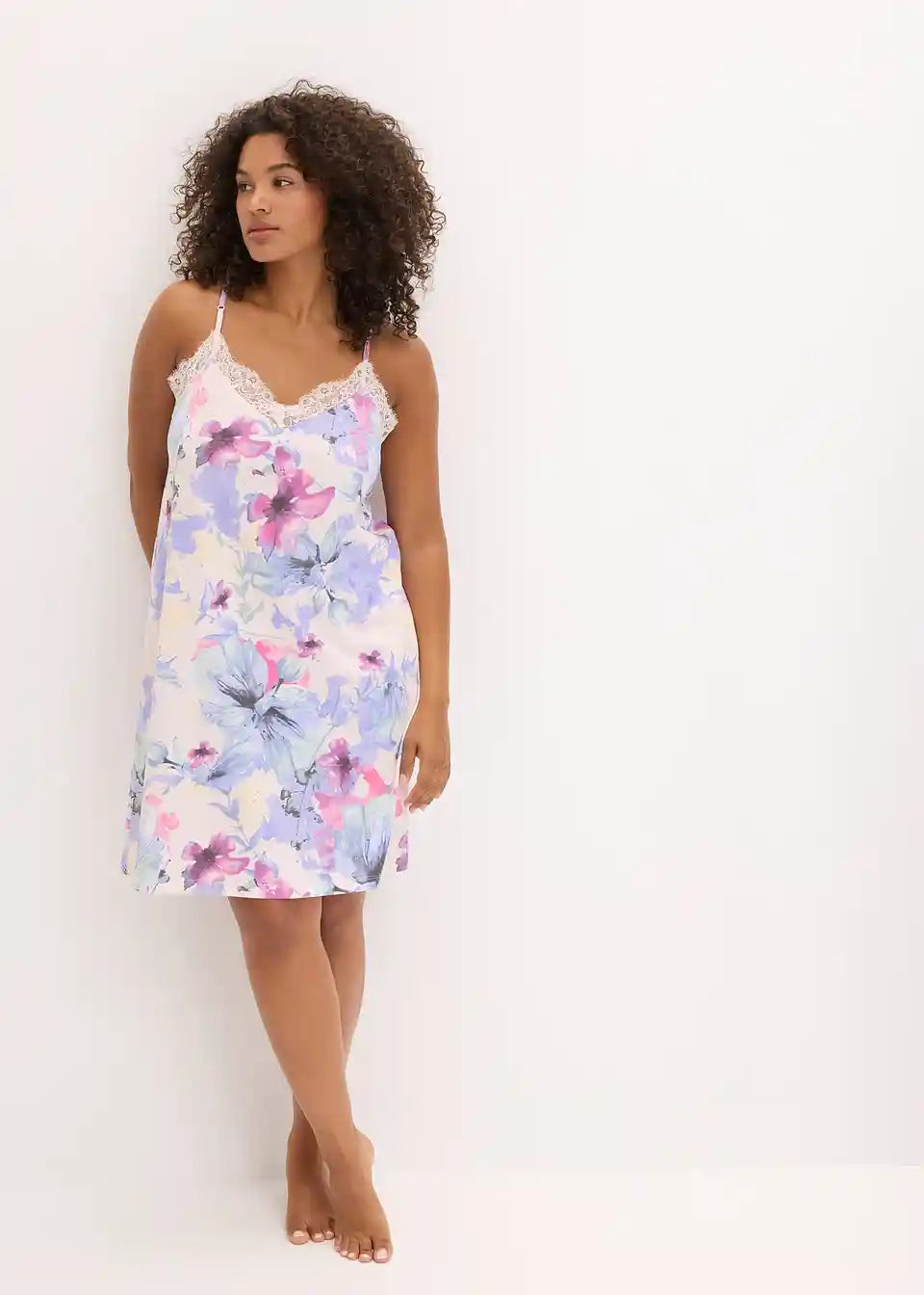 Kratka spavaćica sa špageti naramenicama u laganom A-kroju s nježnom čipkom