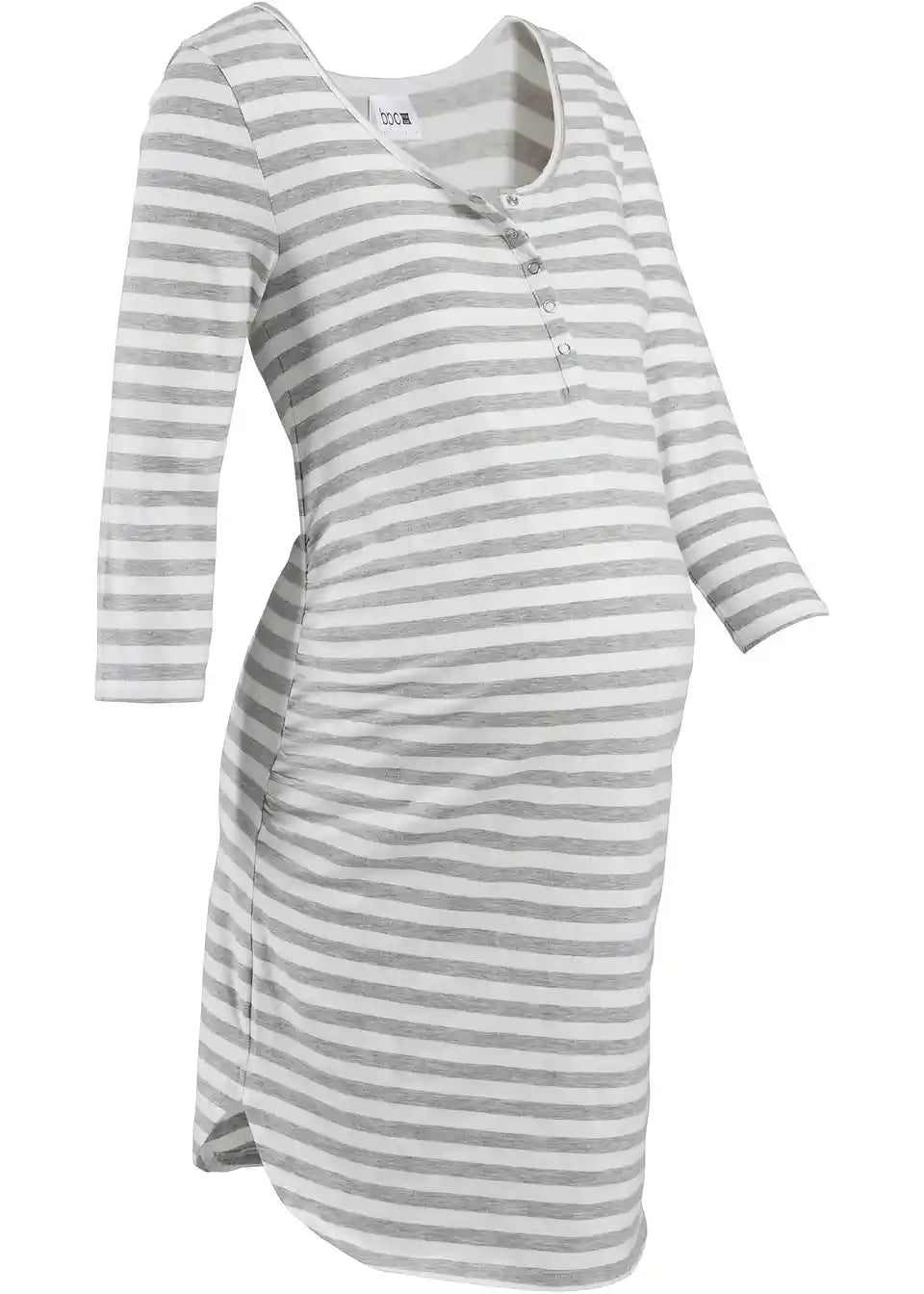 Ova majica za dojenje iz bpc-a idealna je za trudnoću i razdoblje dojenja. Tijekom trudnoće kroj koji prati liniju tijela i bočna naboranja pružaju dovoljno mjesta za rastući trudnički trbuh. Nakon poroda, dugi red gumba na izrezu omogućuje udobno dojenje. Majica za dojenje s dugim rukavima ističe se prugama i bočnim prorezima na rubu. Mekana kvaliteta pamuka osigurava ugodan osjećaj nošenja.
