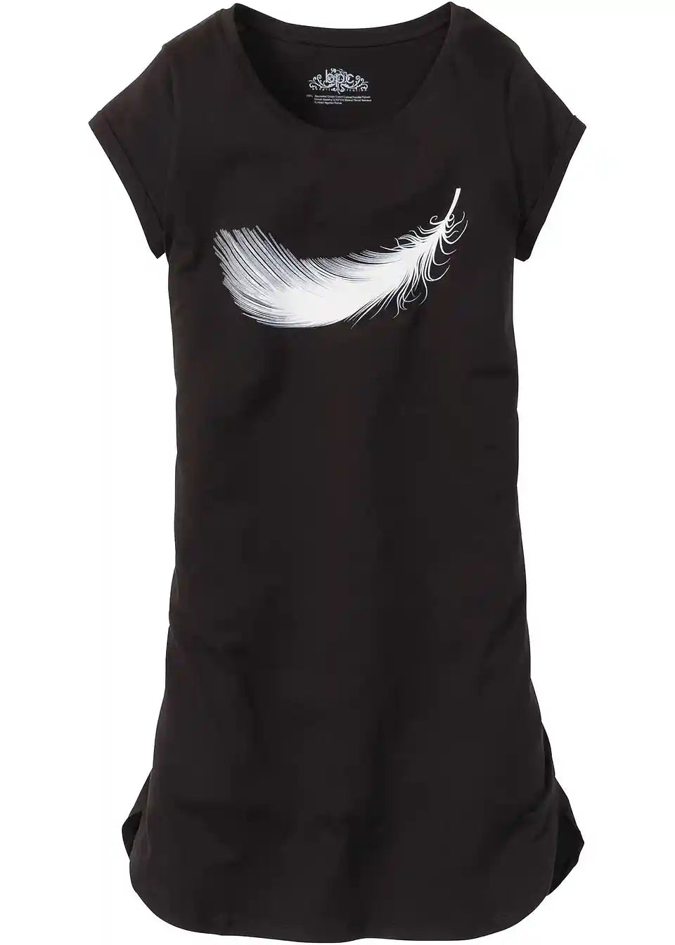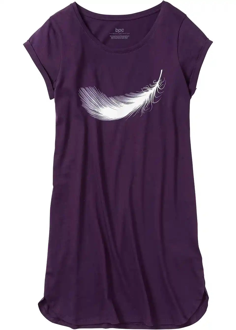 S ležernim krojem i materijalom ugodnim za kožu, ova duga majica s kratkim rukavima predstavlja privlačan izbor za mirne noći i opuštene trenutke slobodnog vremena. Posebno lijep detalj je široki okrugli izrez. Ravnog kroja i s zaobljenim rubom, model nudi visoku udobnost pri nošenju. Spavaćica je ukrašena predivnim motivom perja.