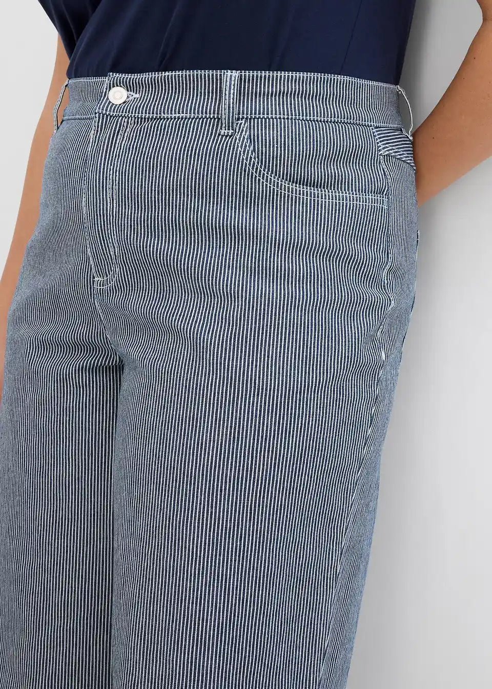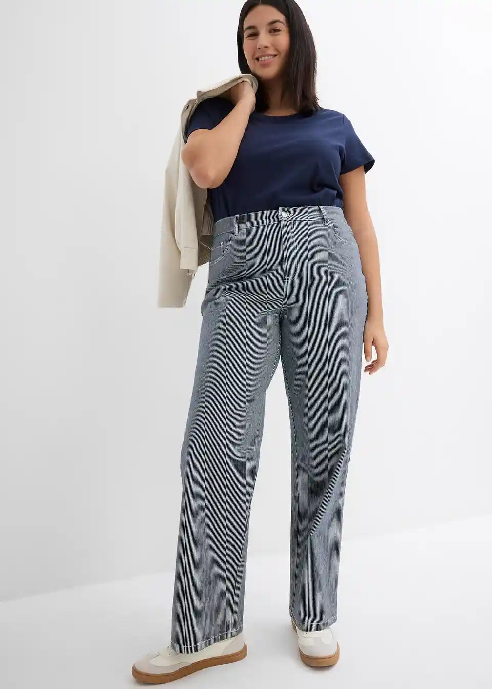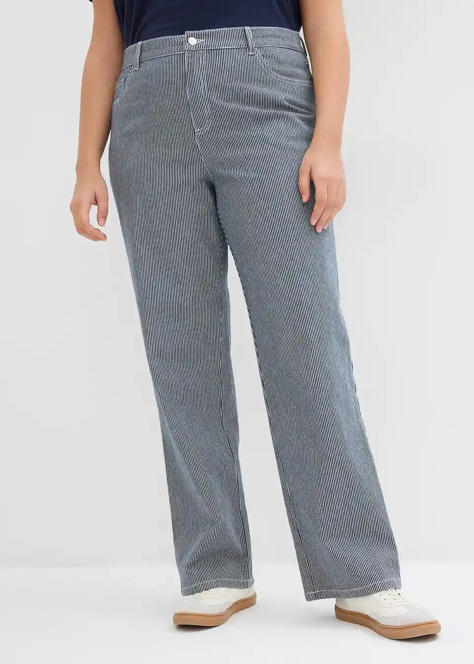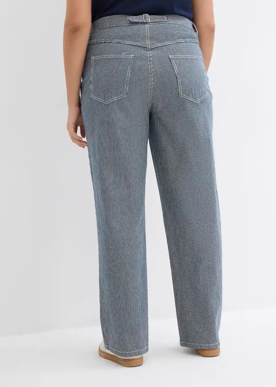 Komotne traperice ravnog kroja s visokim strukom i prugama