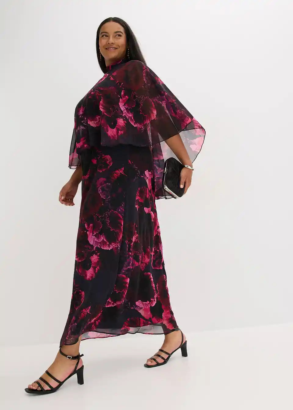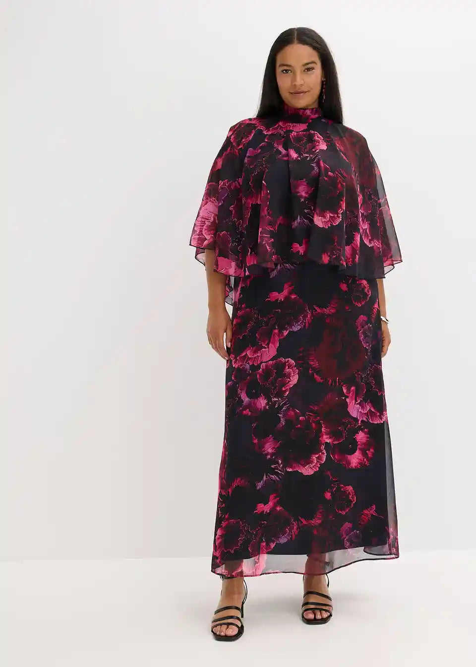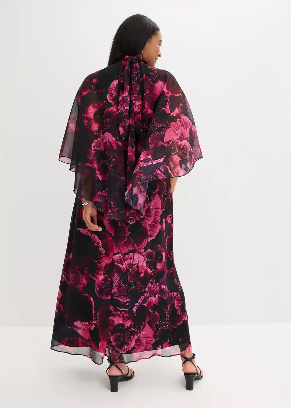 Romantična i ženstvena: večernja haljina u maksi dužini od finog šifona s prekrivačem i visokim ovratnikom s detaljem vezanja