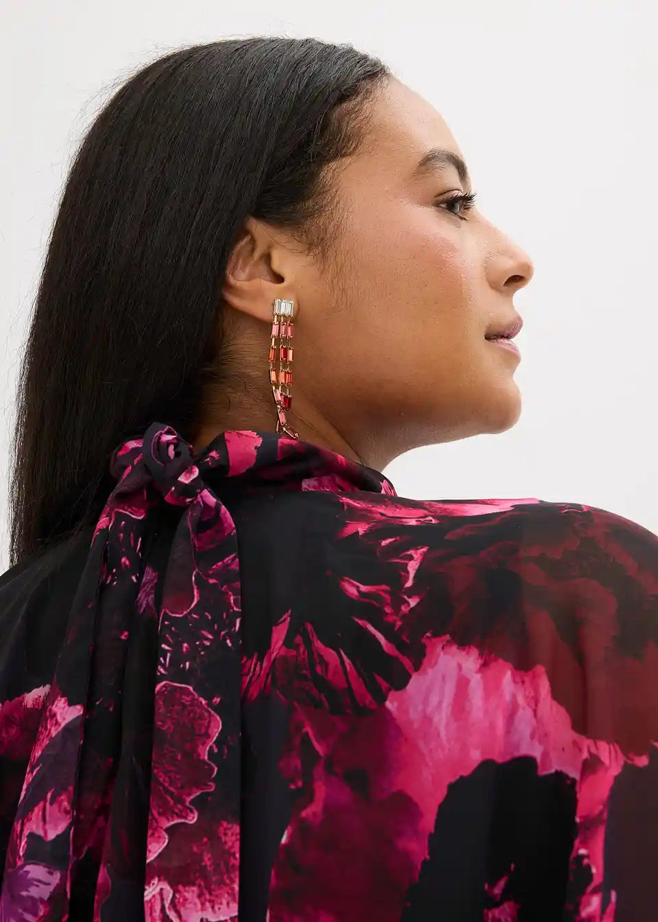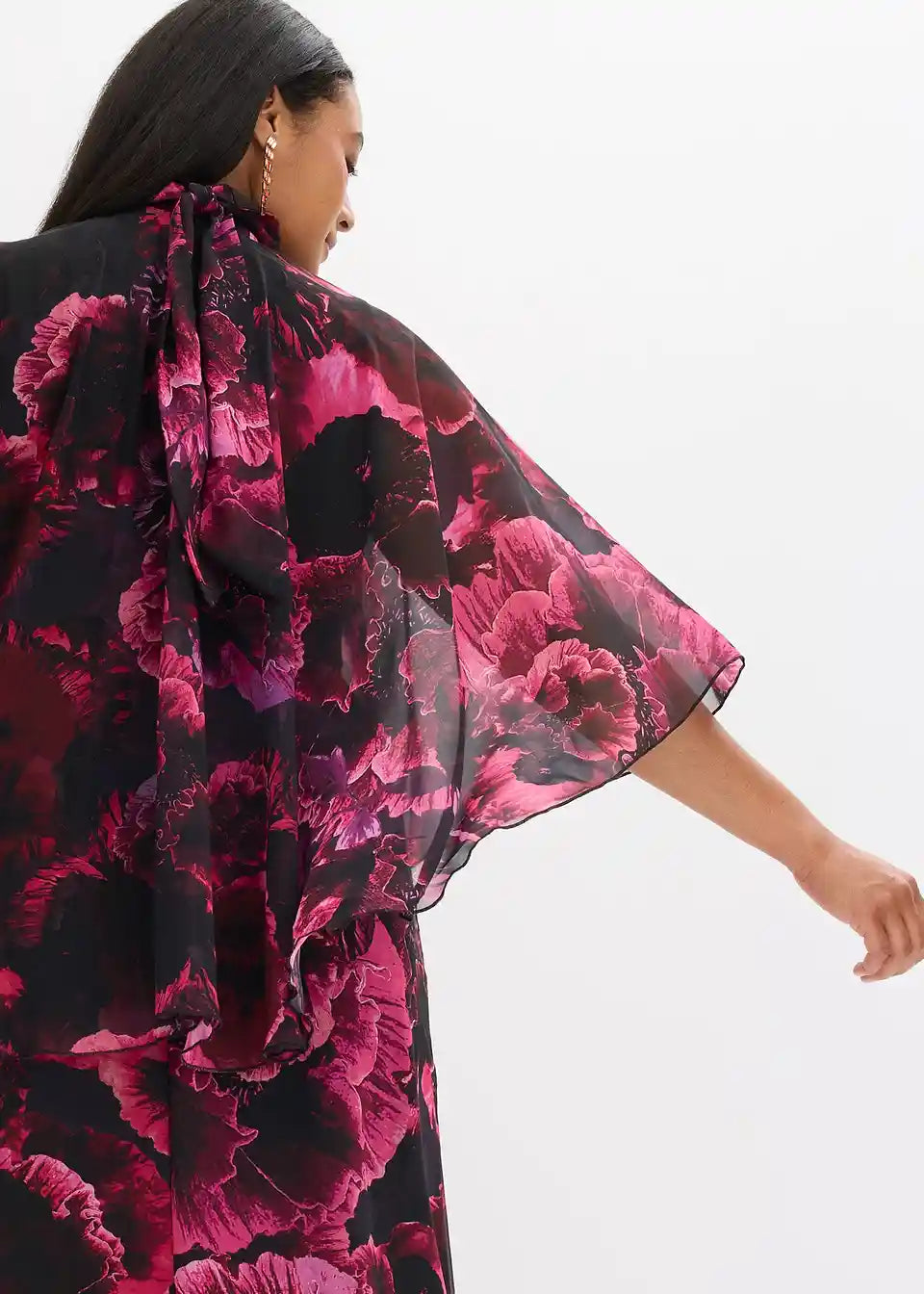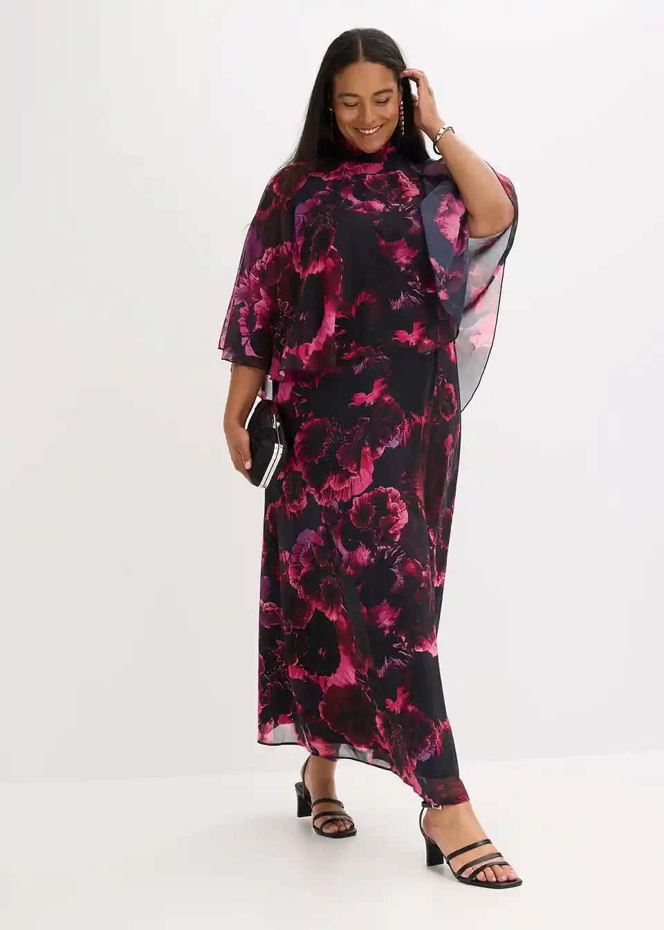 Romantična i ženstvena: večernja haljina u maksi dužini od finog šifona s prekrivačem i visokim ovratnikom s detaljem vezanja